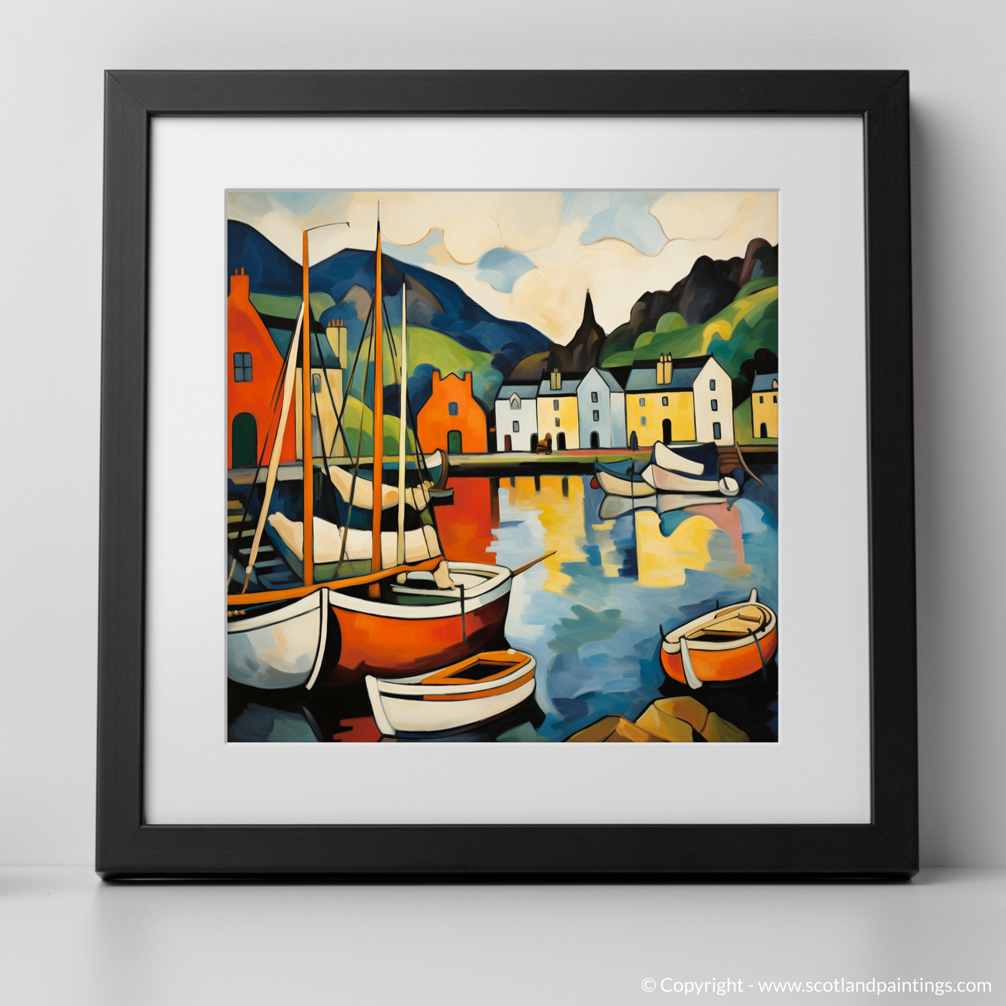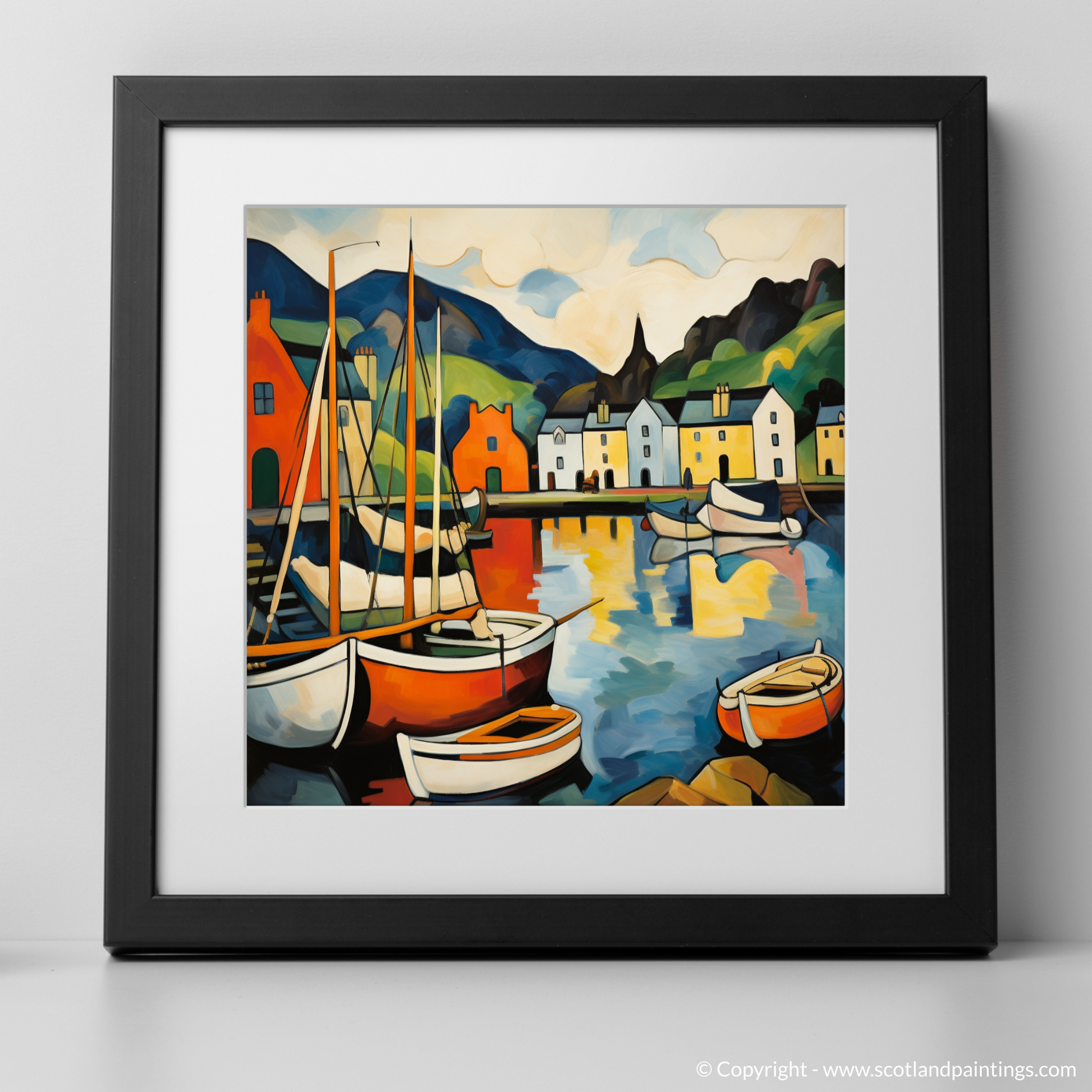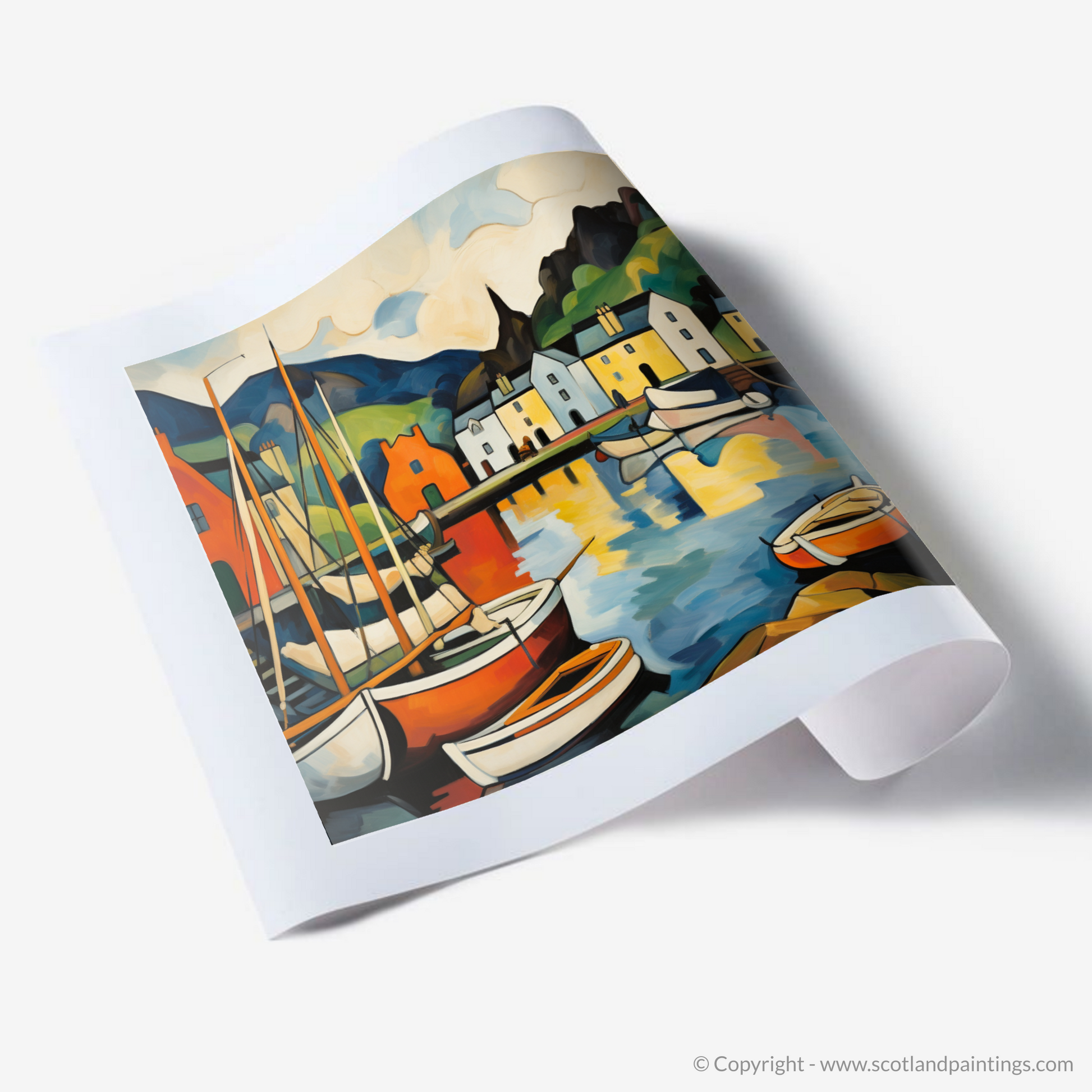 Immerse yourself in the vivid allure of a fauvist-inspired print, depicting the charming and bustling Portree Harbour from the Isle of Skye. At first glance, the viewer is struck by the dazzling interplay of colour and form, a hallmark of the Fauvist approach that favours painterly qualities and strong colour over the representational or realistic values retained by Impressionism.