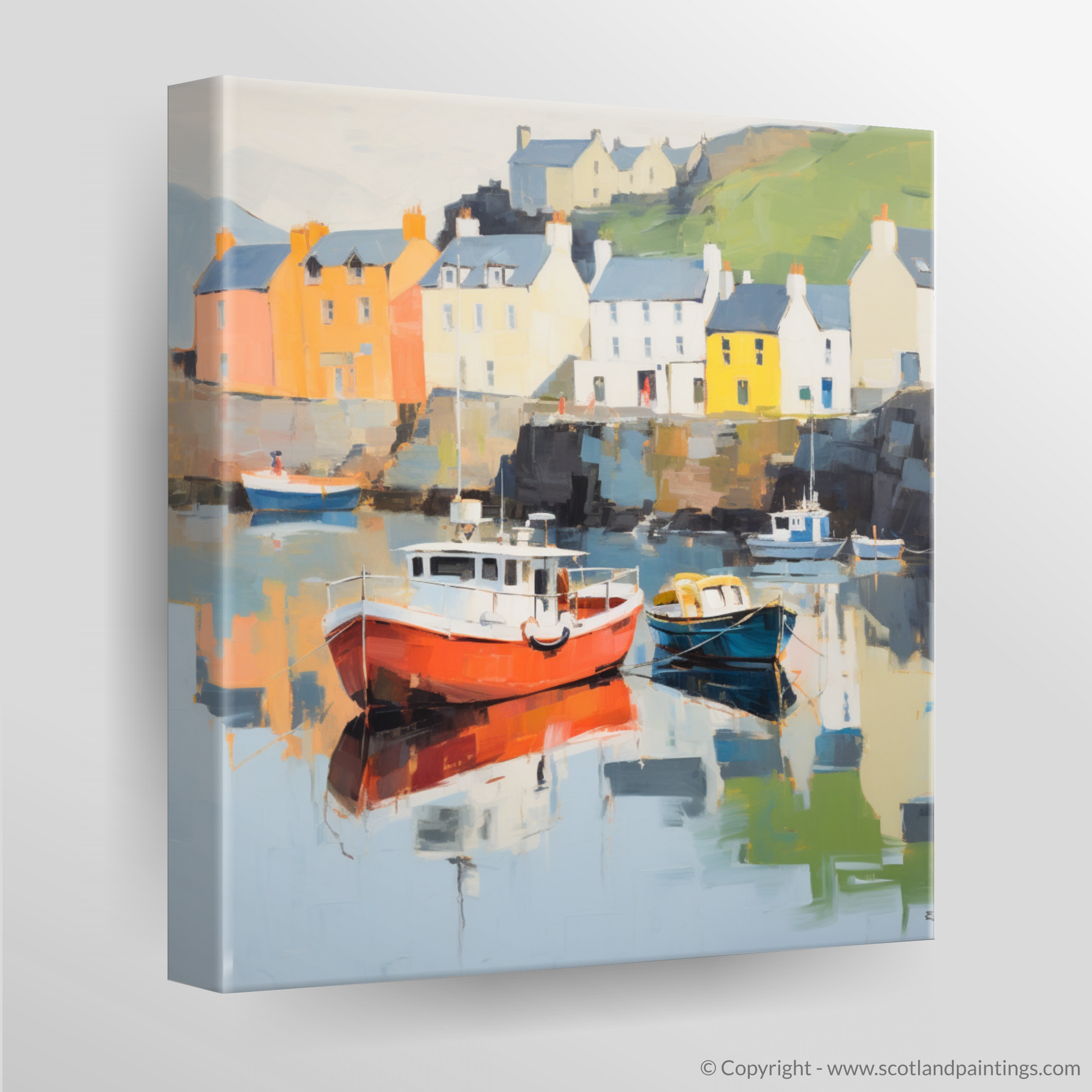 Whether interpreting this work as a pure exploration of colour and shape or as a homage to the idyllic Scottish harbourside, this piece promises to bring a touch of Scotland's enchanting environment into your home.