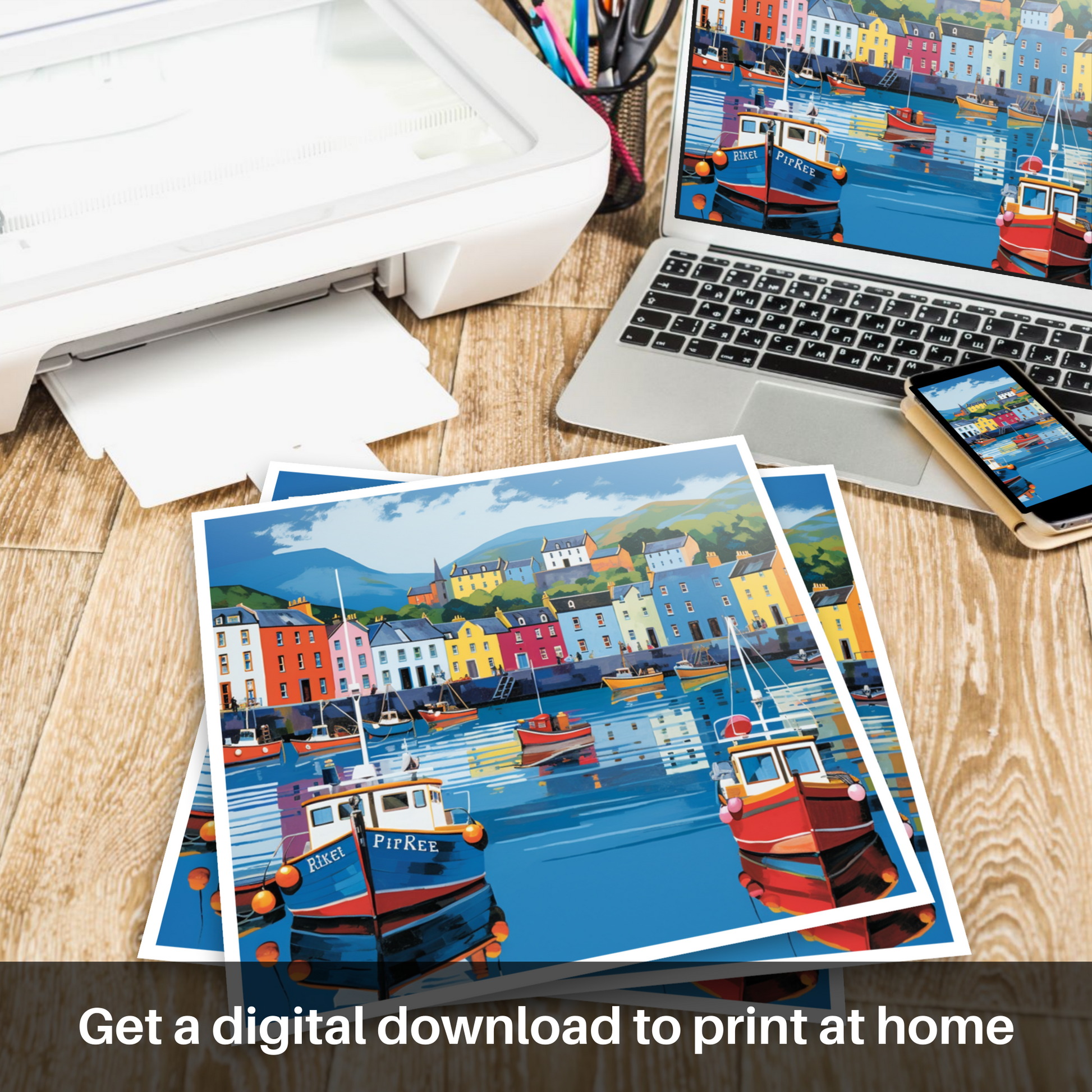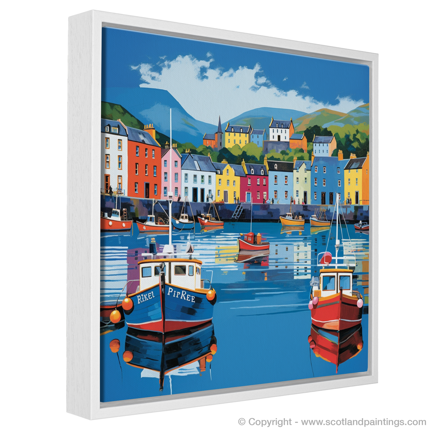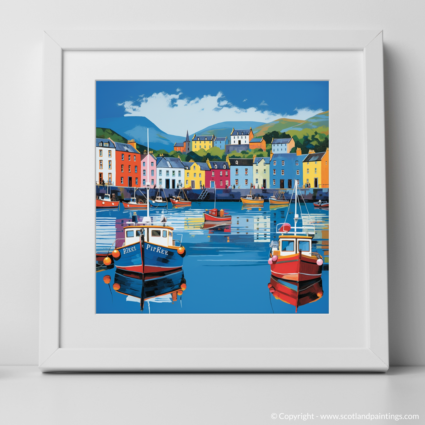 This piece is a modern tribute to the Scottish Harbours, an infusion of contemporary style with the traditional charm of coastal life. It's a perfect homage to the iconic scenery and indomitable spirit of the Scottish isles, sure to inject a burst of colour and brightness into any space. This print promises not only to be a visual treat but also a lively topic of conversation and a beacon of Scottish heritage in your collection.