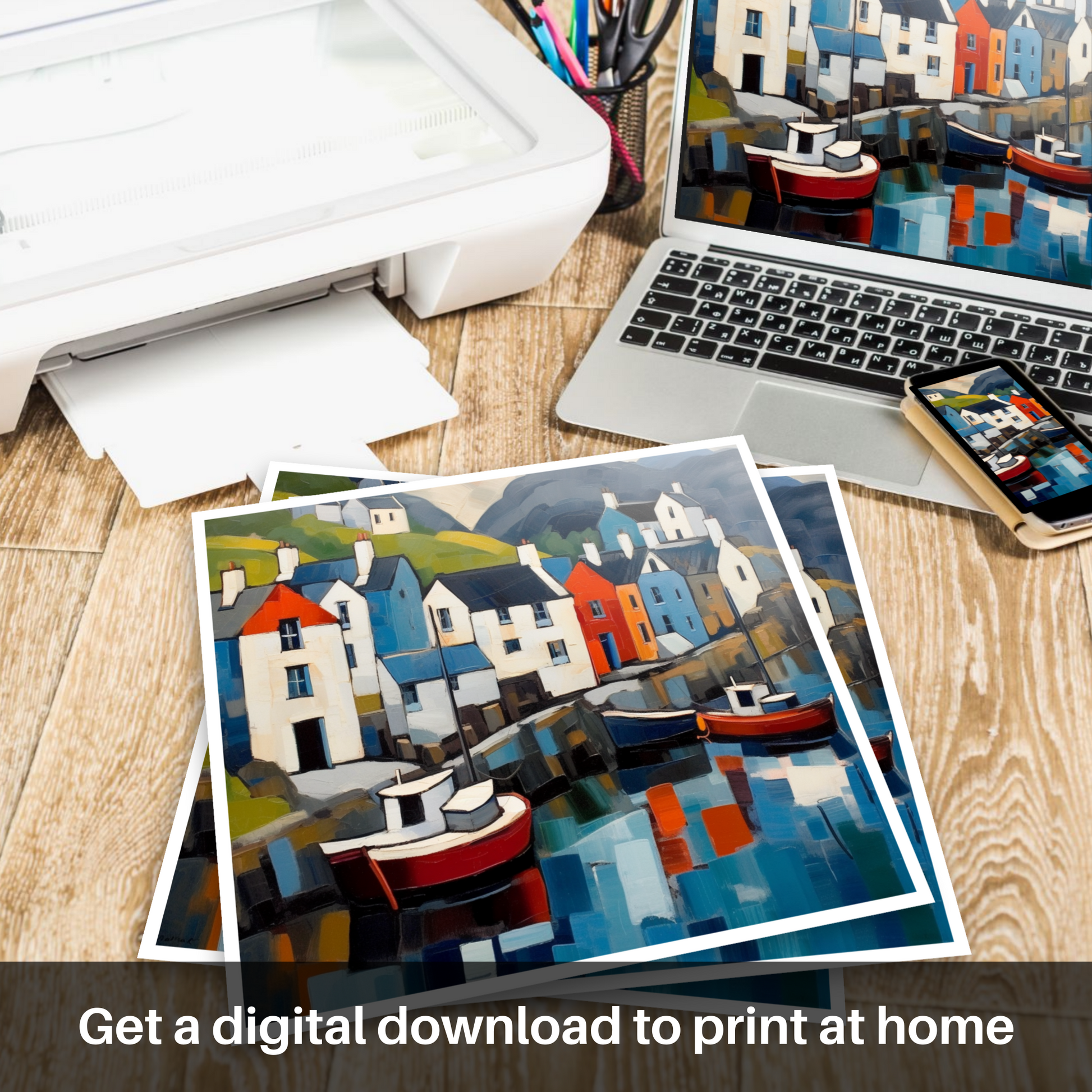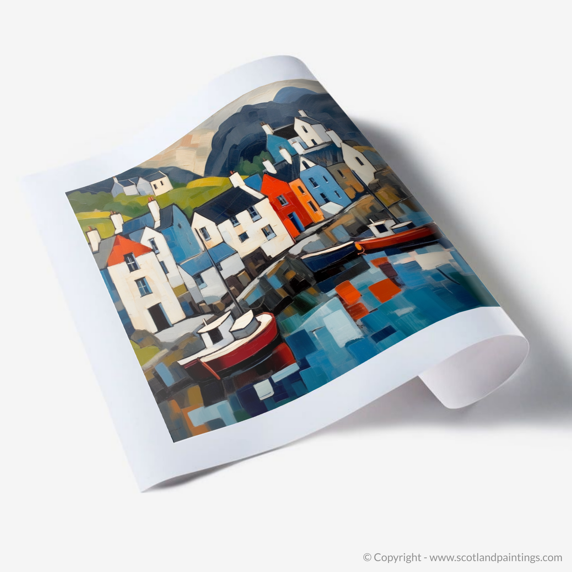 Immerse yourself in the vivid abstractions of the Scottish West Coast with this striking Cubist-inspired print. Encapsulating the essence of Portree Harbour, Isle of Skye, this piece interprets the idyllic coastal scene through a prism of geometric shapes and a bold, fragmented perspective that is characteristic of Cubism.