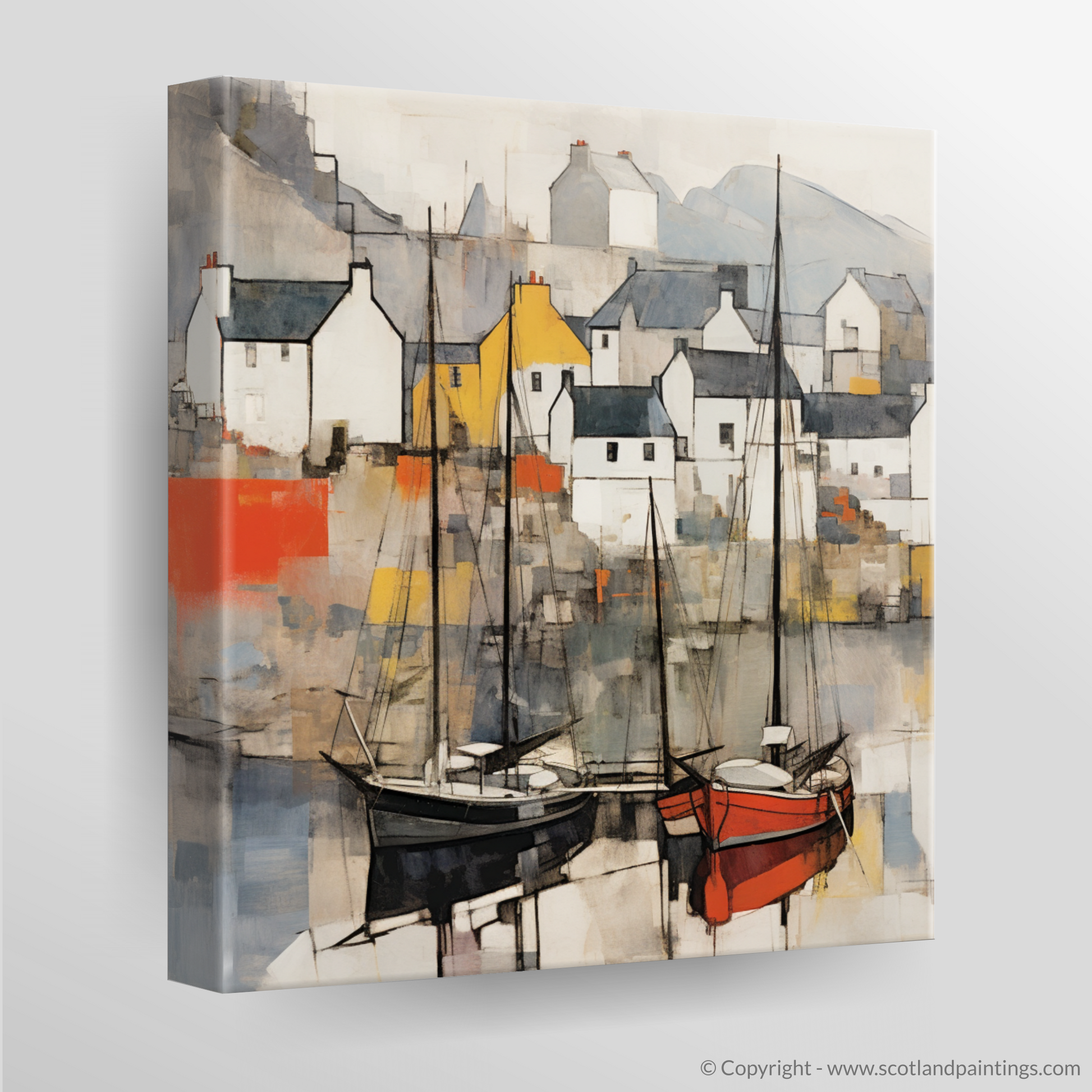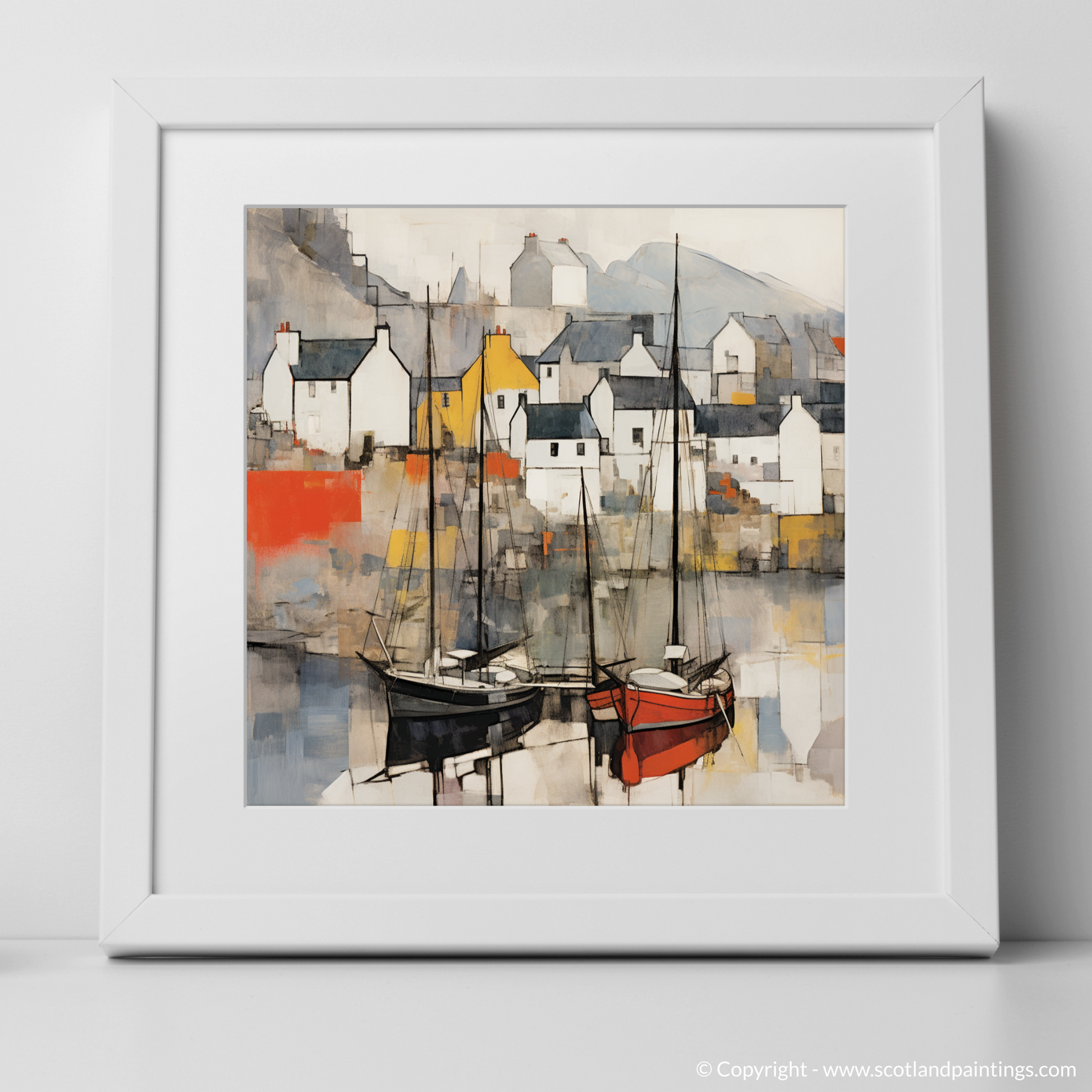 Immerse yourself in the picturesque essence of Portree Harbour with this captivating abstract print, a scene that succinctly captures the rugged charm of the Scottish Isles. Swathes of muted hues mix with bold splashes of colour to represent the serene yet vibrant atmosphere of this coastal retreat.