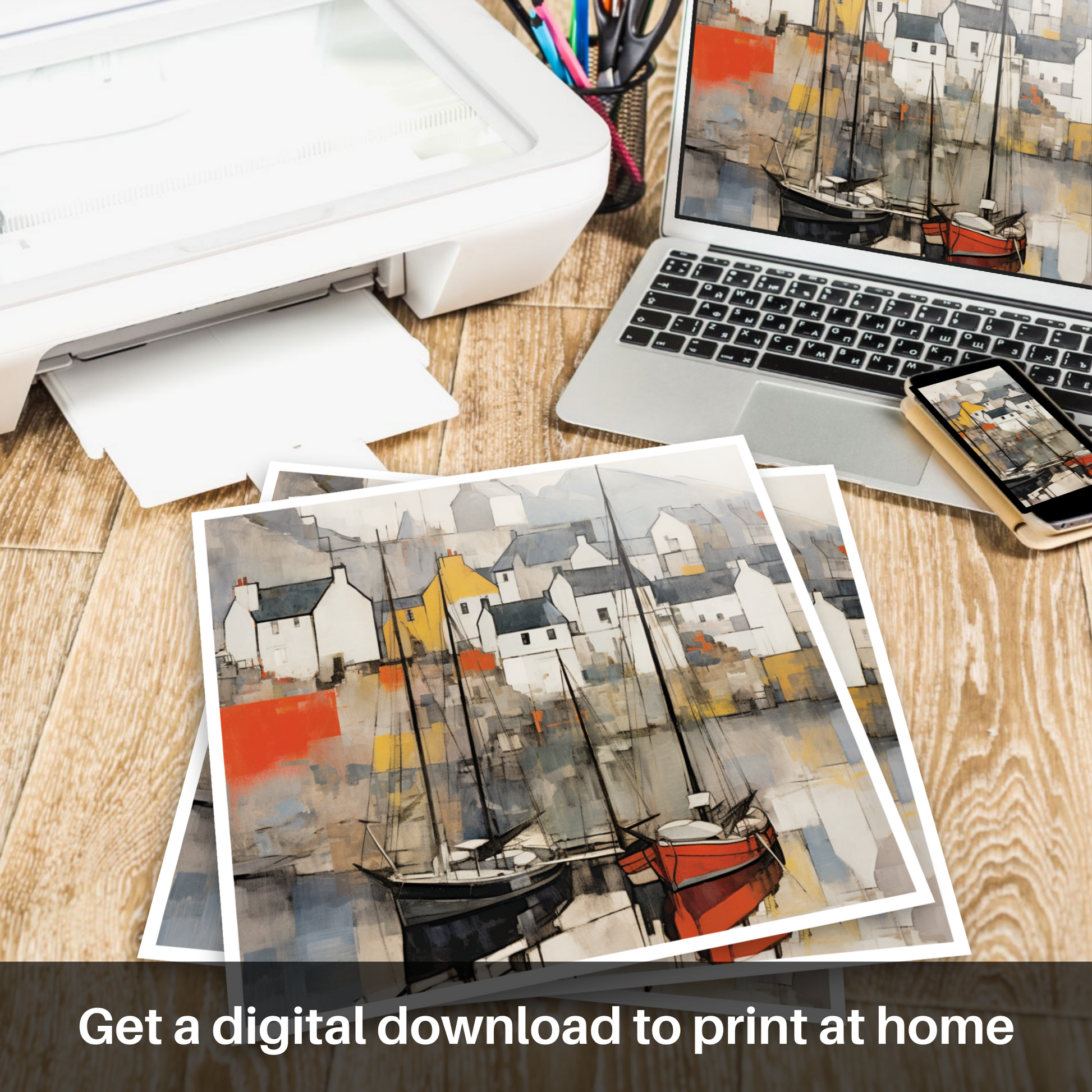 This print is a tribute to the enigmatic allure of Scottish Harbours; it’s not just a piece of art but a conversation starter, perfect for anyone wishing to bring a touch of abstract beauty and timeless Scottish scenery into their home.