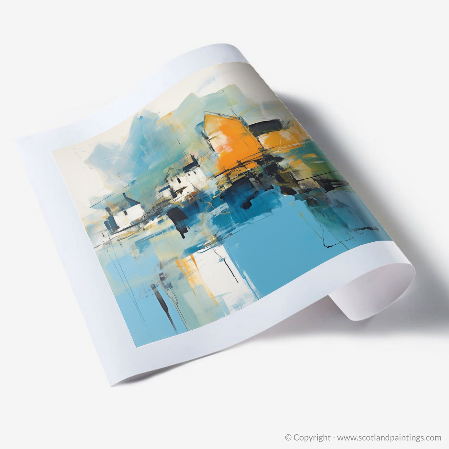 Immerse yourself in the vivid abstraction of Portree Harbour, Isle of Skye, through this captivating print, which is a part of our esteemed 'Scottish Harbours' collection. This piece harmoniously marries the essence of the iconic Scottish landscape with the unpredictable beauty of abstract artistry. The canvas is alive with a symphony of brisk strokes and invigorating colours that dance across the print in a mesmerising display of artistic flair.