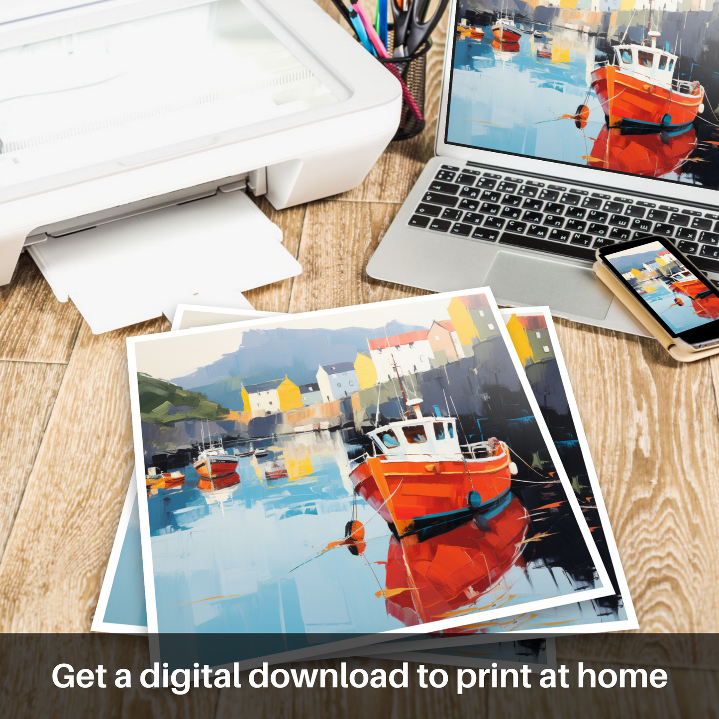 This print, from our 'Scottish Harbours' collection, offers a snapshot of coastal charm that will bring a hint of Scottish allure to any space. Let it become a centrepiece in your home or workspace, encapsulating the spirit of the highlands with a fresh, contemporary twist.