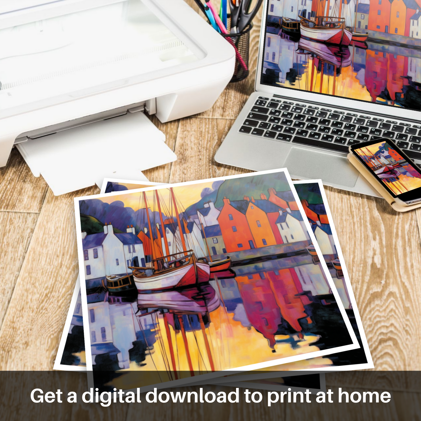 Incorporate this depiction of Portree Harbour into your interior to create an inviting and cultured ambience that celebrates the unique charm of Scottish coastal life.