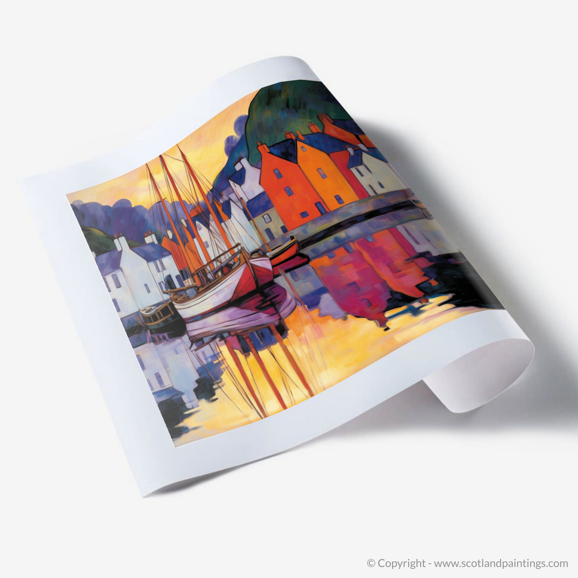 Allow the tranquil yet vibrant aura of a Scottish harbour at dusk to grace your space with this enchanting print. Inspired by the serene beauty of Portree Harbour in the Isle of Skye, the artwork is a harmonious interplay of colour and fluid form, reflecting an Art Nouveau influence that adds a timeless elegance to the piece.