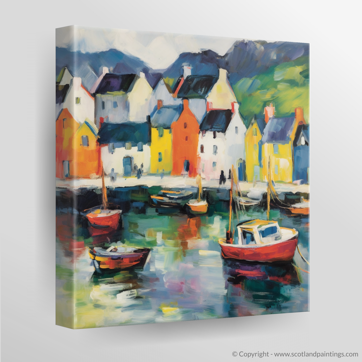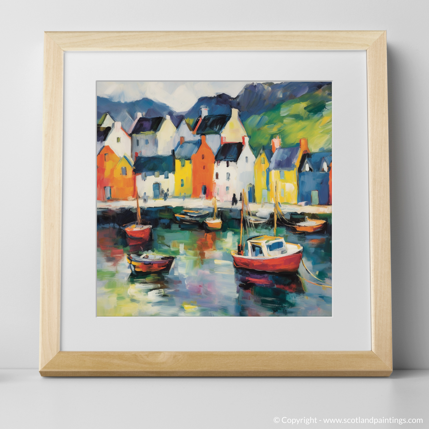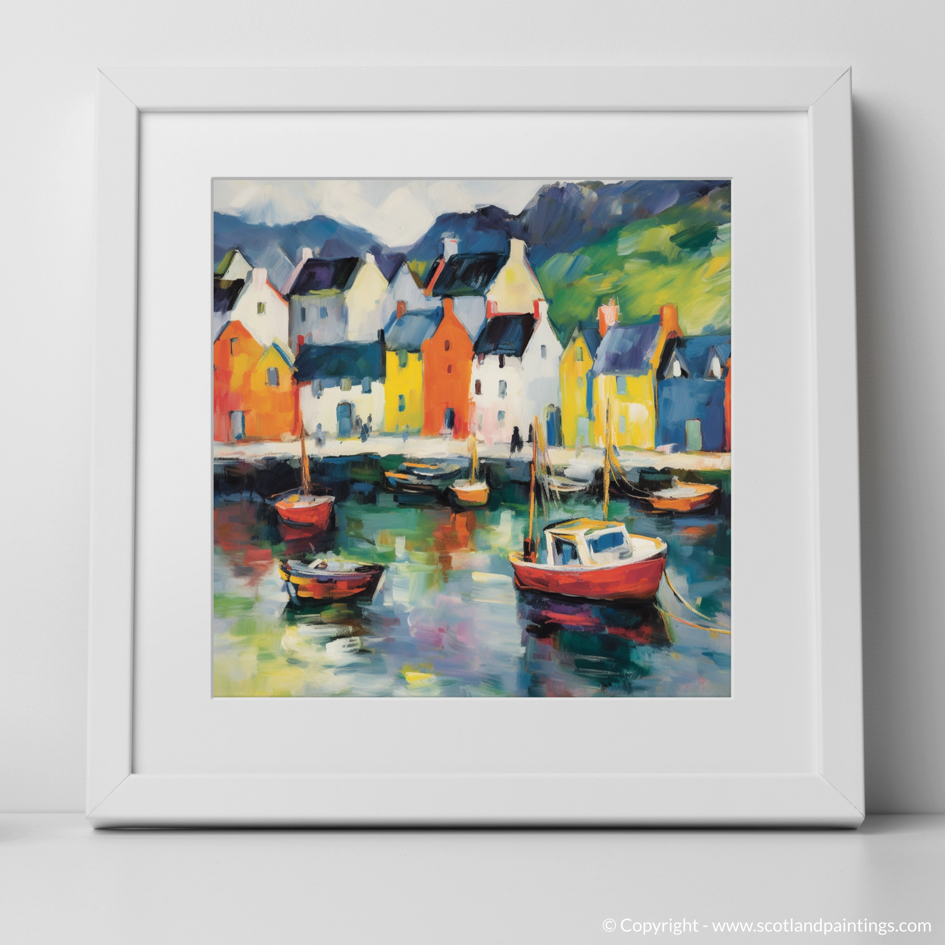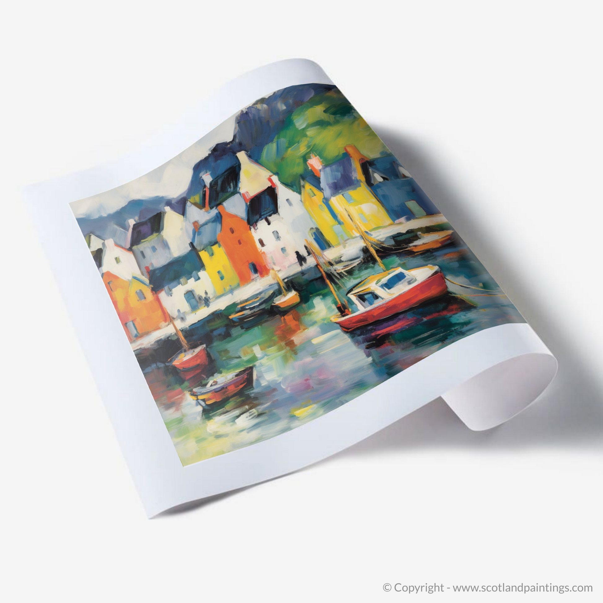 Immerse yourself in the exuberant vitality of the Scottish coast with this vivid print, invoking the spirited essence of Fauvism and celebrating the charming Portree Harbour, Isle of Skye. The artwork boasts a tapestry of bold, unbridled colours, where the conventional boundaries of naturalistic hues are exhilaratingly transgressed.