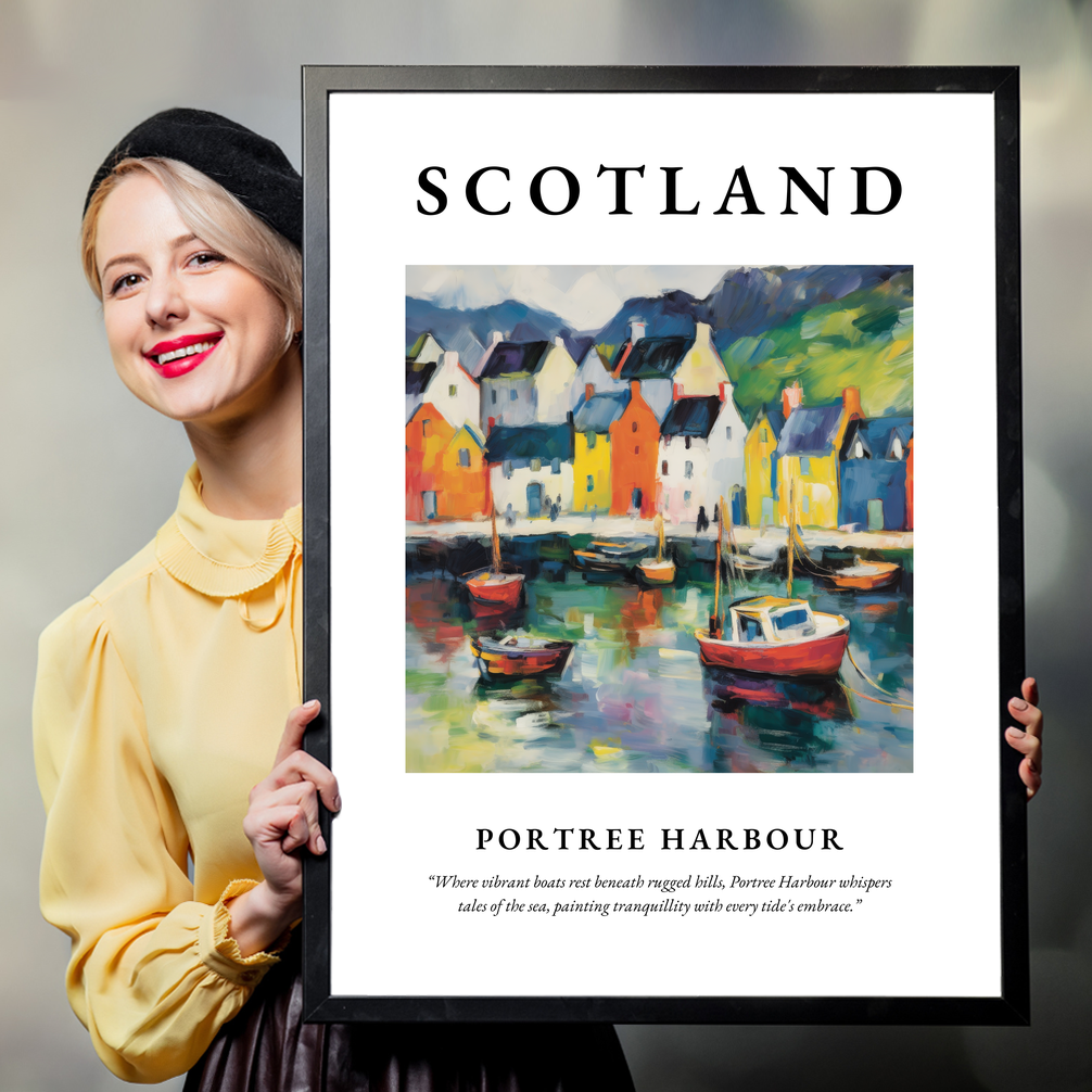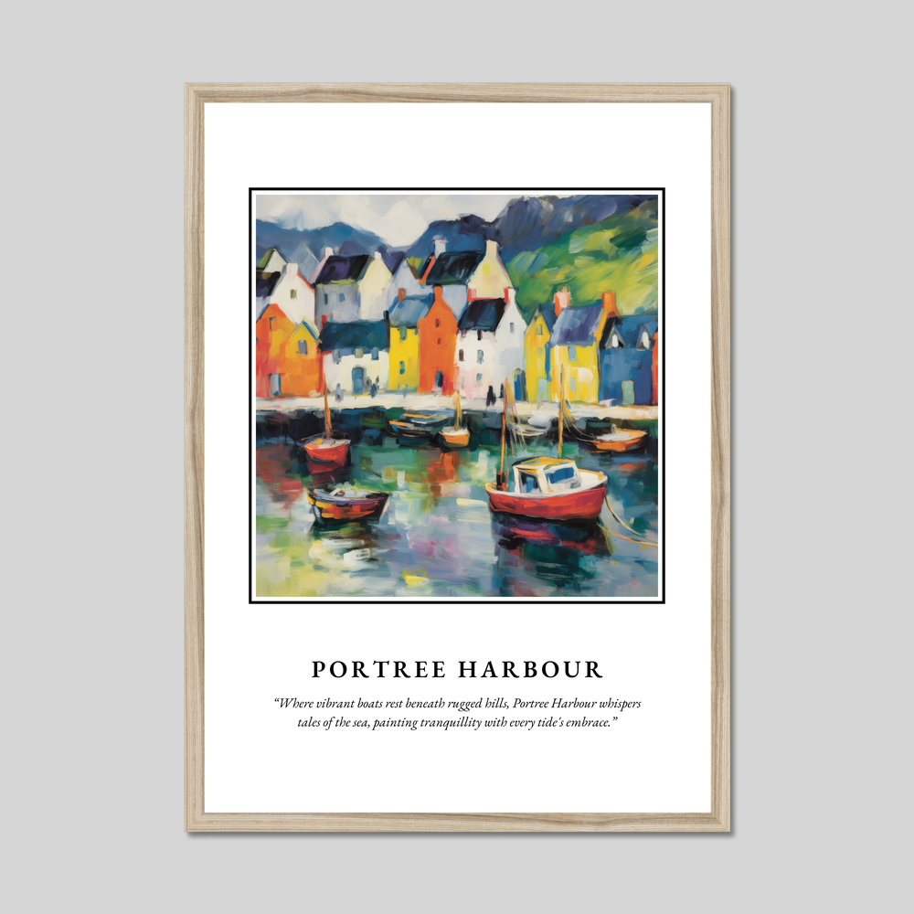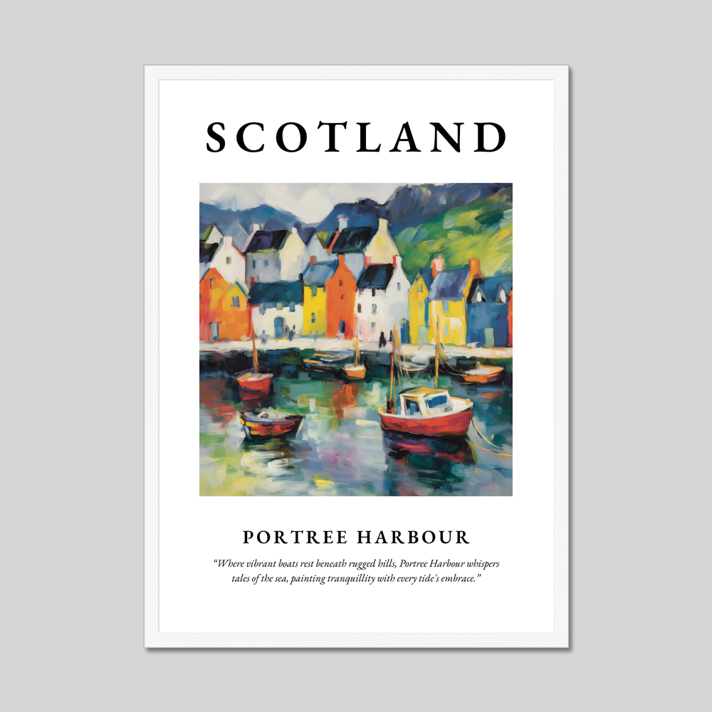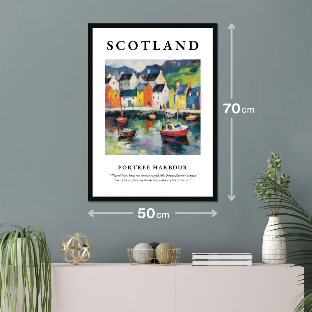Experience the charm and vibrancy of Scotland right on your wall with our captivating framed poster print, measuring an impressive 50cm x 70cm. Featuring the enchanting portrayal of Portree Harbour, this piece brings the spirit of the Scottish landscape into your home. Available in black, white, or natural wood-effect frames, it effortlessly complements any decor.