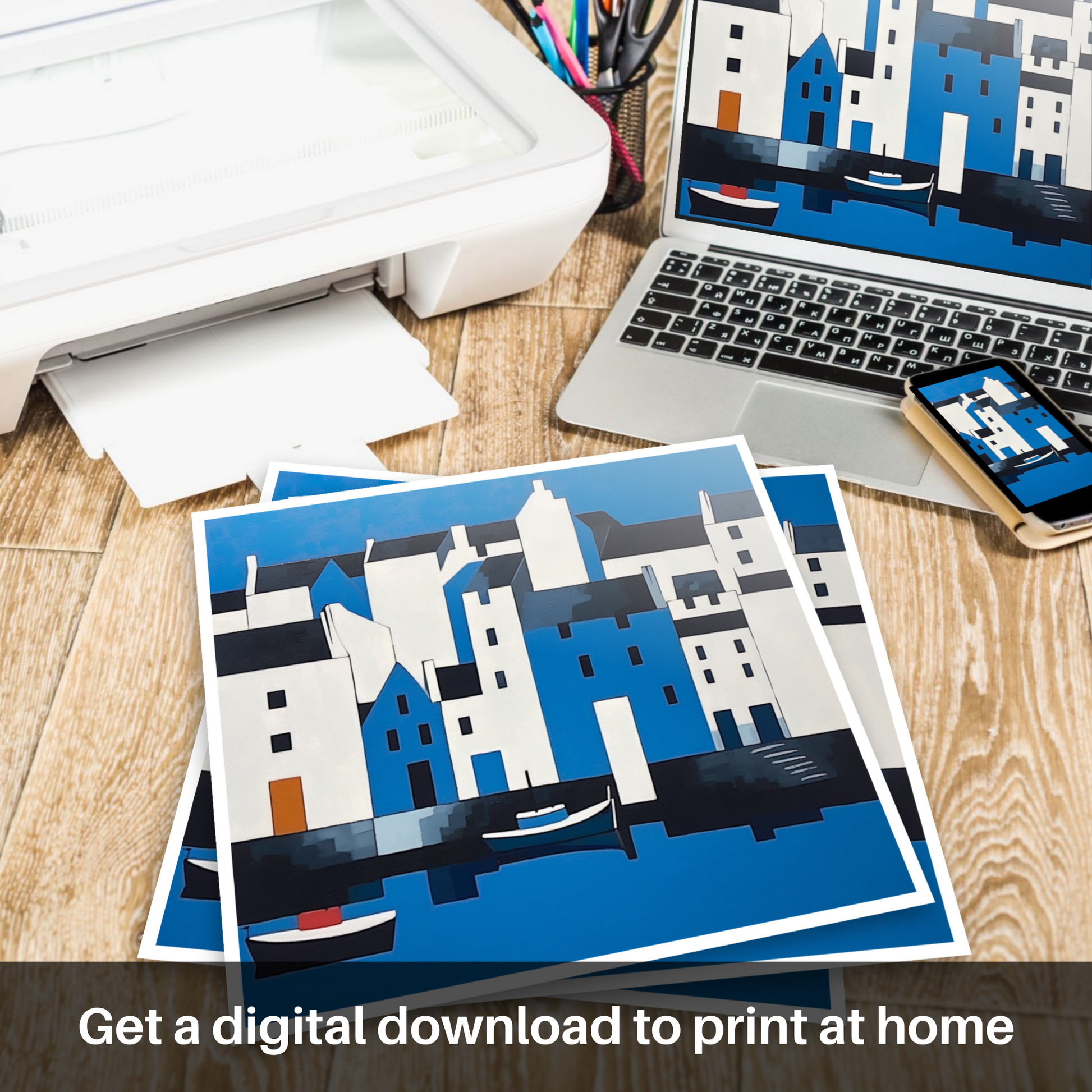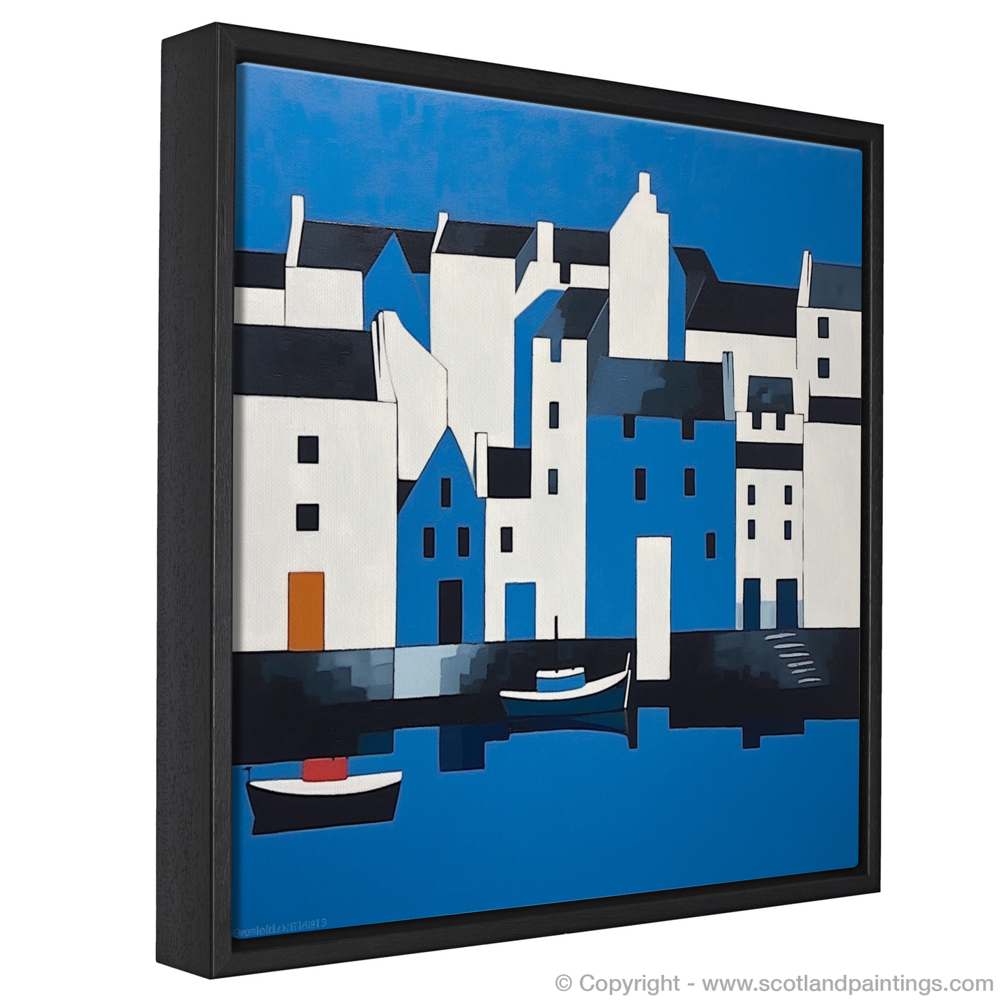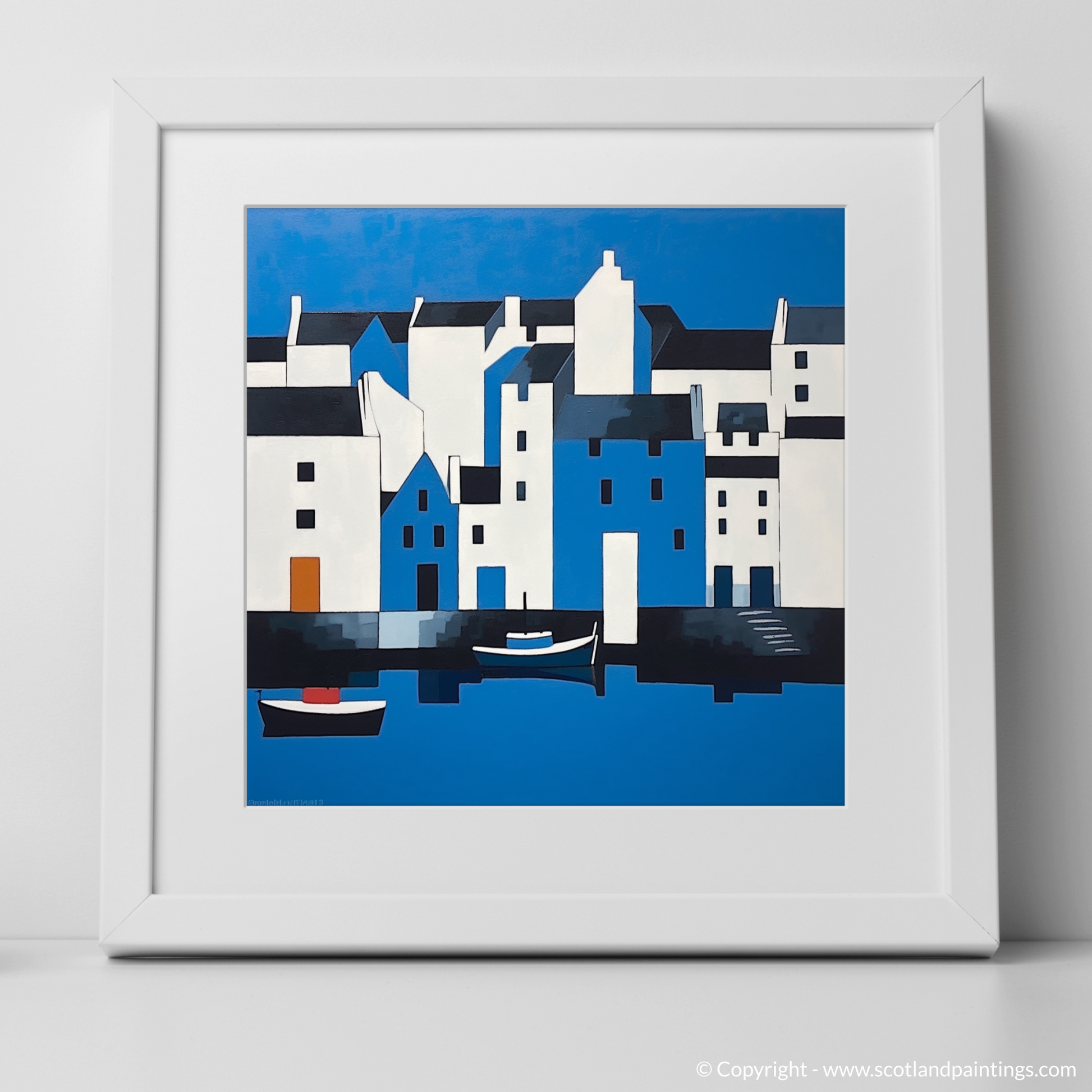 This print, a part of the 'Scottish Harbours' collection, celebrates the purity of form and colour reminiscent of the Minimalist tradition. It invites viewers to contemplate the beauty of reduction and to find peace in the unembellished representation of one of Scotland's most idyllic locales. The piece is not only an ode to the charm of Portree Harbour, but also a testament to the power of minimalism in conveying depth and emotion through a restrained palette and simplified shapes.