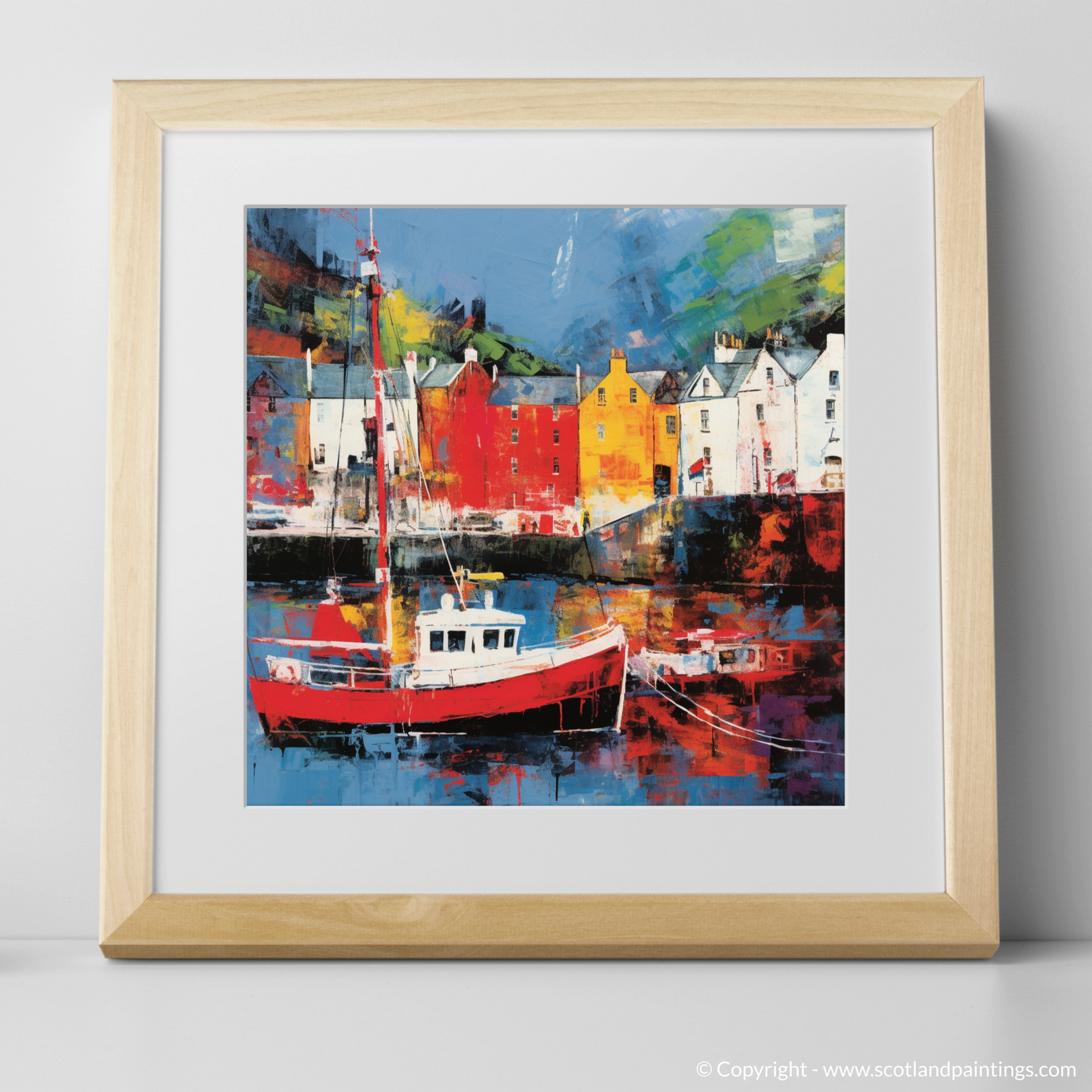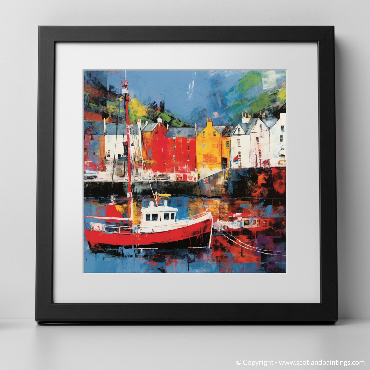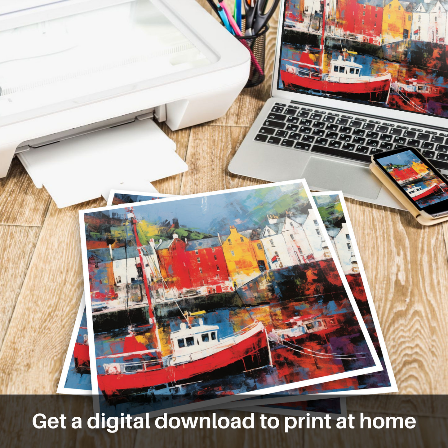 This print is part of our 'Scottish Harbours' collection, celebrating the iconic waterscapes that have shaped the cultural fabric of Scotland. Capturing a scene where manmade beauty converges with the sublime splendour of nature, this piece offers not just a mere snapshot, but a dynamic expression of Portree Harbour, rendered with an exuberance that is sure to enliven any space.