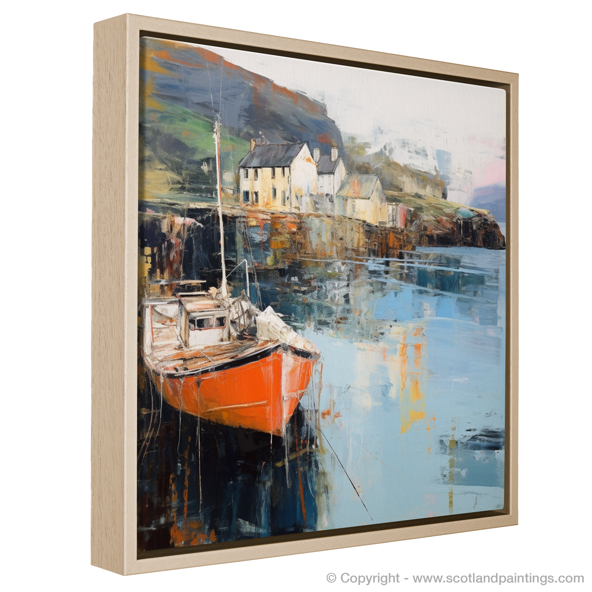 Whether you're a lover of Scotland's rugged coastlines or a connoisseur of abstract art, this print invites the viewer to interpret the fluid relationship between land, sea, and sky in their own way. It stands as an evocative testament to the unique beauty of Scottish harbours, a treasure trove of colours and forms for those seeking a piece of Skye to call their own. This print from our 'Scottish Harbours' collection is sure to ignite the imagination and bring a touch of the sublime into any room it graces.