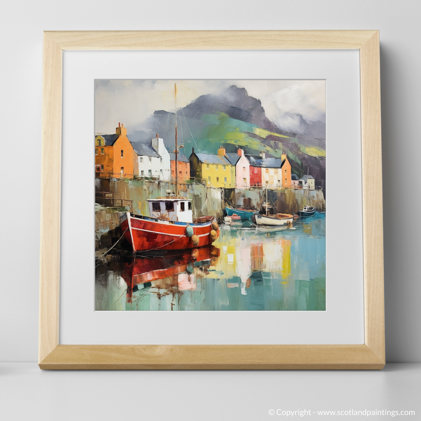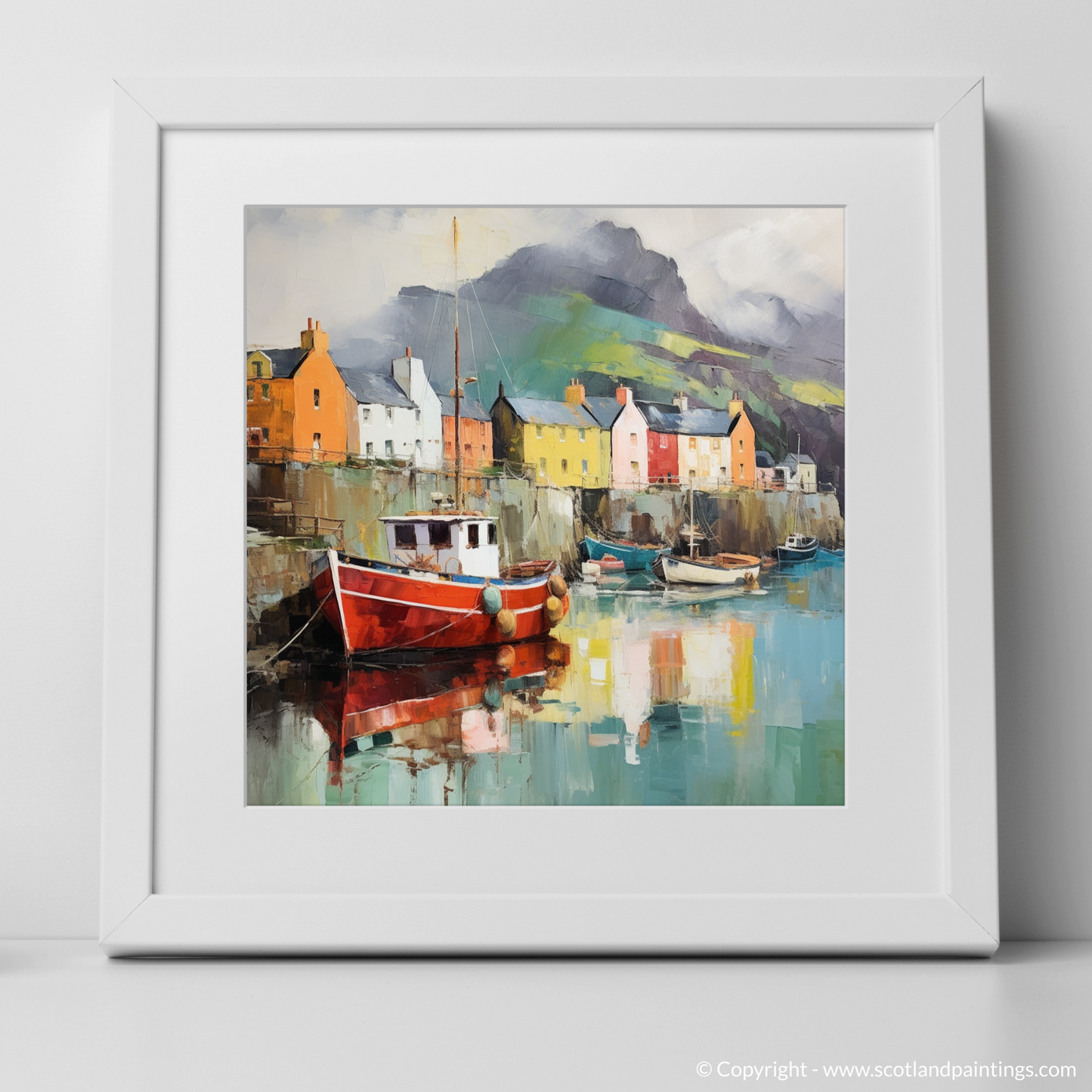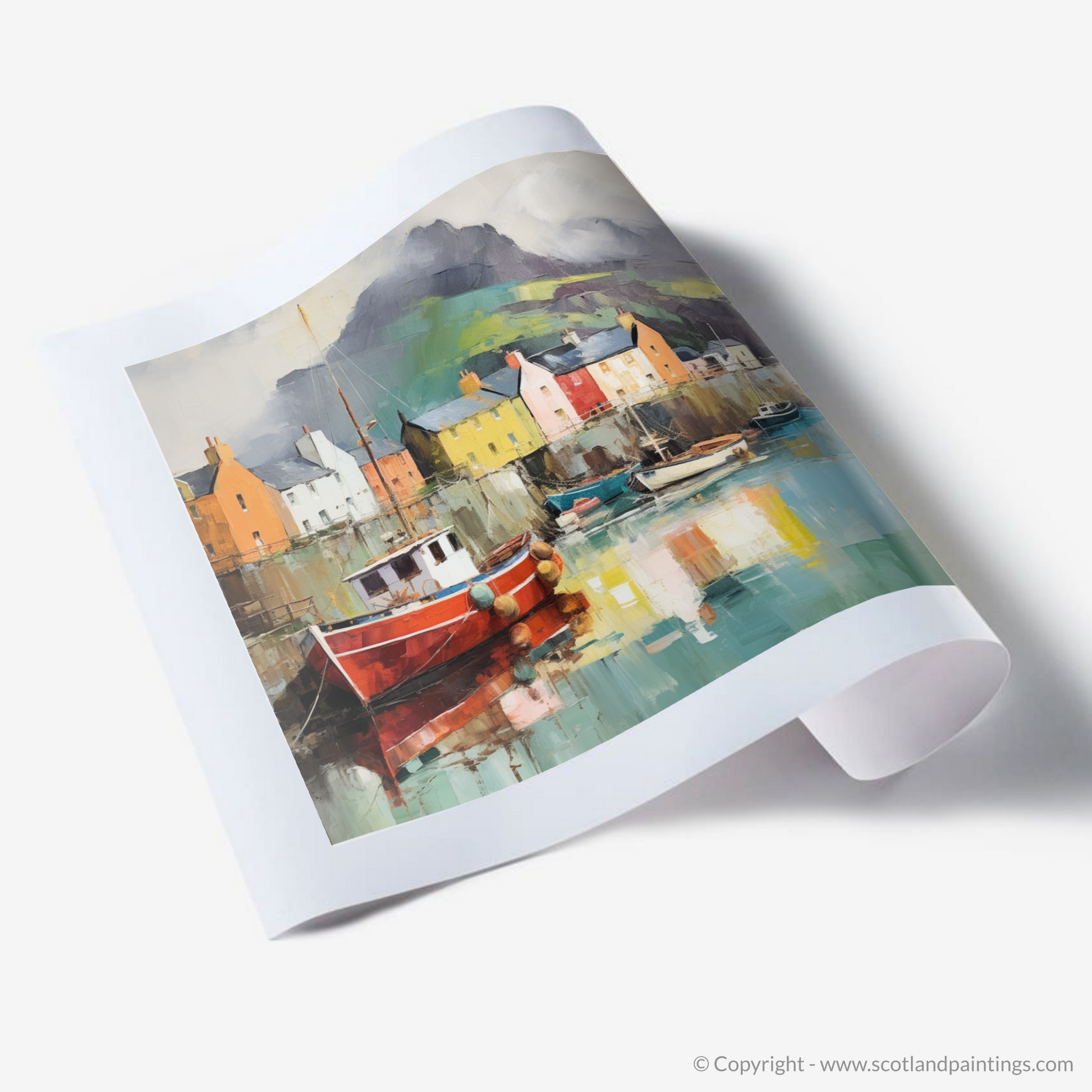 This print offers the viewer an escape to a world where Scottish landscapes merge with the unconstrained imagination, inviting a unique perspective on the serene beauty of the Isle of Skye’s harbourside. It is an invitation to ponder and appreciate a place that exists somewhere between dreams and waking, where the heart of Scotland's heritage is shrouded in an aura of sublime surreality.