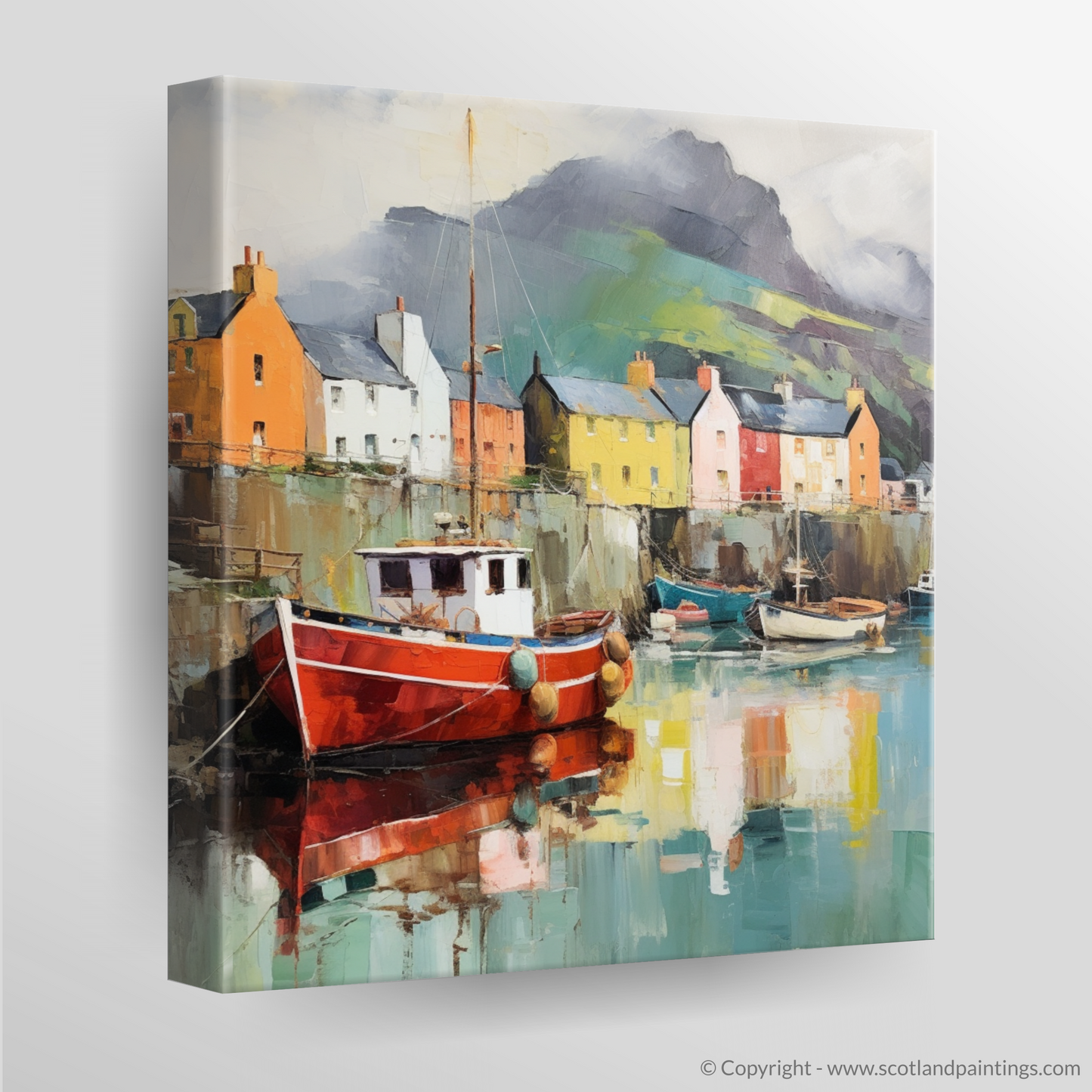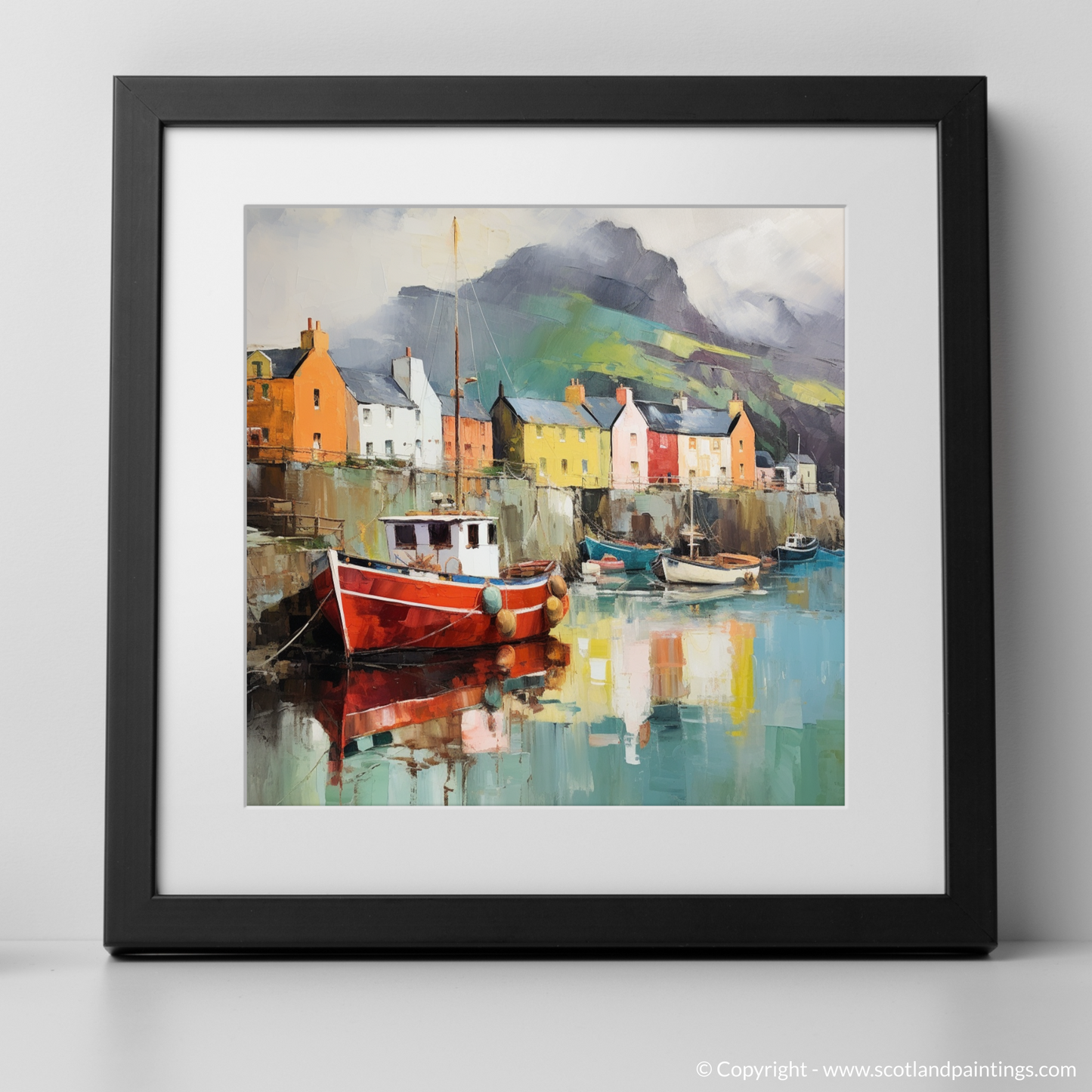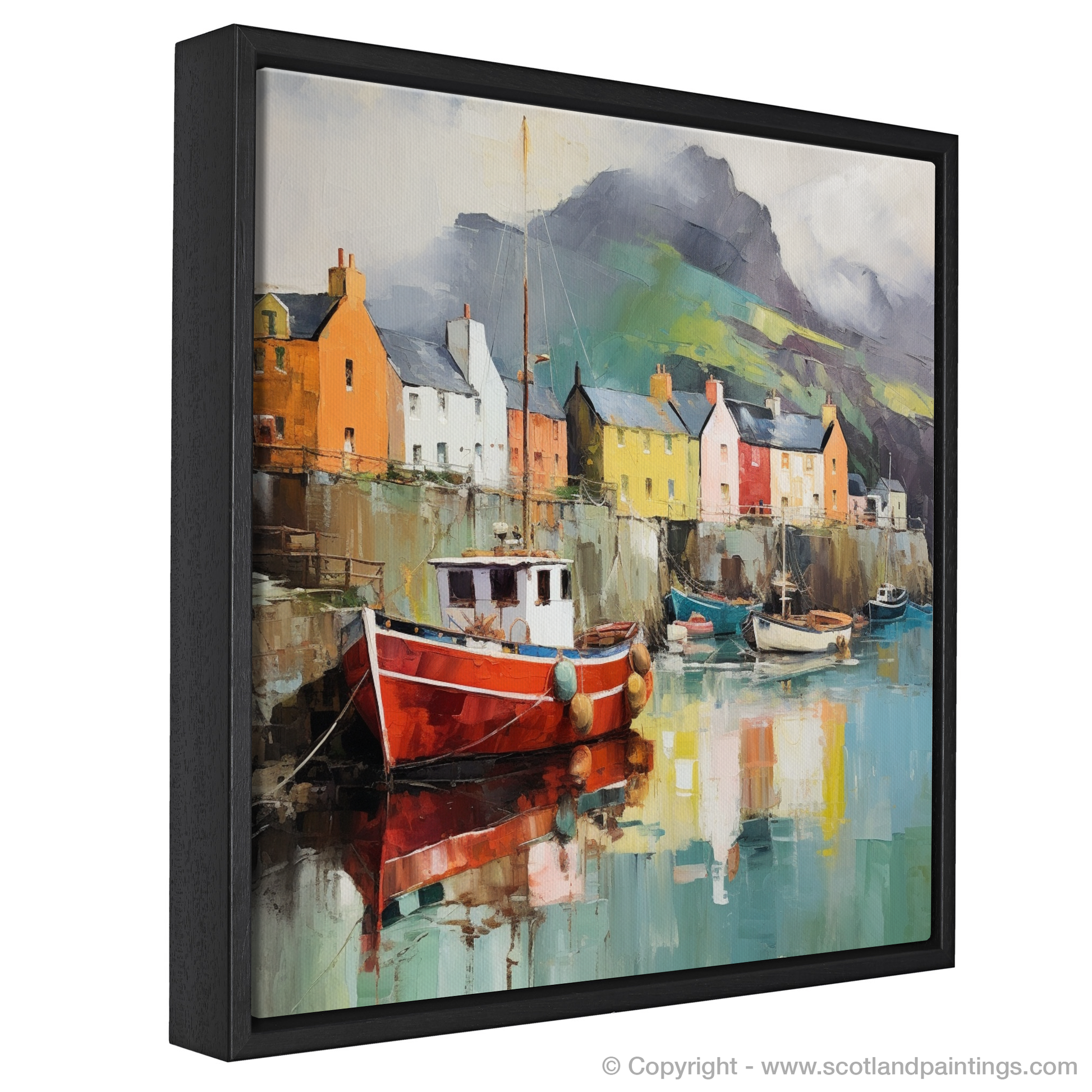 This print offers the viewer an escape to a world where Scottish landscapes merge with the unconstrained imagination, inviting a unique perspective on the serene beauty of the Isle of Skye’s harbourside. It is an invitation to ponder and appreciate a place that exists somewhere between dreams and waking, where the heart of Scotland's heritage is shrouded in an aura of sublime surreality.
