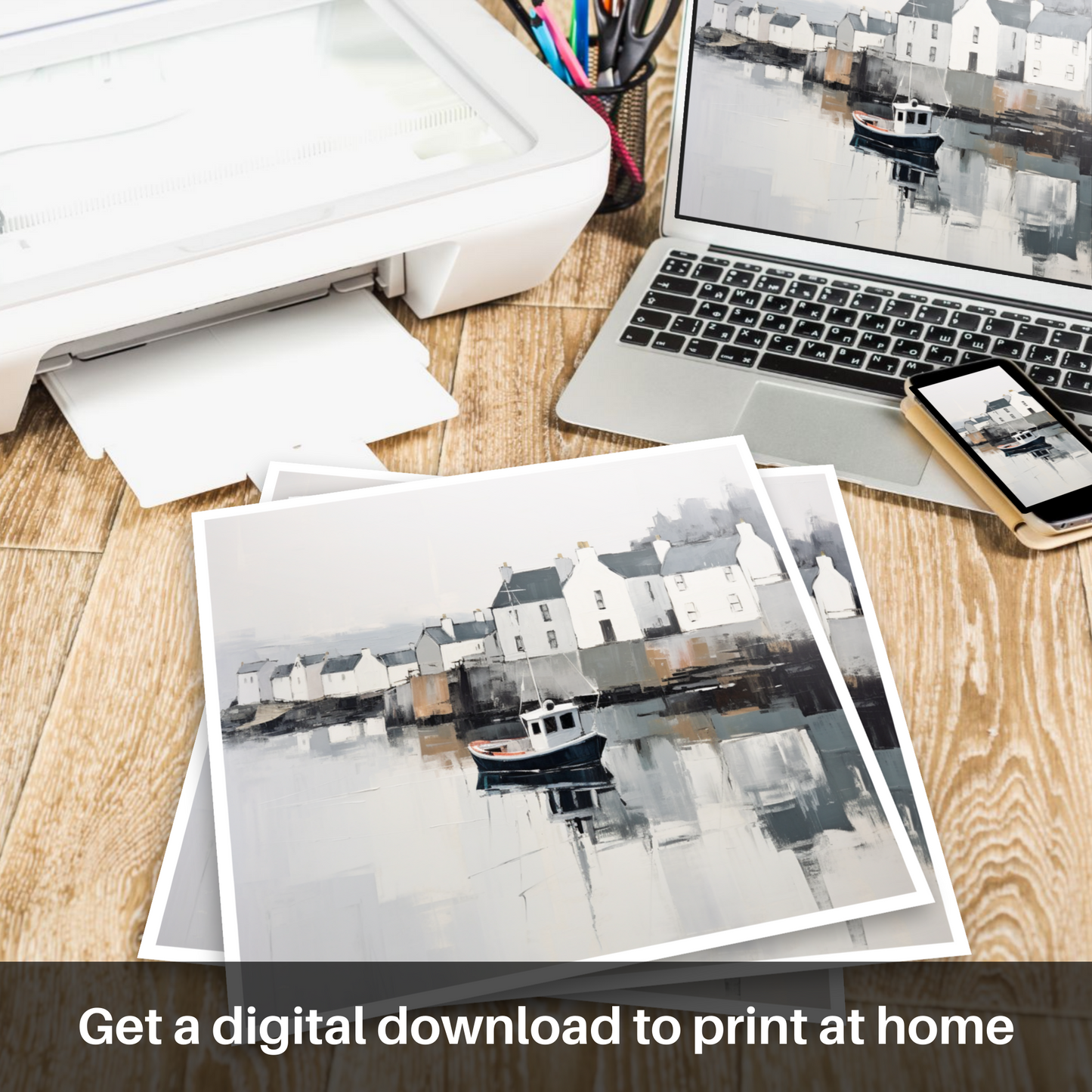 This print, a part of the 'Scottish Harbours' collection, acts as a window to the soul of Scotland's coastal beauty. It is a perfect blend of minimalistic elegance and atmospheric serenity, destined to bring a piece of the Scottish Isles' placid charm to any space.