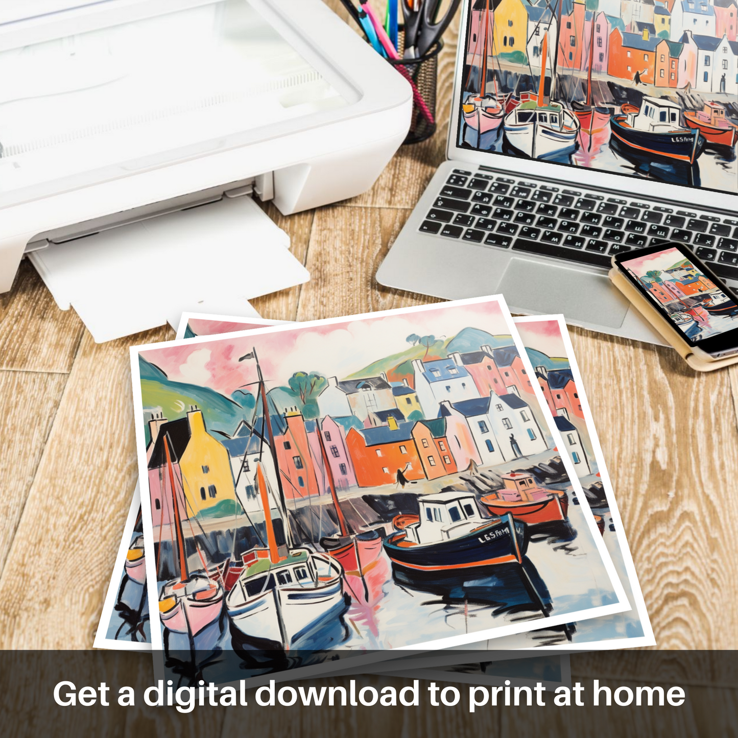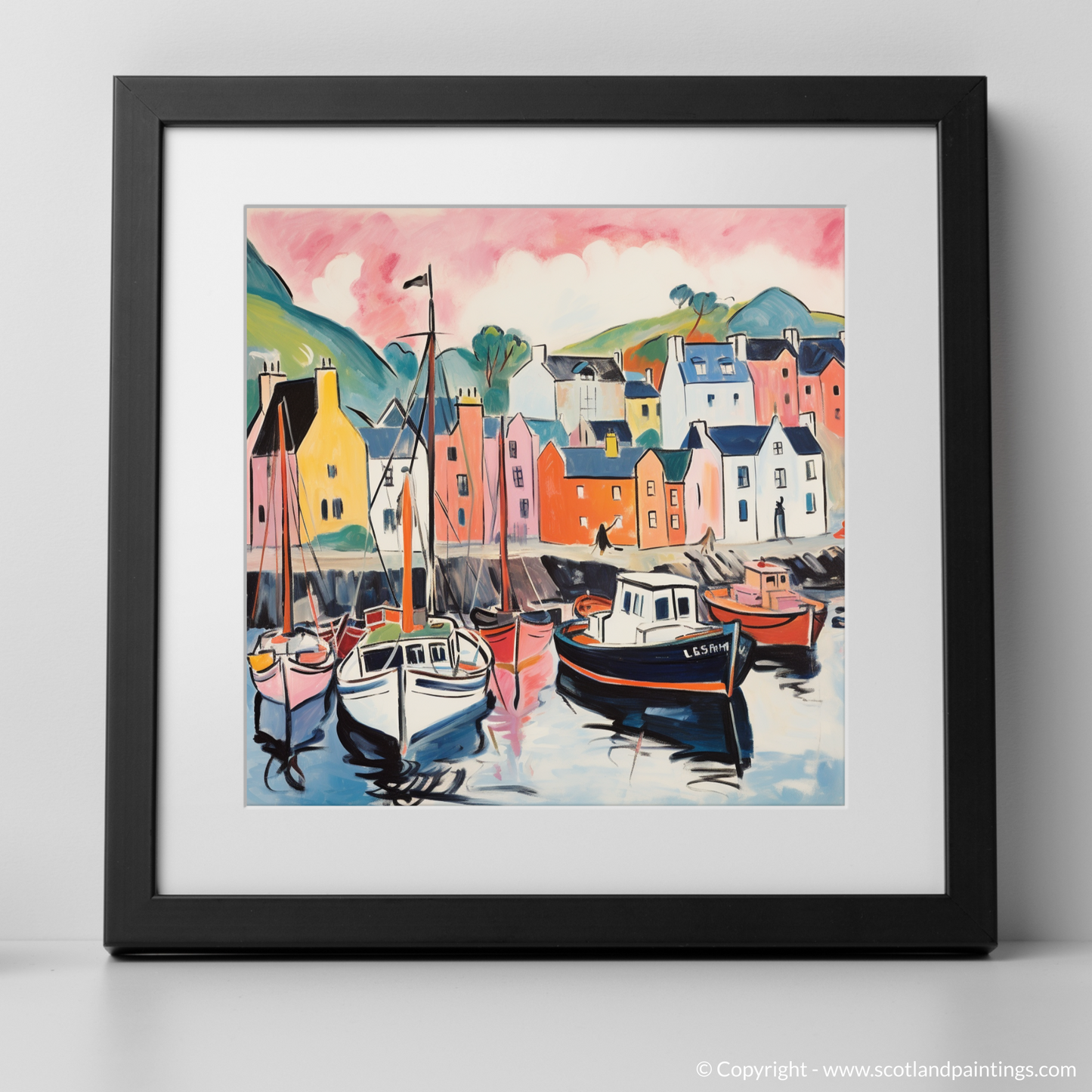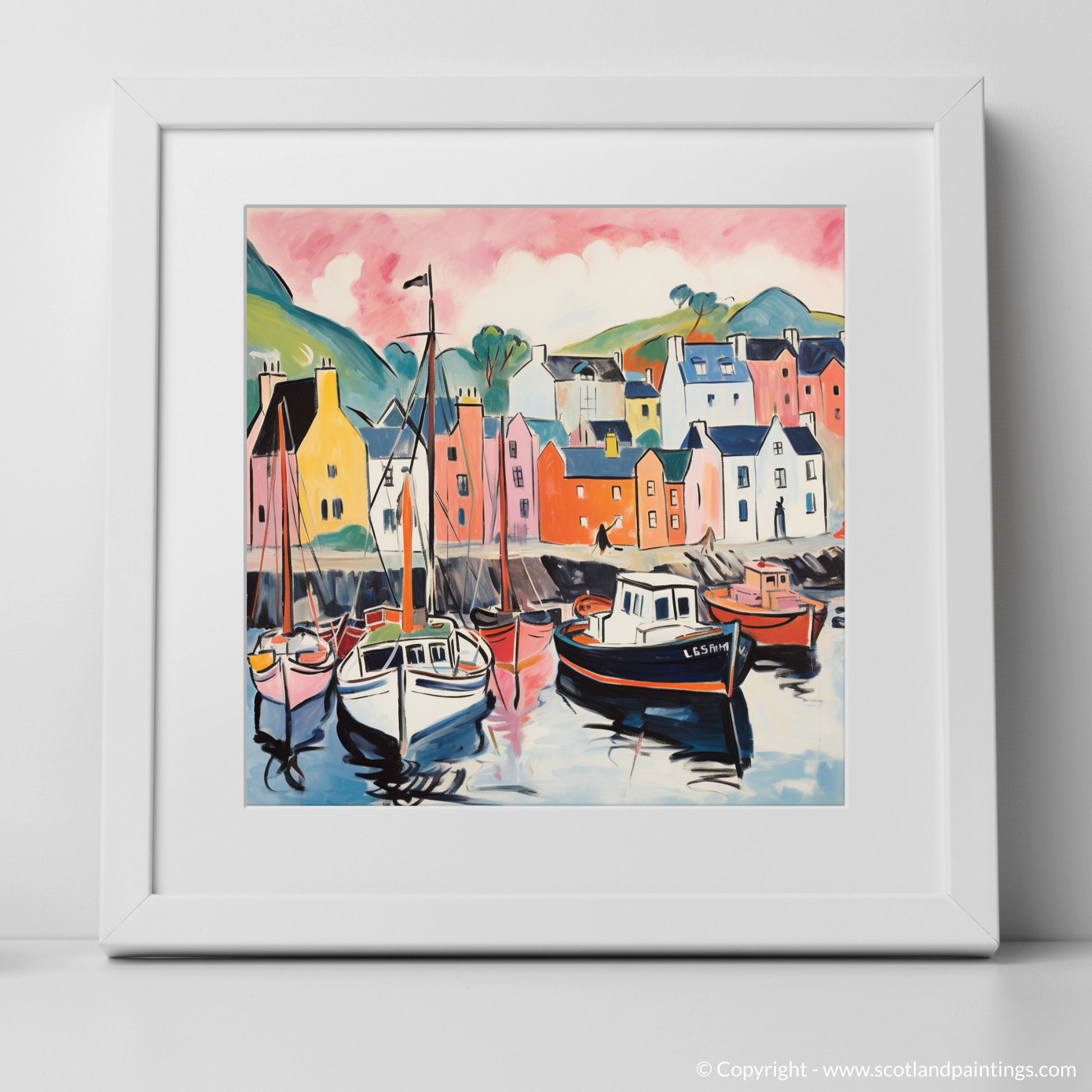 Immerse yourself in the striking vibrancy and robust brushstrokes of this captivating print, a celebration of the charming Portree Harbour situated on Scotland’s picturesque Isle of Skye. The work revels in the bold palette and emotional intensity characteristic of Fauvism, a style renowned for its revolutionary use of colour and form.