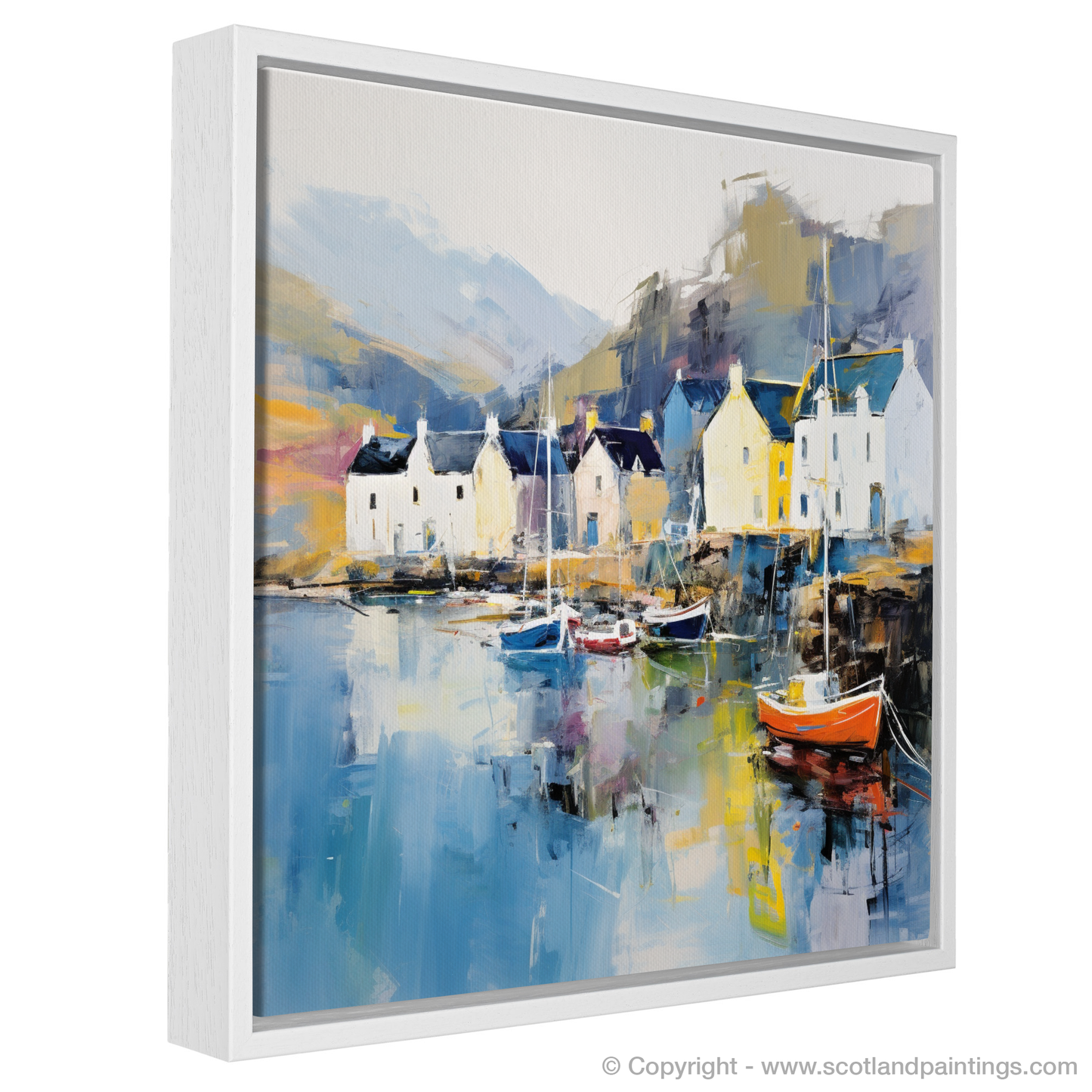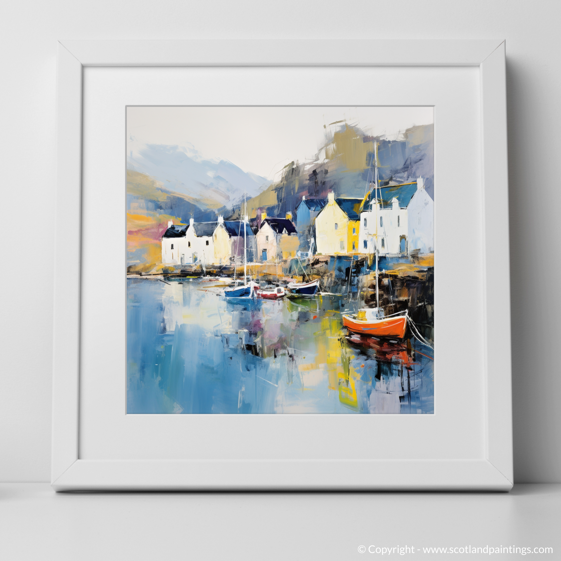 Immerse yourself in the vibrant essence of the Isle of Skye with our exquisite print capturing the whimsical charm of Portree Harbour. This stunning piece, nestled within our 'Scottish Harbours' collection, portrays a delightful synthesis of buoyant hues and loose, expressive brushstrokes that evoke the vitality of this picturesque seaside retreat.
