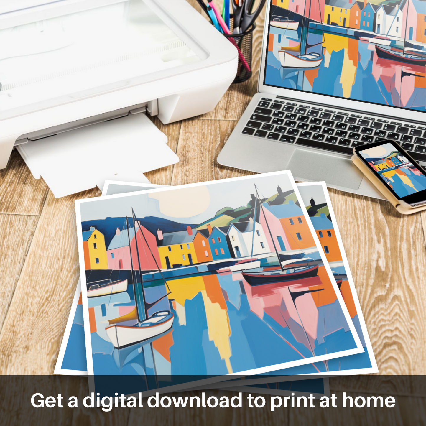 This print is a splendid addition to any space, inviting the onlooker to a moment of tranquillity and immersion in the stunning Scottish landscape. It serves not only as a captivating visual treat but also as a homage to the quaint charm of Portree Harbour, translated into the language of Colour Field style. Add this piece to your collection and embrace the timeless allure of Scottish Harbours.