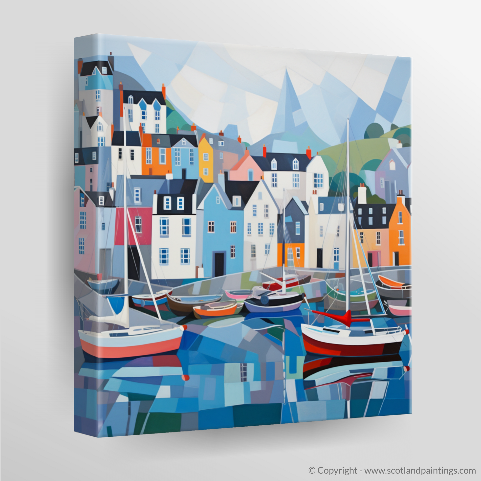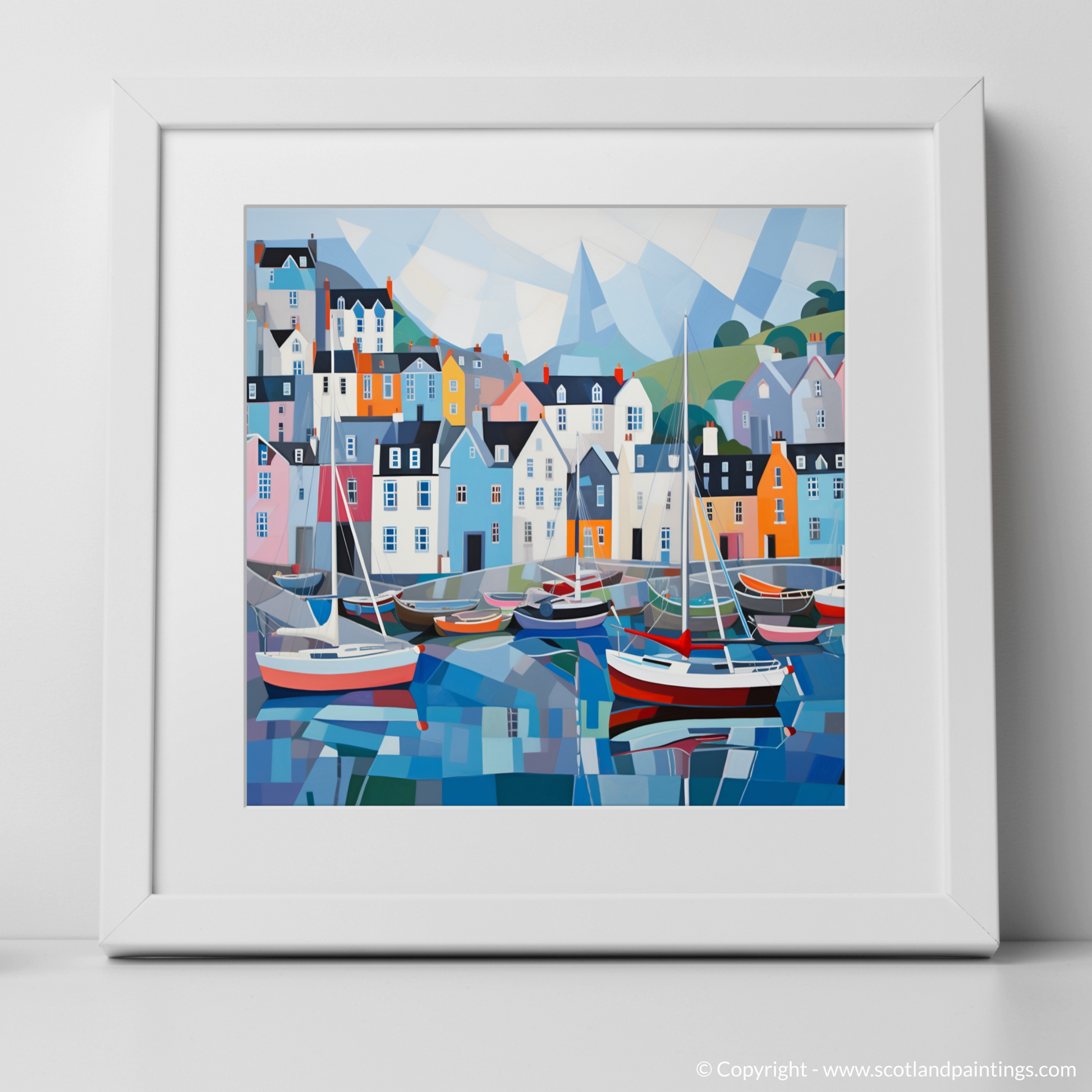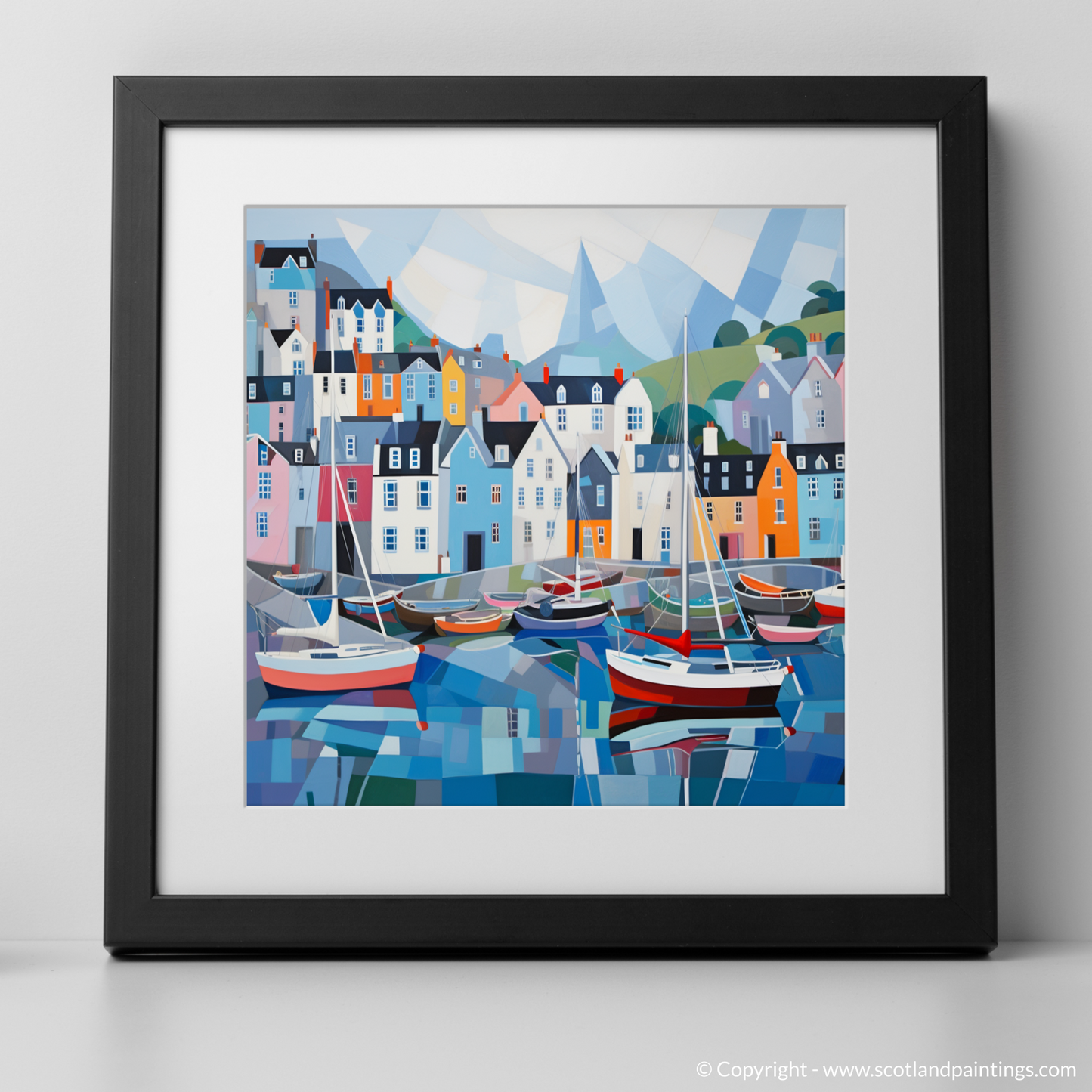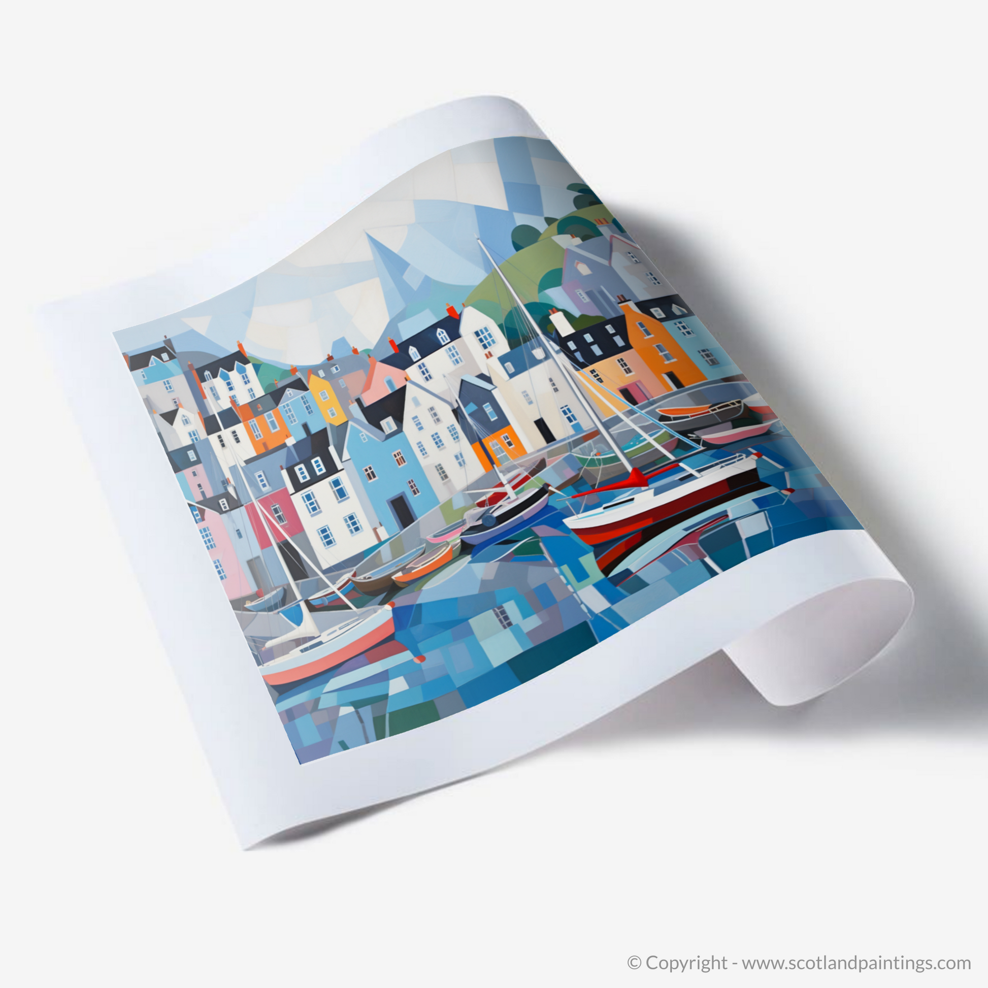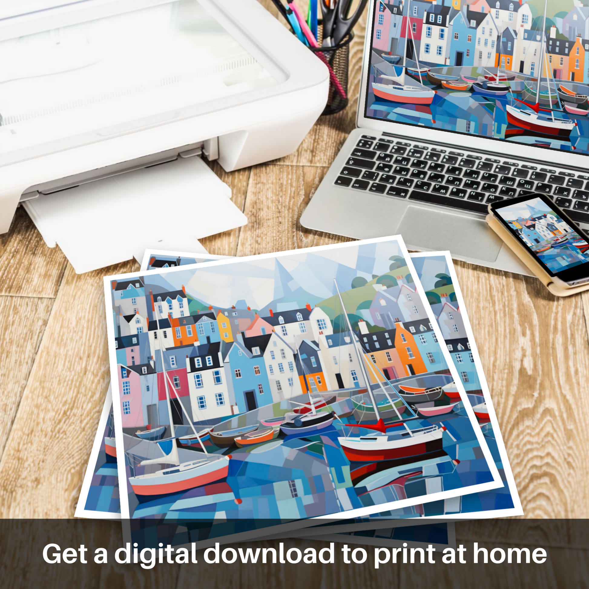 This print is a celebration of the spirit of Scotland's coastal villages, where every element, from the water to the sky, is reimagined through a contemporary abstract lens. It invites the observer to lose themselves in its intricate details and to feel the cool sea breeze and the quiet hum of harbour life through its dynamic yet harmonious composition. This piece is a must-have for anyone who cherishes the allure of Scotland's shores.