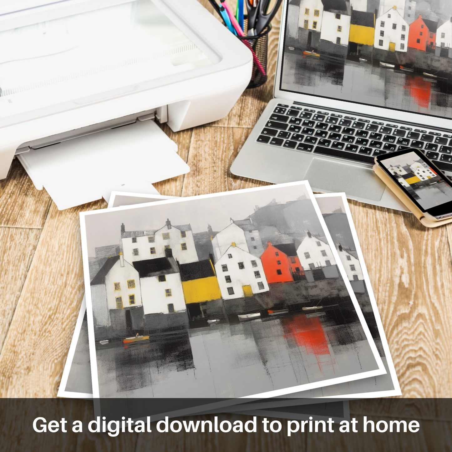 This print is a contemporary homage to the tranquil beauty of Scottish harbours, perfect for those seeking a touch of calm and sophistication for their living space. It invites contemplation and calm, and will surely become a cherished focal point in any home or office. Embrace the sparse elegance and enduring allure of this Scottish haven with a piece that exemplifies the art of minimalism.
