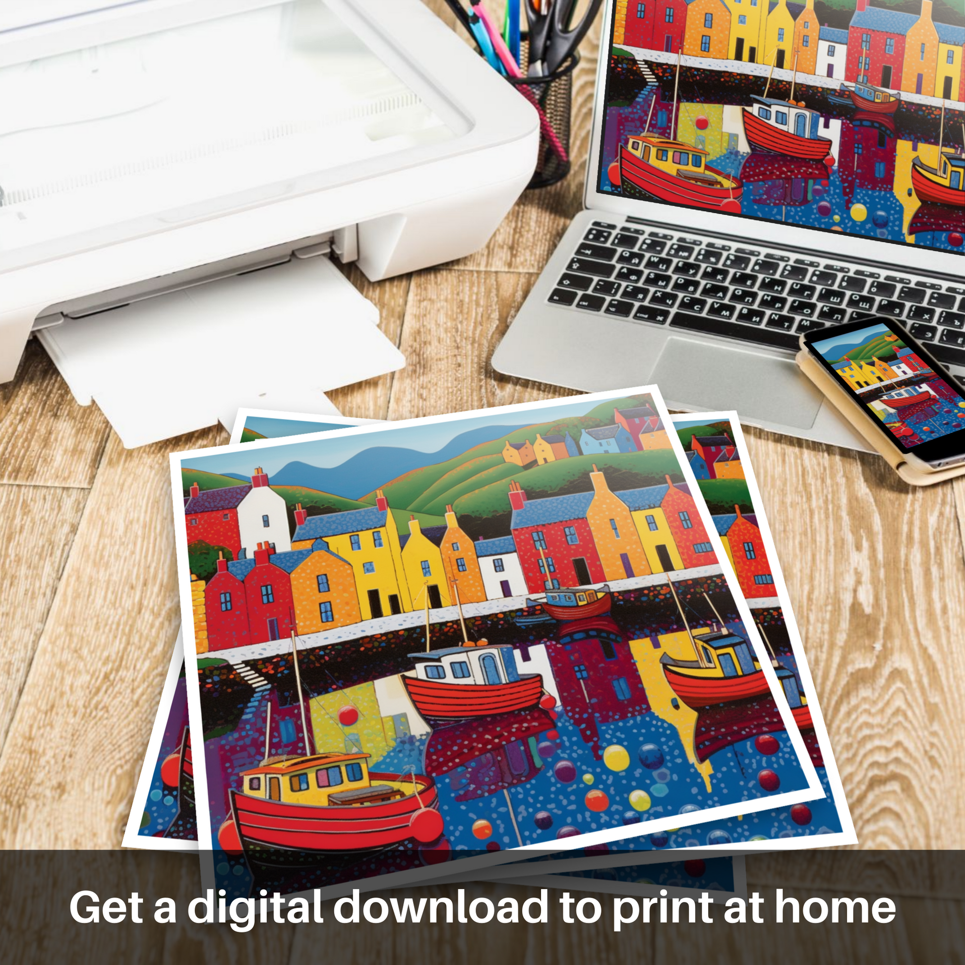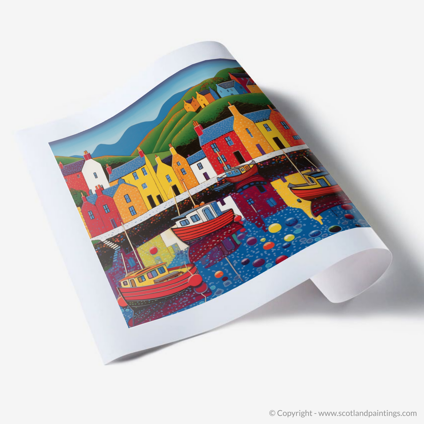 This print is a part of our 'Scottish Harbours' collection and is ideal for those who wish to bring a dash of contemporary Scottish flair into their home or work environment. It serves not only as vivid wall art but also as an invitation to contemplate the dynamic fusion of art, culture, and the timeless allure of Scottish coastal life.