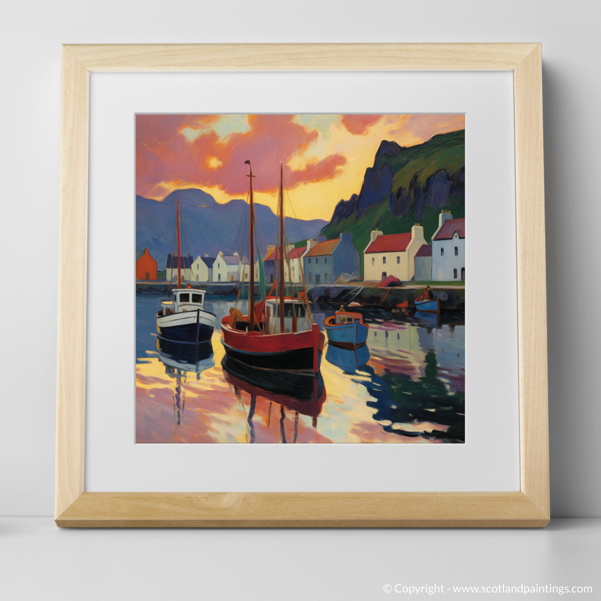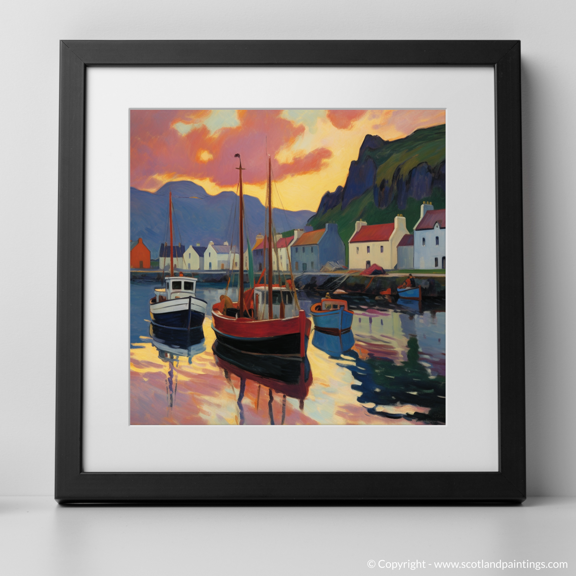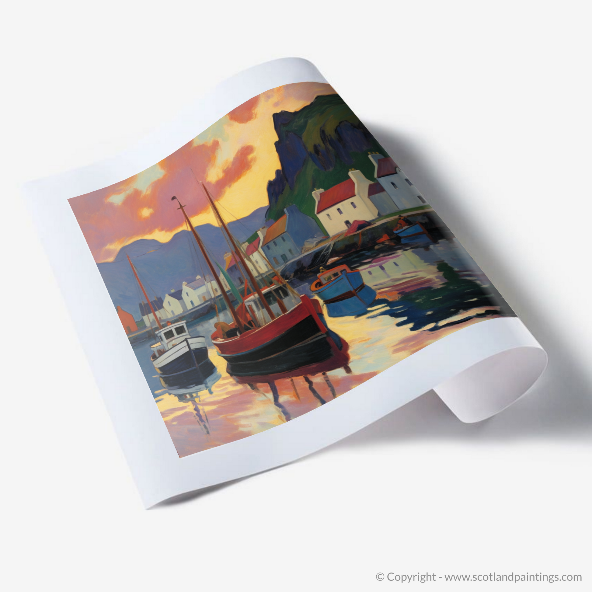 Immerse yourself in the vibrant embrace of Fauvist expression with this evocative print, inspired by the serene Portree Harbour on the Isle of Skye. Bold brushstrokes and exuberant hues capture the wild essence of the Scottish landscape, marrying the quaintness of the harbourside with an almost dreamlike radiance.