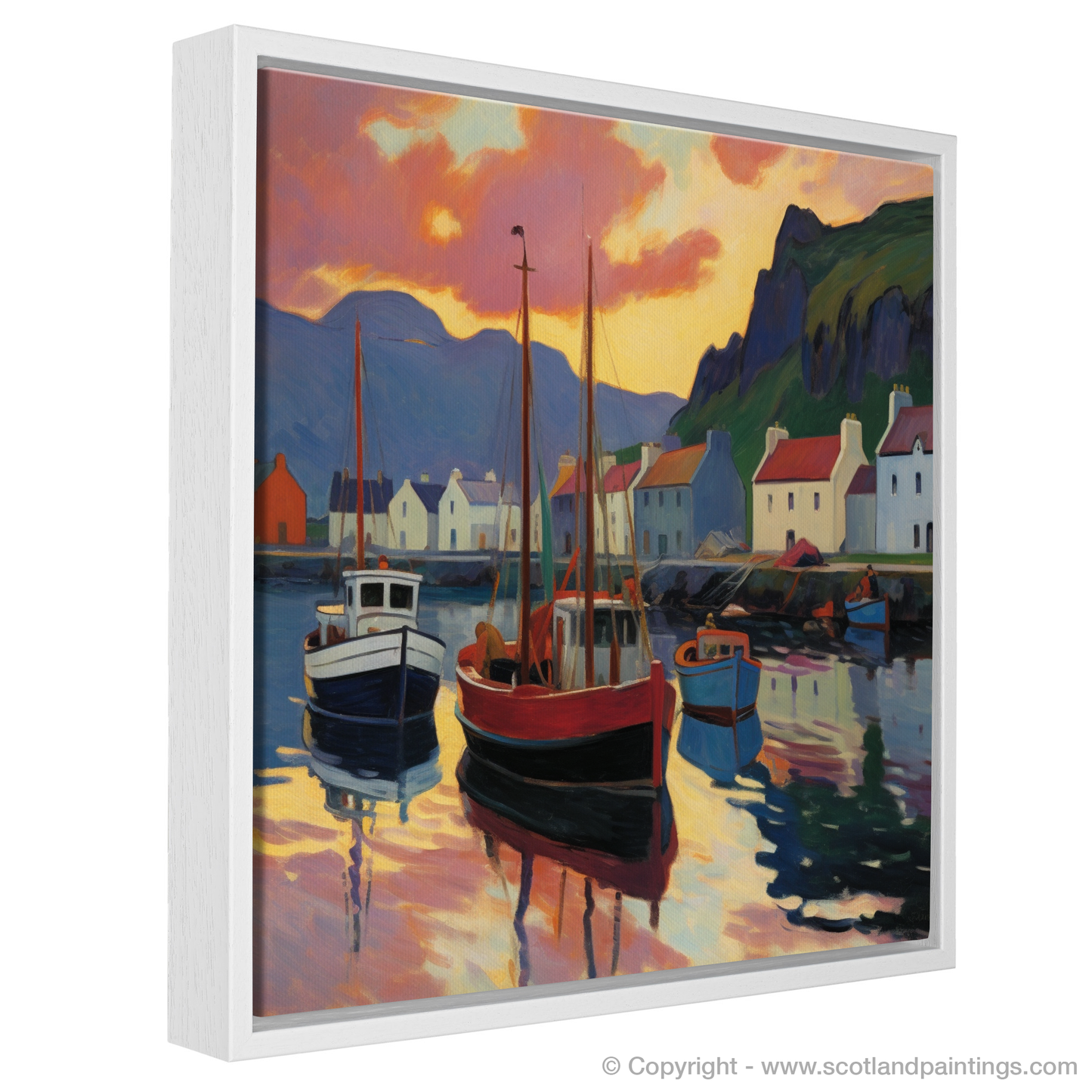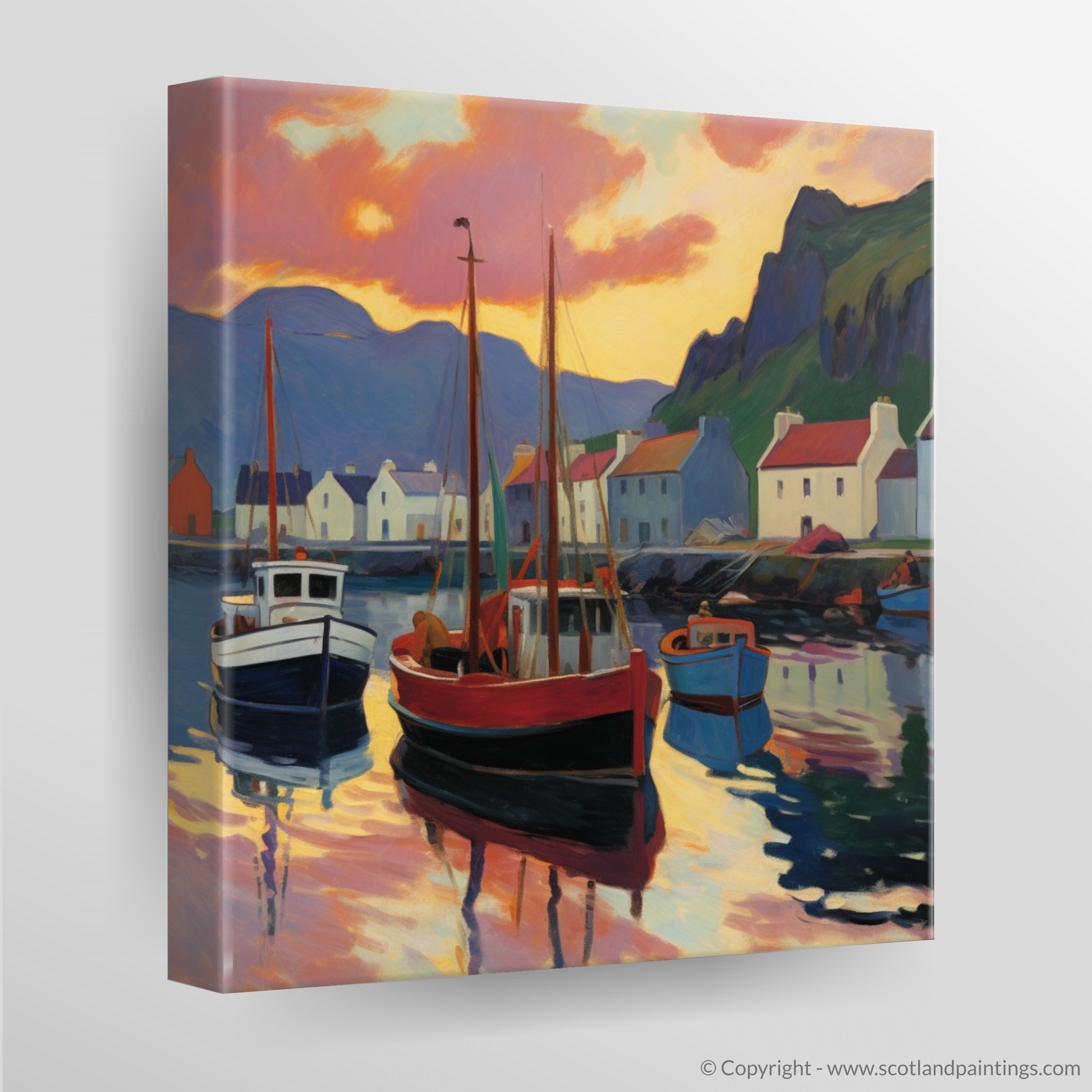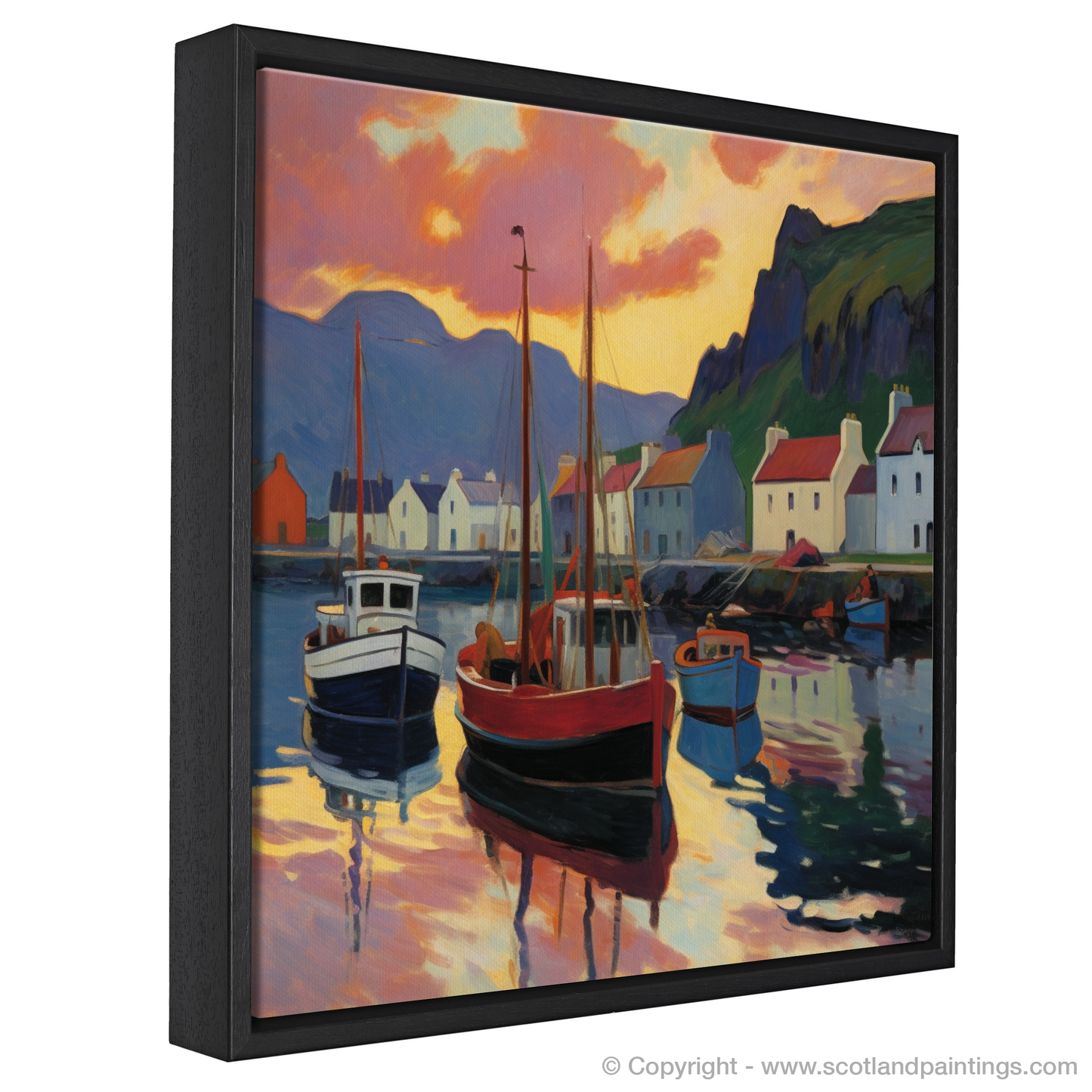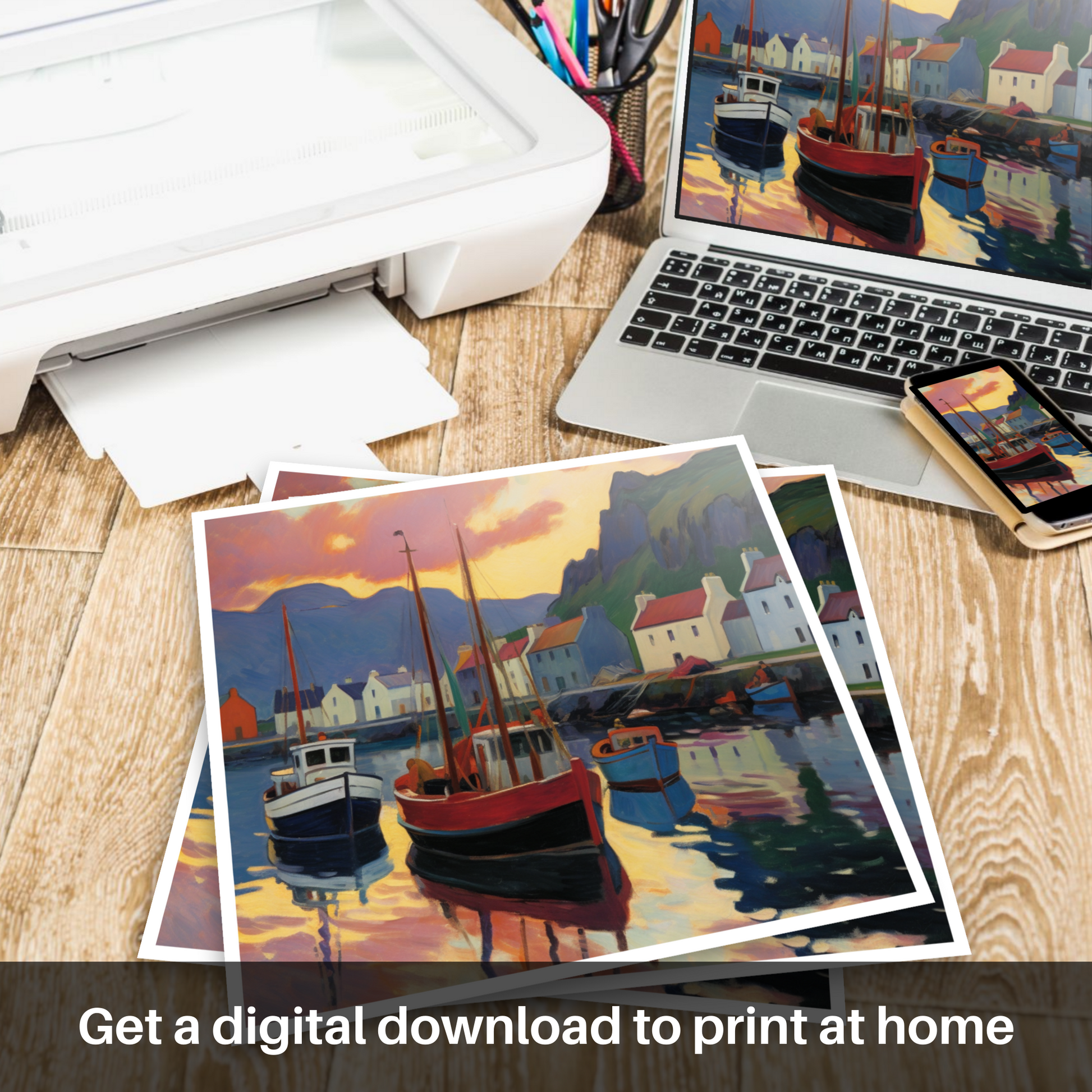 Immerse yourself in the vibrant embrace of Fauvist expression with this evocative print, inspired by the serene Portree Harbour on the Isle of Skye. Bold brushstrokes and exuberant hues capture the wild essence of the Scottish landscape, marrying the quaintness of the harbourside with an almost dreamlike radiance.