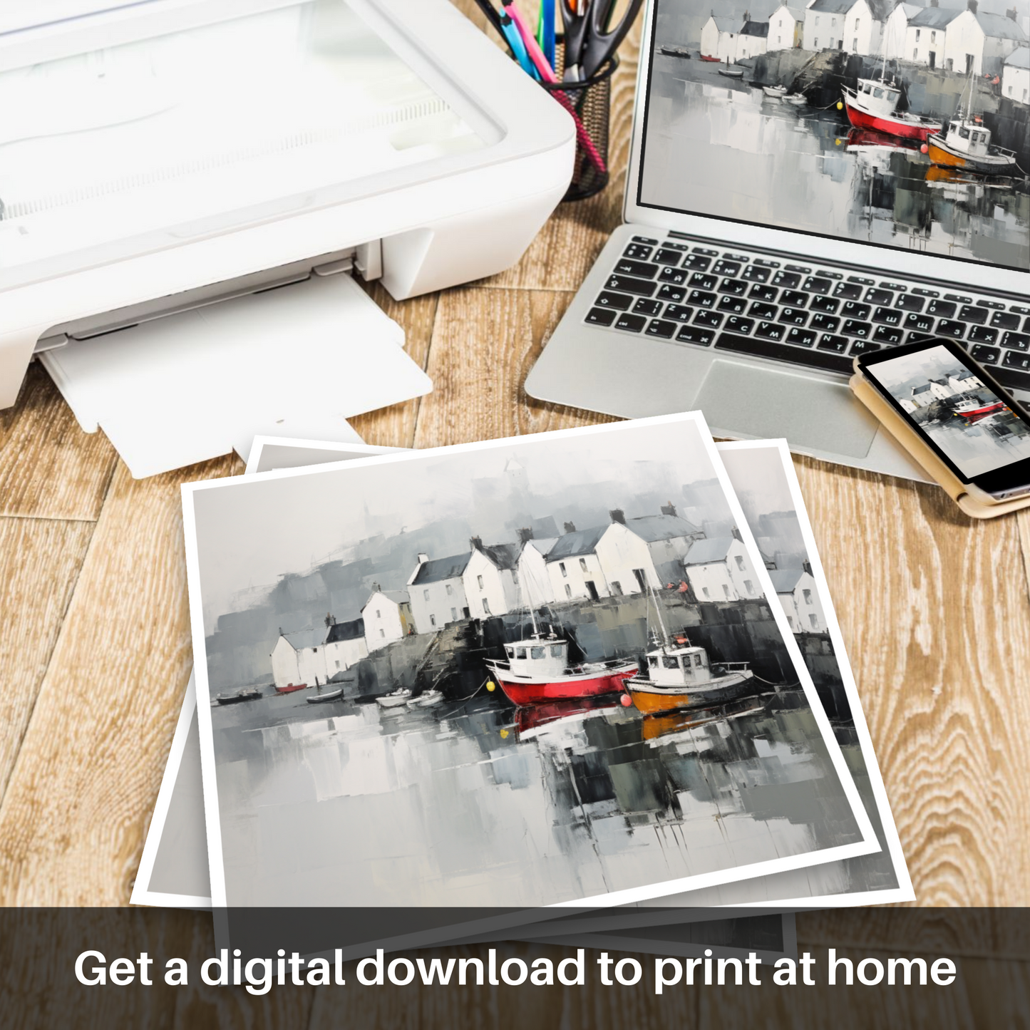 Immerse yourself in the understated elegance of a minimalist interpretation of Portree Harbour, a serene and timeless reflection of the iconic Scottish port. This exquisite print captures the essence of tranquility and the subtle interplay of light and shadow that characterises the Isle of Skye.