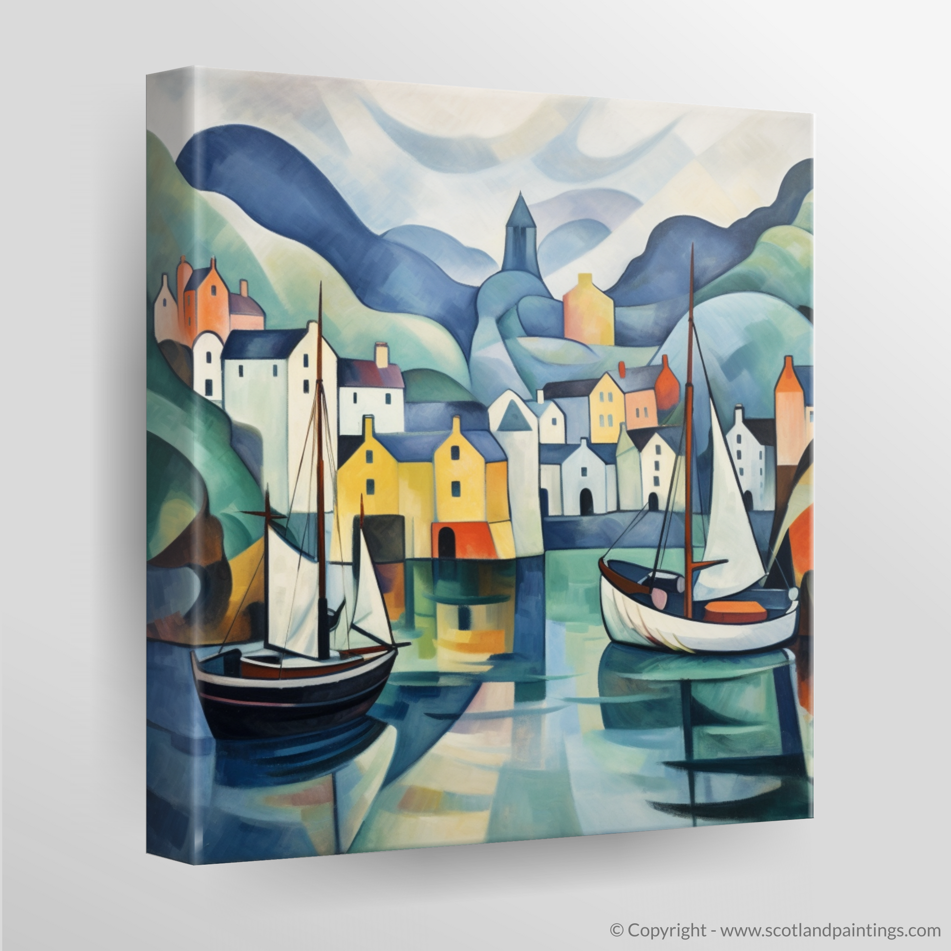 Embrace the essence of the Scottish Highlands with our evocative abstract portrayal of Portree Harbour, a gem nestled on the Isle of Skye. This work captures the vibrancy and tranquillity of the charming port through an imaginative lens, inviting the viewer to reinterpret the seascape through shapes and colours that dance across the canvas.