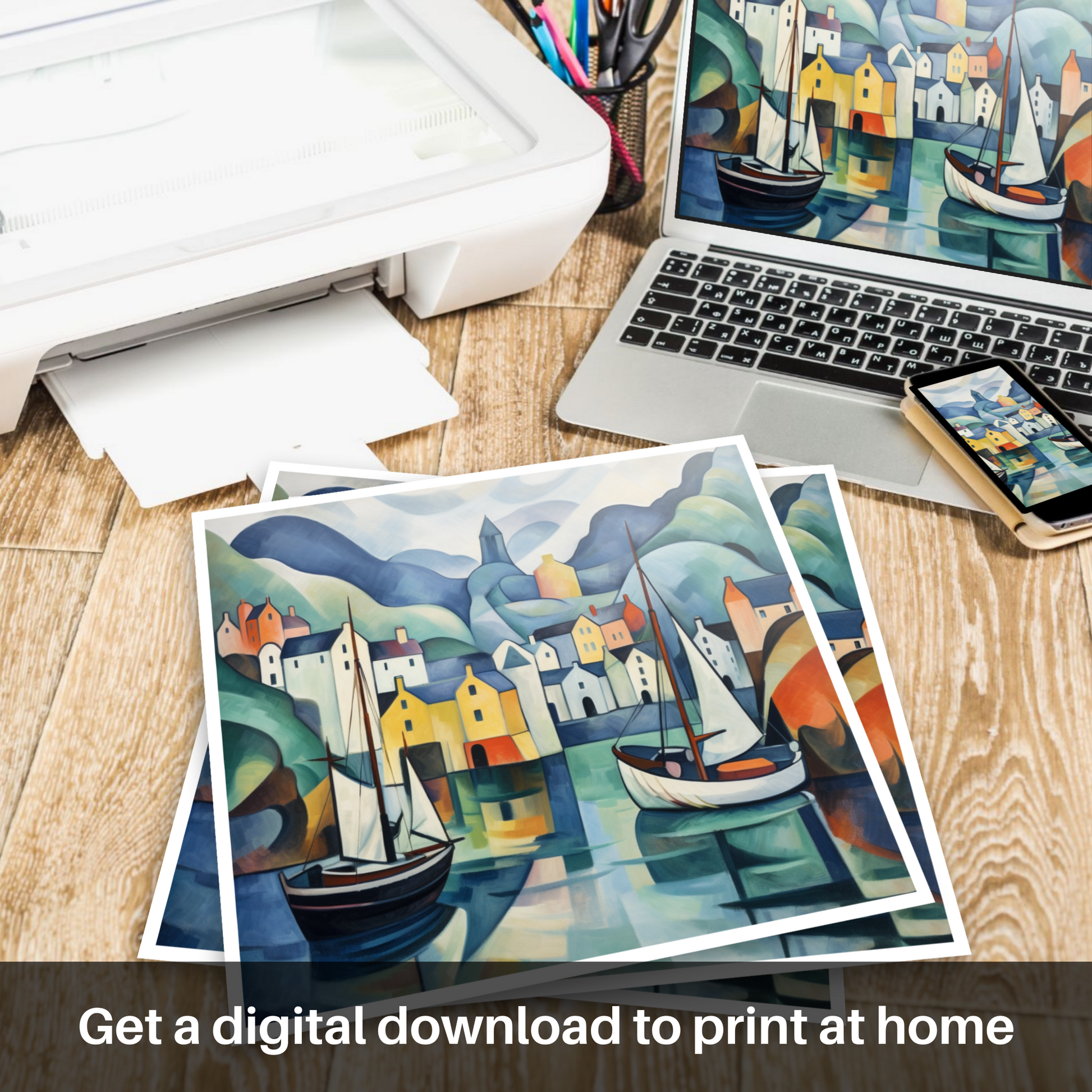 This print is a resonant piece for anyone who longs to bring the surreal beauty of Scotland's harbours into their home. Whether as a centrepiece in a living space or as part of a curated wall gallery, this print invites contemplation and conversation, creating a connection to the wild and ethereal spirit of the Isle of Skye. It is an ideal acquisition for collectors and enthusiasts of abstract art and Scottish coastal charm. Indulge in a piece that not only decorates but also transposes the essence of a remote, picturesque setting into your surroundings.