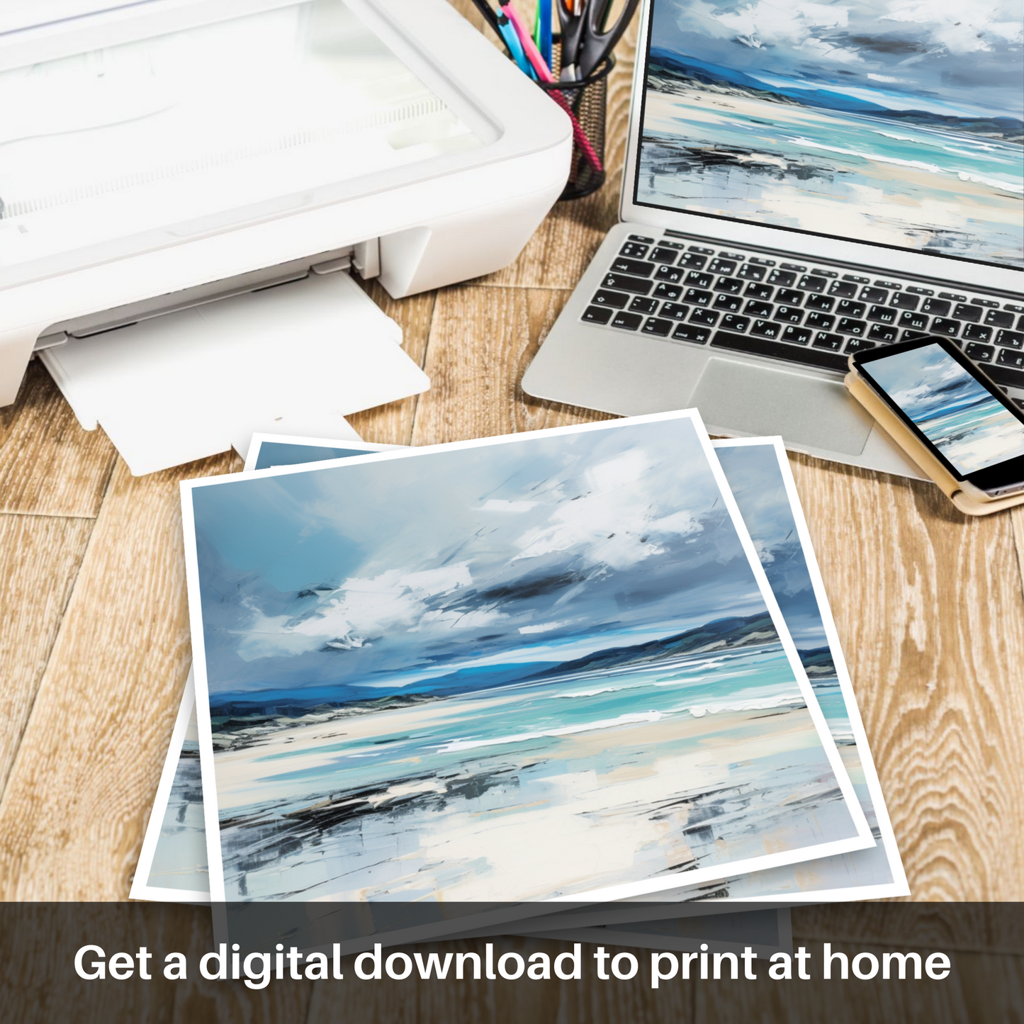 This print, part of our 'Scottish Beaches' collection, captures not just a place, but a moment of wild, natural drama that is both ephemeral and timeless. It speaks to the soul's longing for the raw beauty of nature, the power of the elements, and the solitude of the northern shores. Adorn your space with this piece and let the stirring emotions of Scotland's coast awaken your senses.
