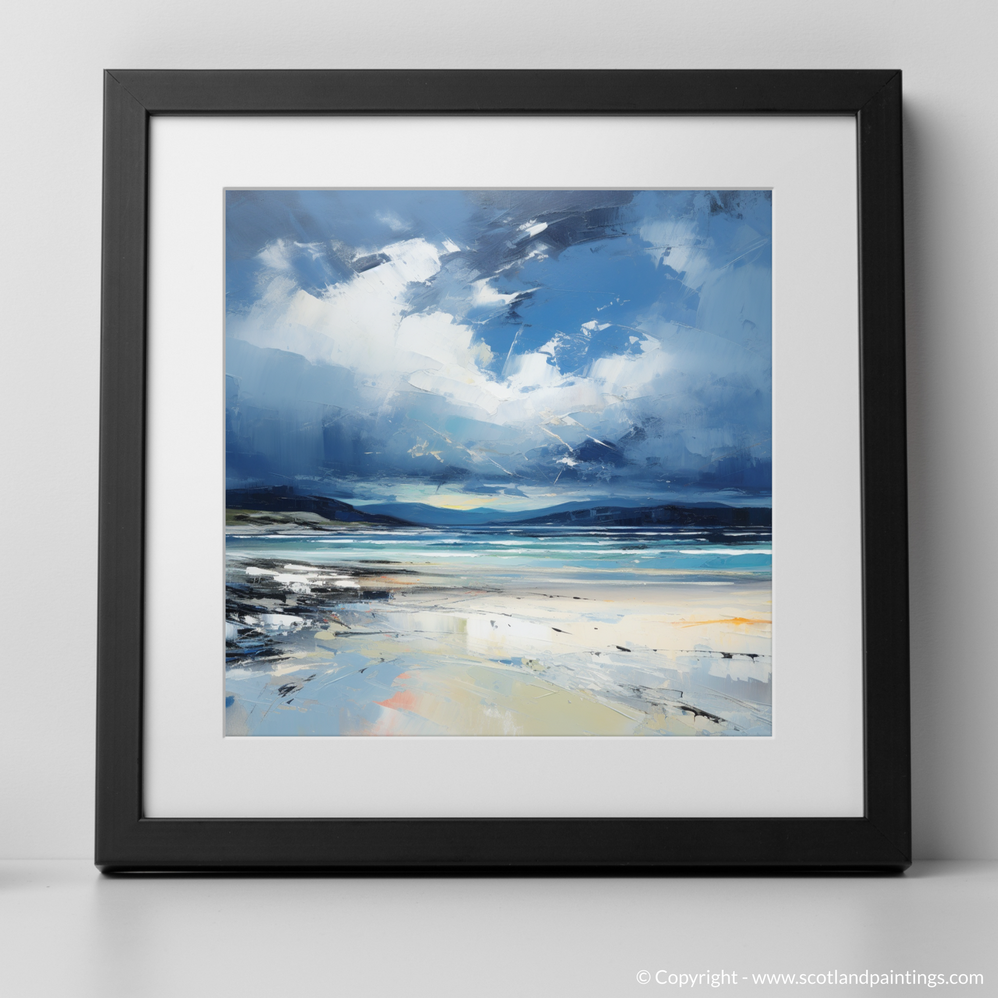 Camusdarach Beach, nestled on the west coast of the Scottish Highlands, is renowned for its breathtaking stretches of white sand set against a backdrop of swirling seas and majestic skies. Often an inspiration to artists and nature lovers alike, the beach is celebrated for its pristine beauty, ever-shifting light, and captivating vistas. The dramatic sky in these paintings faithfully echoes the real-life spectacle of stormy weather rolling across the landscape, offering viewers a taste of this enchanting locale's spirit and allure.
