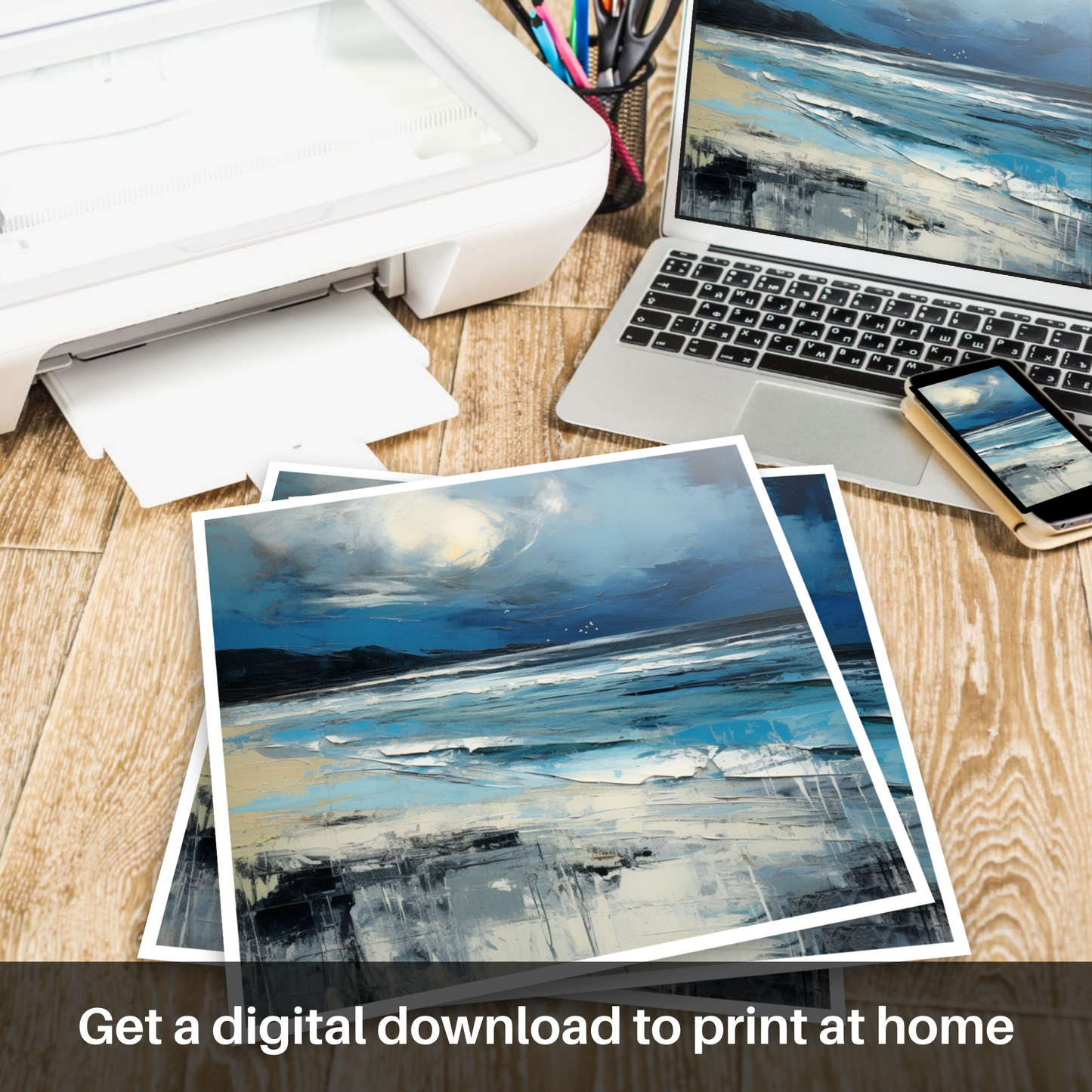 This piece from our 'Scottish Beaches' collection encapsulates the essence of a moment where the elements are in flux, offering a powerful visual experience that thrives on emotional intensity and the sheer force of nature. Bring the rugged allure of Scotland's coastline into your home, and let the imagination sail upon the wild Scottish seas whenever your gaze falls upon this stirring rendition of nature's tempestuous pageant.