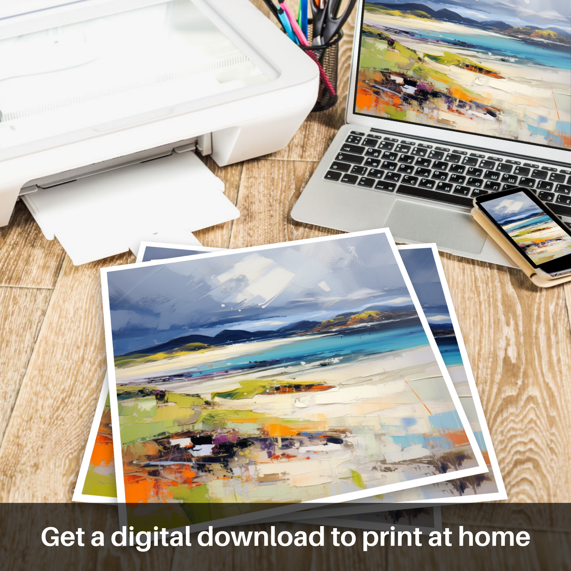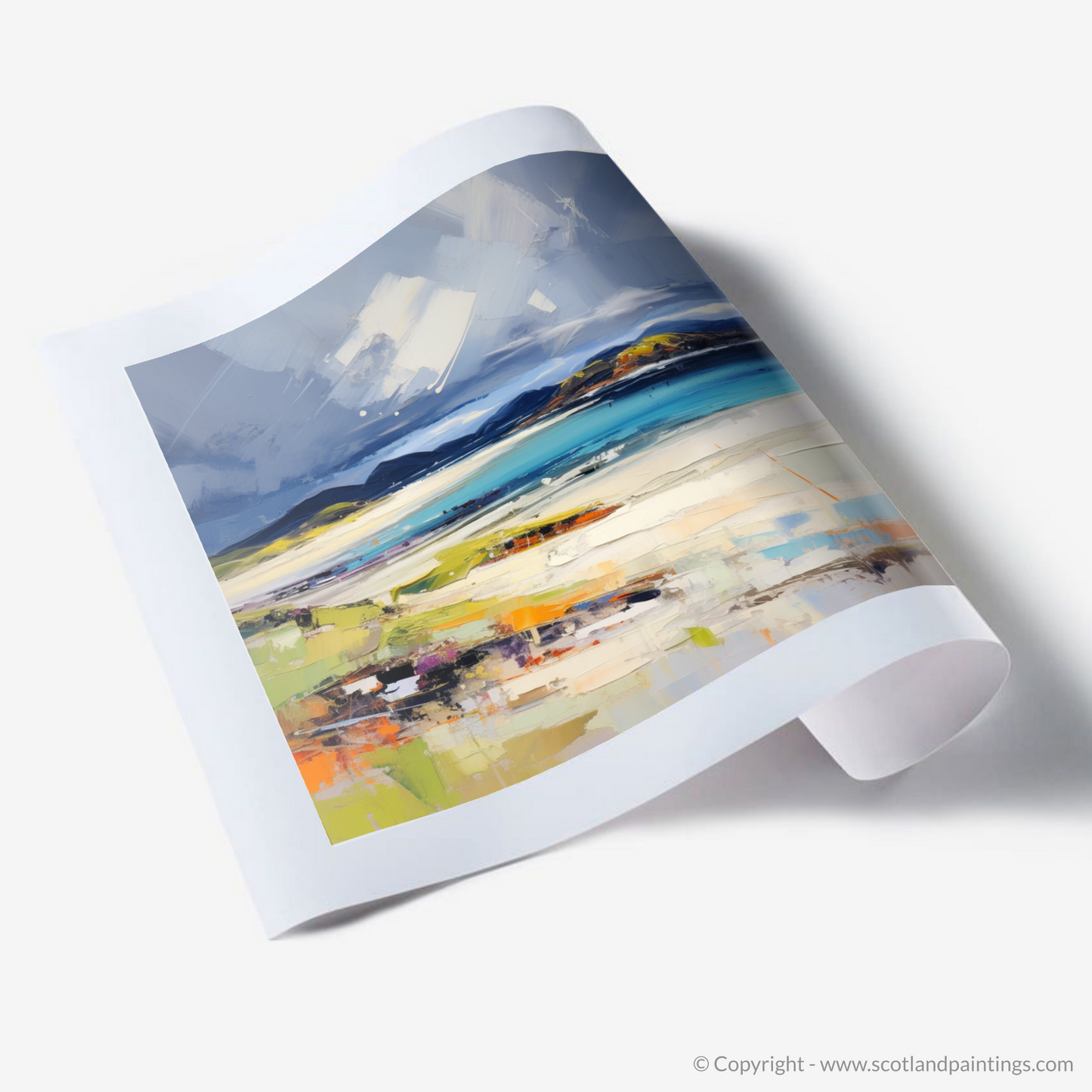 This captivating print offers more than just a picture—it is an invitation to contemplate the unpredictable beauty of nature and the emotional resonance of a landscape that continues to inspire awe and reflection. Whether as a homage to the wild Scottish beaches or as an emblem of expressive artistic interpretation, this piece promises to become a focal point that stirs the imagination in any space.