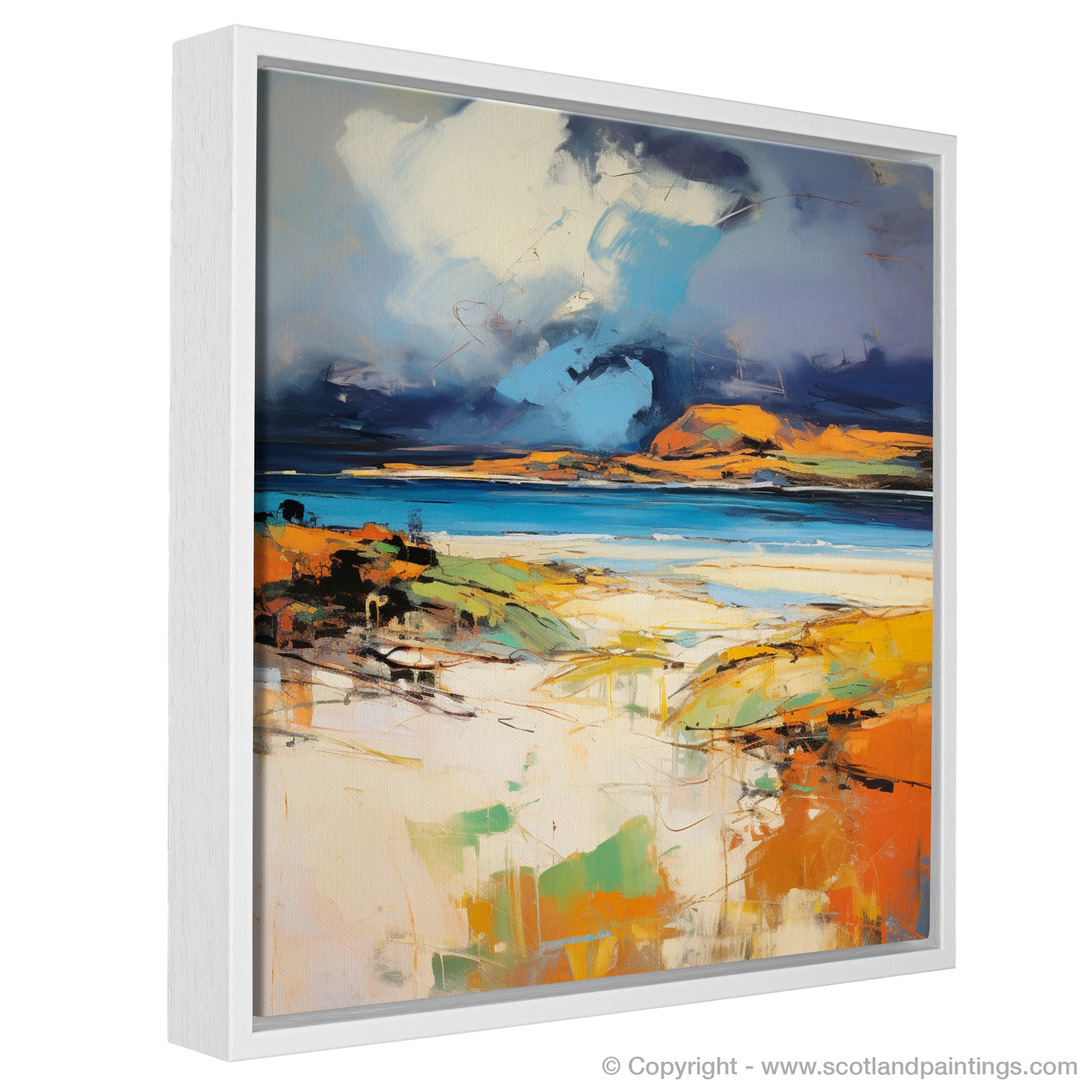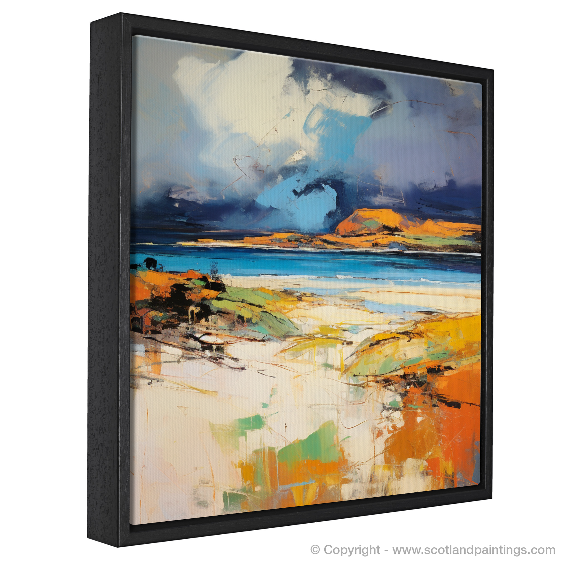 Experience the raw beauty and tumultuous weather of the Scottish coast with this evocative print inspired by Camusdarach Beach. Bold brushstrokes and a palette of contrasting hues capture the essence of a storm brooding over the sands and waters, evoking the wild spirit of nature that is ever-present in Scotland's landscape.