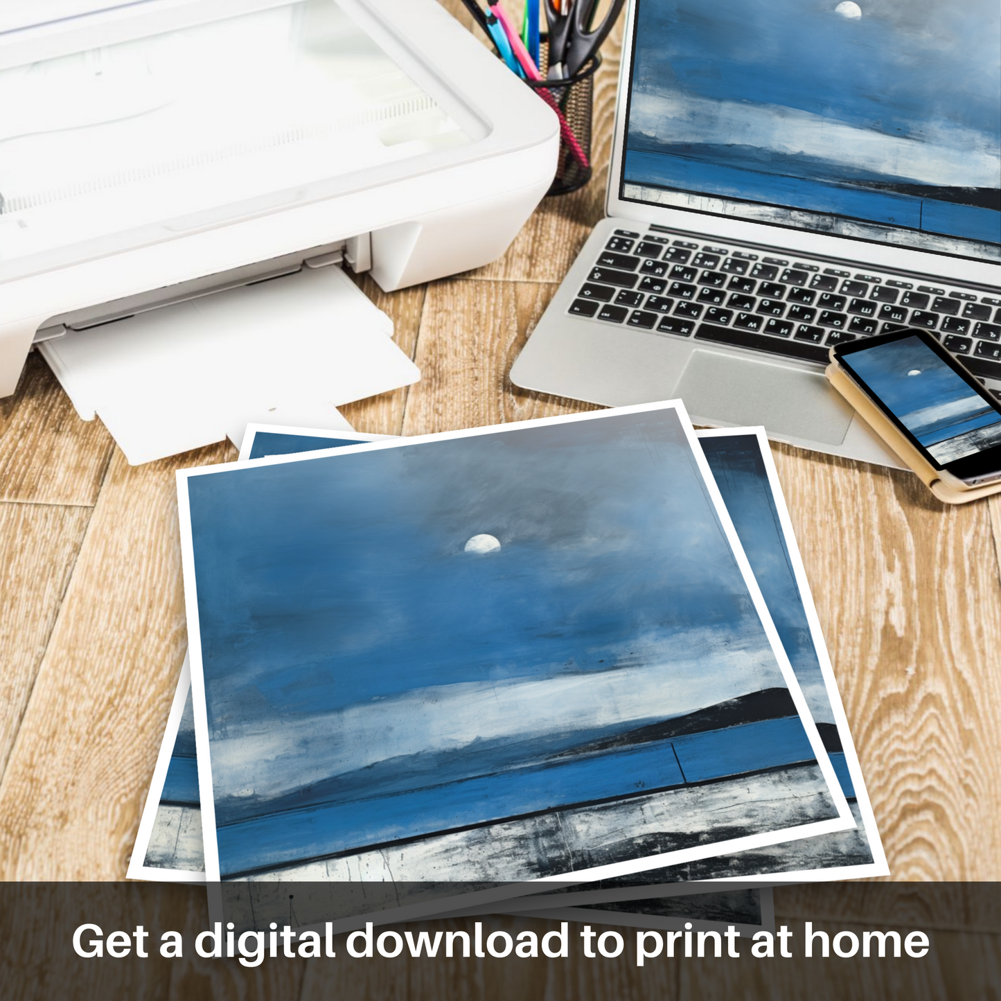 A solitary celestial orb pierces through the storm clouds, casting a milky glow upon the water's surface and adding to the complexity of the scene. The ethereal light softens the potential ferocity of the print, introducing a contemplative calm to the viewer's eye.