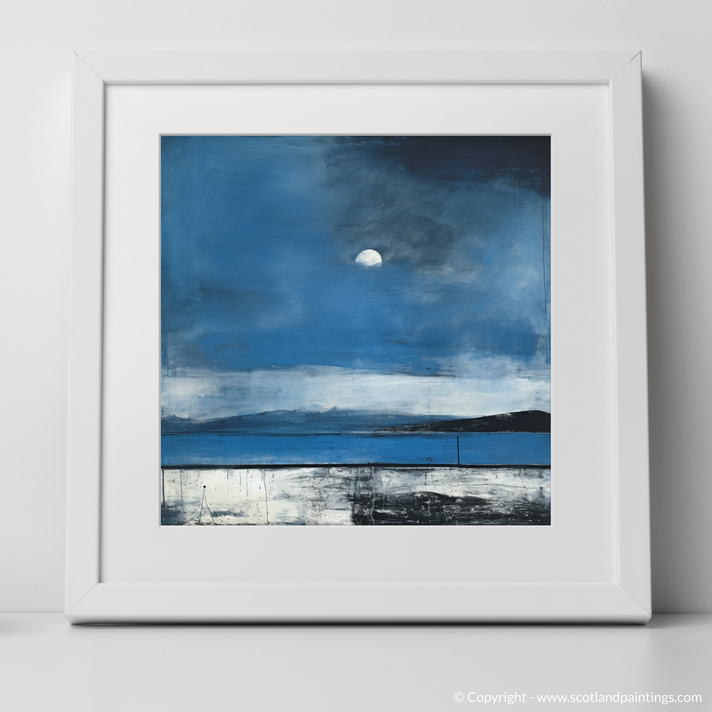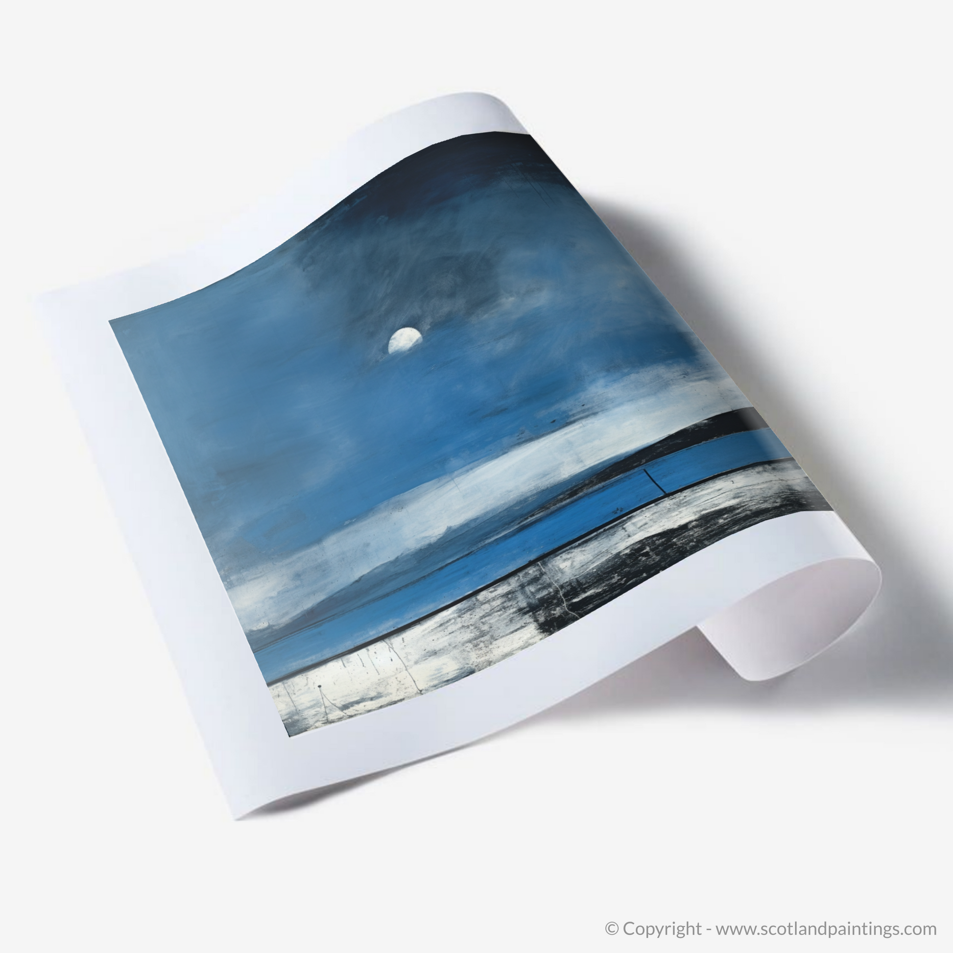 Summoning the wild spirit of Scotland's coast, this evocative print captures the untamed essence of Camusdarach Beach beneath a tempestuous sky. The brooding heavens, swathed in an array of tumultuous blues and greys, reflect the Abstract Expressionist movement's passion for conveying raw emotion through bold strokes and unrestrained forms.