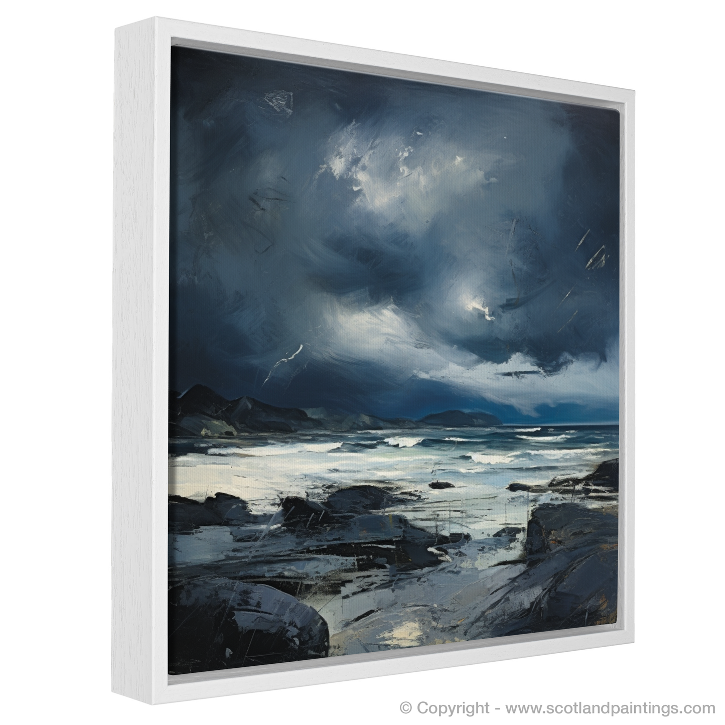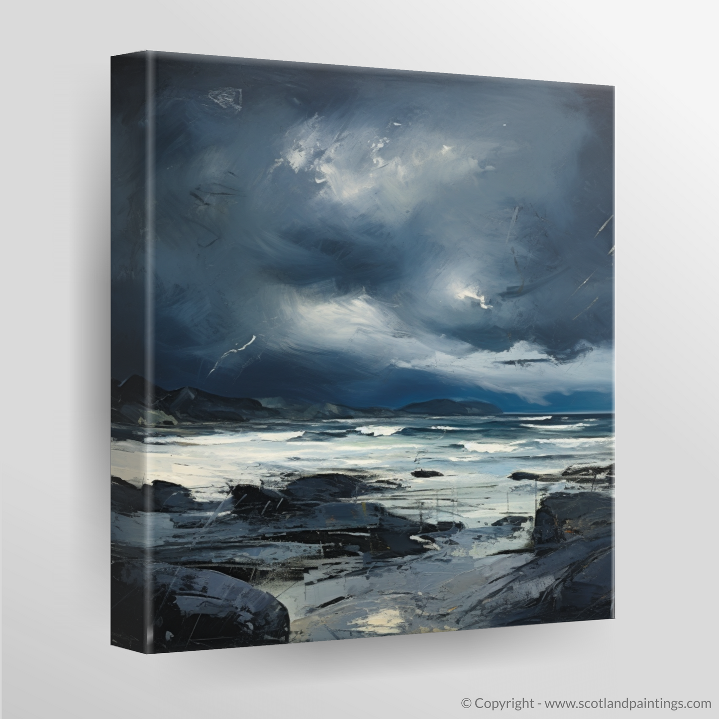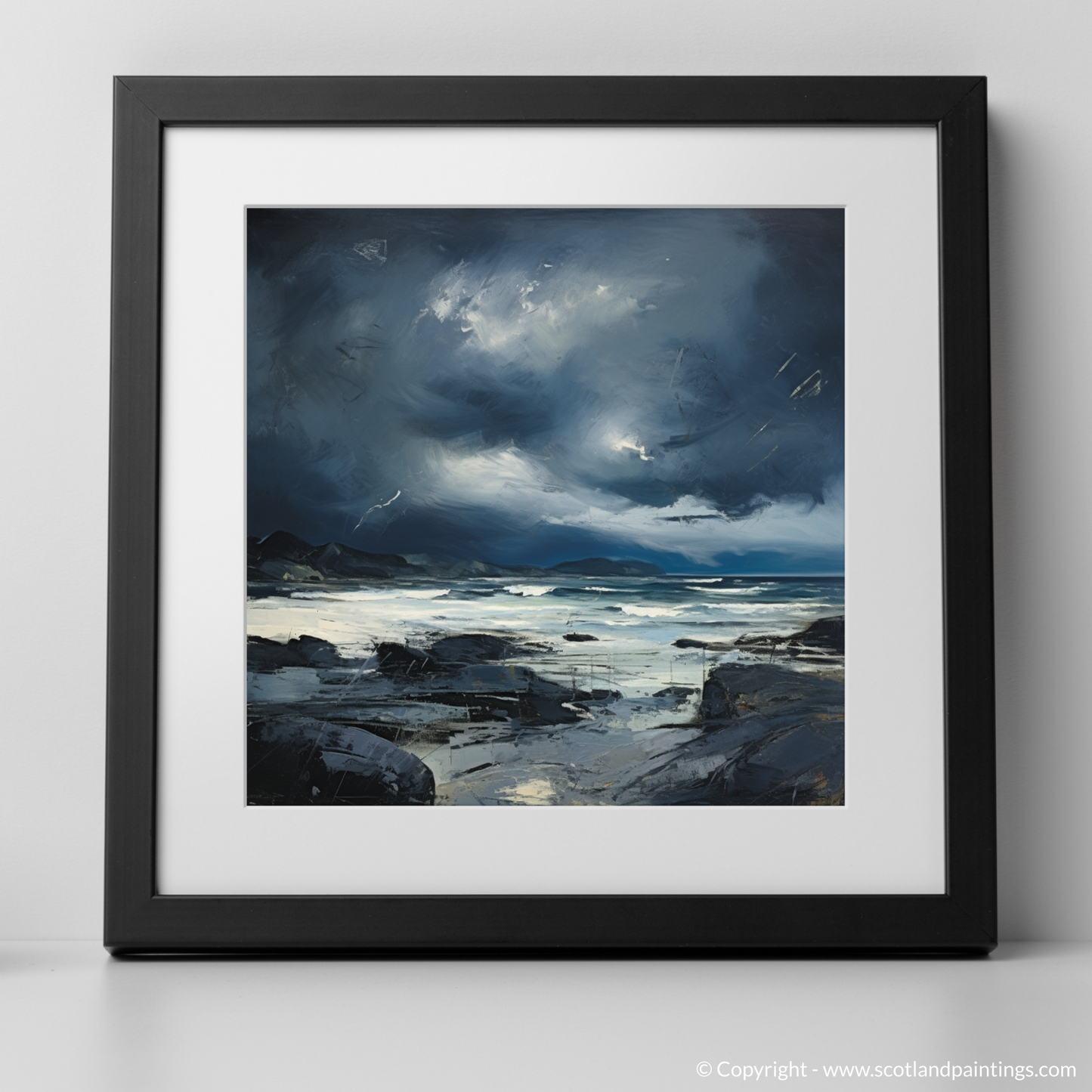 Immerse yourself in the tempestuous beauty of Scotland's shores with this evocative print. The piece perfectly captures the raw emotion and dramatic ambiance of Camusdarach Beach under a brooding, stormy sky, a spectacle that few can resist. The vivacious strokes of the abstract expressionist style swirl across the canvas, encapsulating both the chaos of the elements and the profound serenity that can be found within it.