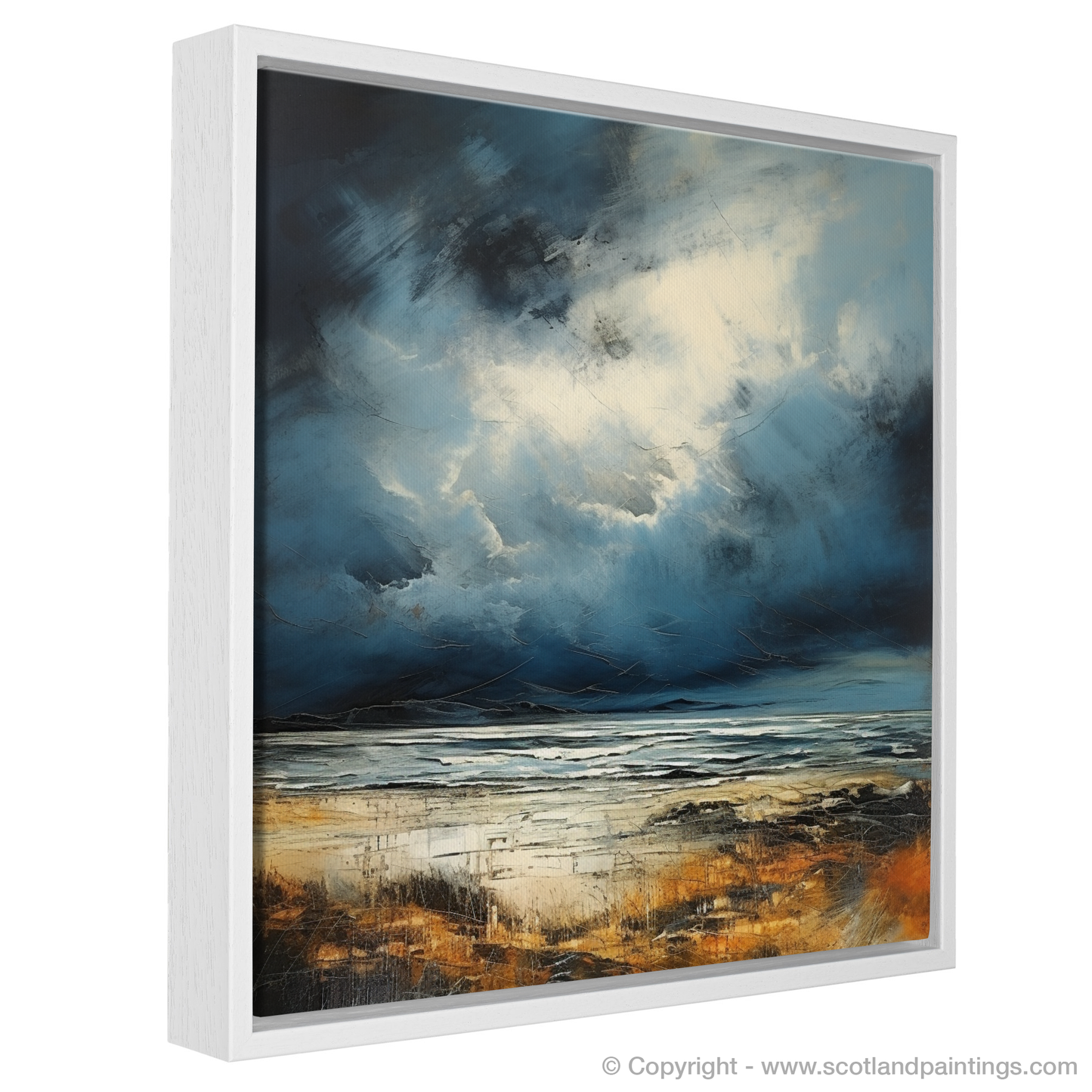 Summoning the tumultuous spirit of Camusdarach Beach, this evocative print captures the raw essence of a Scottish shoreline embroiled in the midst of a storm's grasp. The piece pulsates with the dramatic energy of Abstract Expressionism, translating the powerful motion of the elements into a visual language that is both intense and poetic.