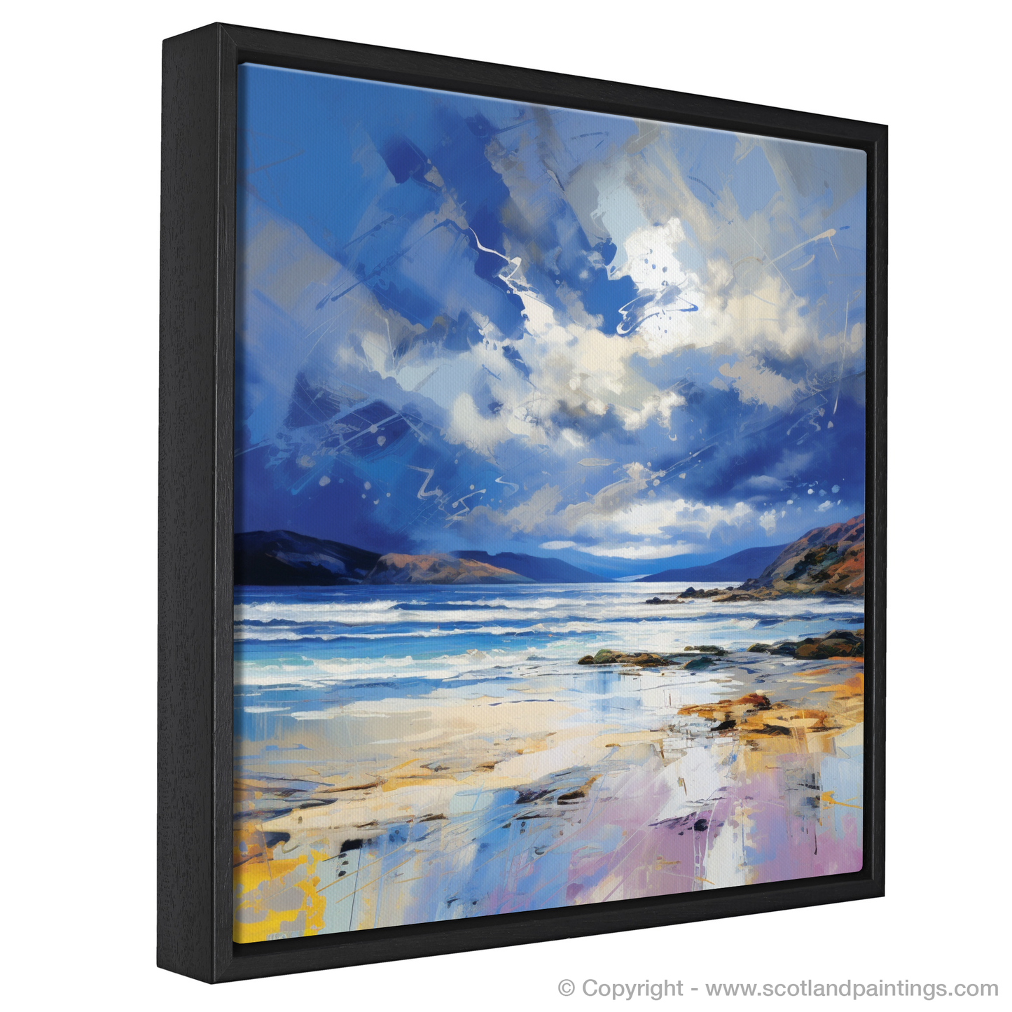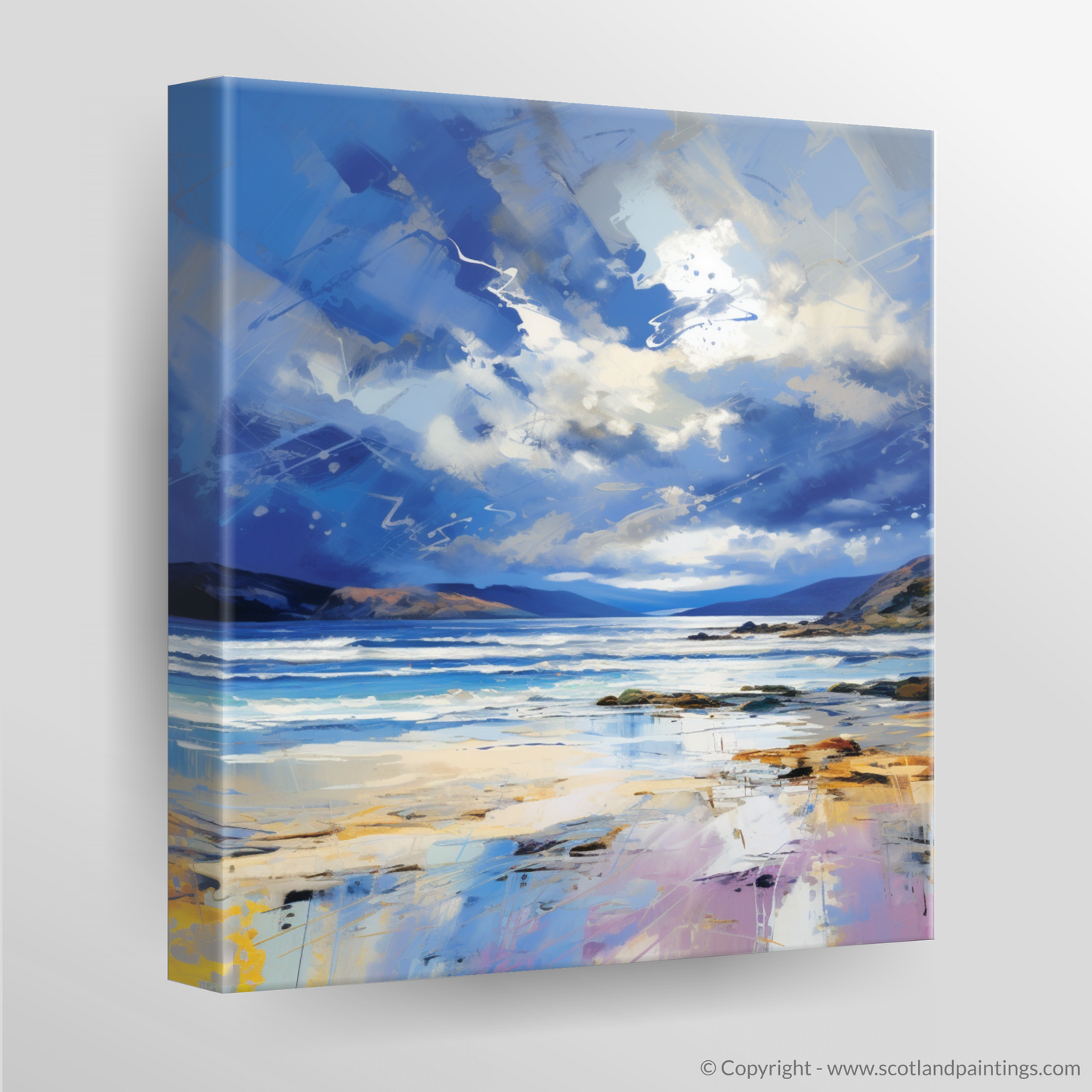 This piece, an integral part of our 'Scottish Beaches' collection, doesn't merely capture the scene; it transports you. It is a poetic interpretation that allows viewers to feel the wind's howl and the sea's roar and to taste the salt in the air, all from the comfort of their own surroundings.