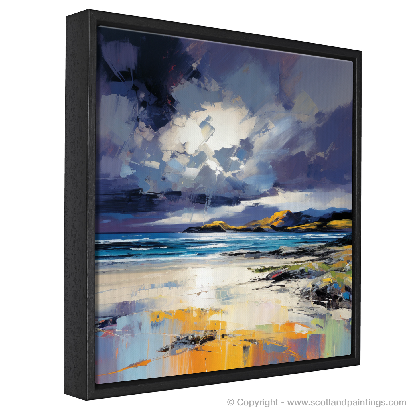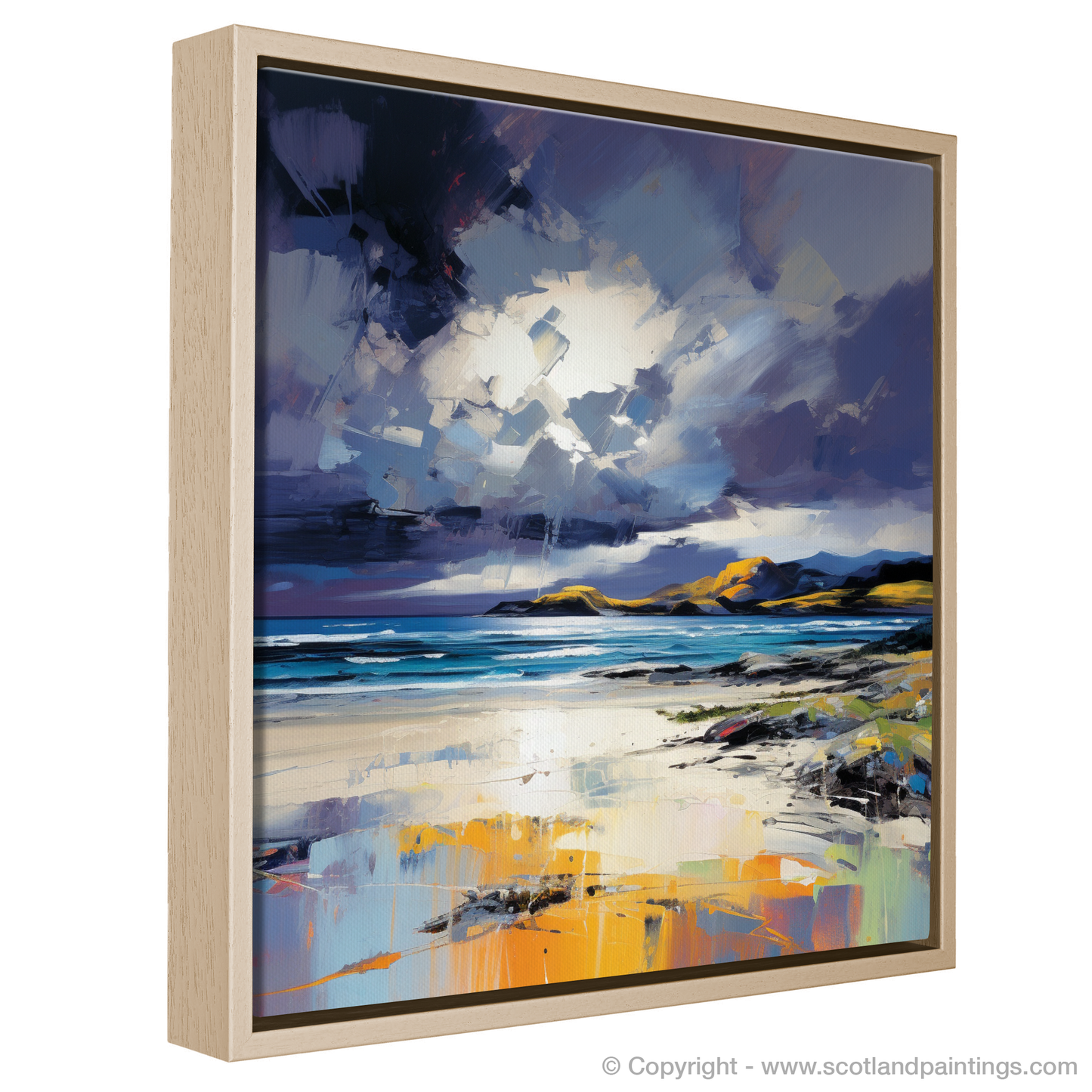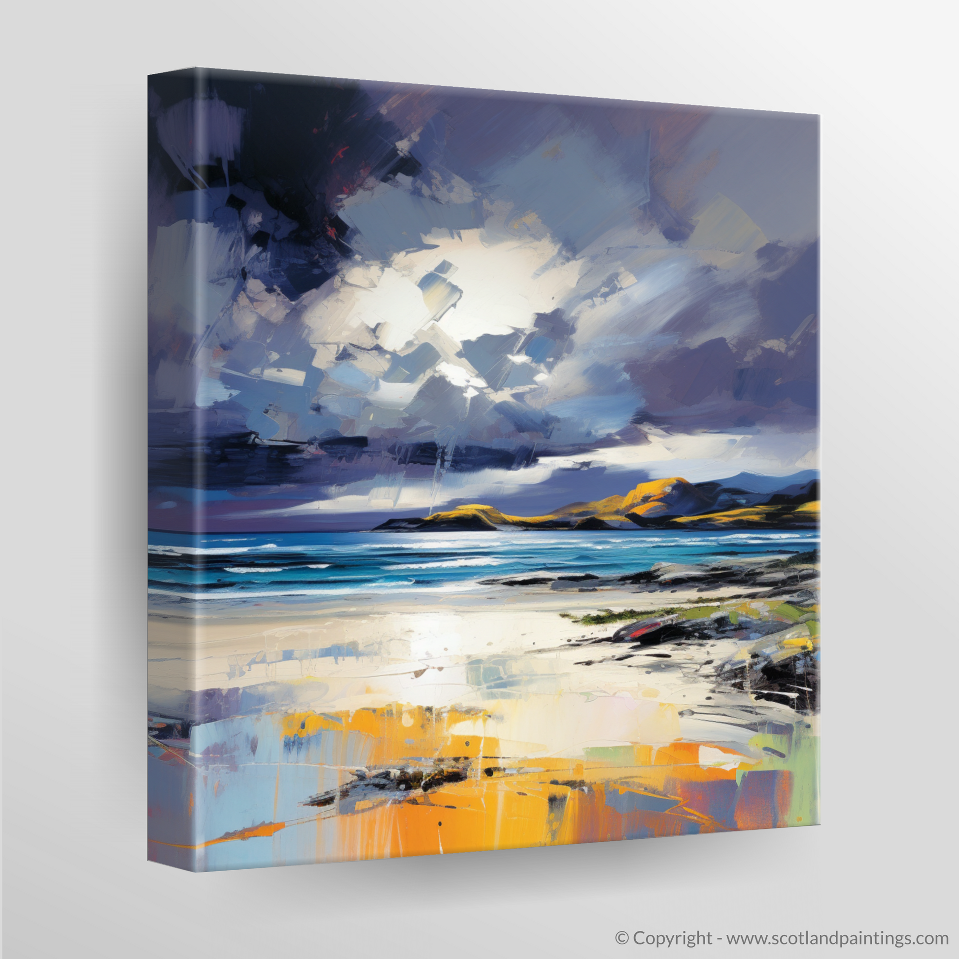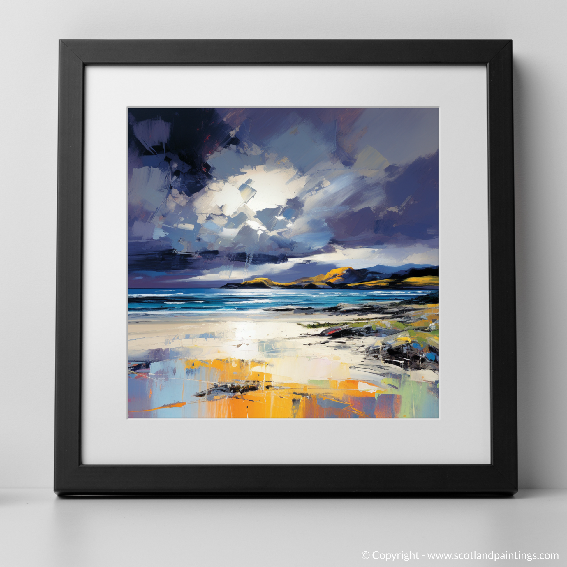 Immerse yourself in the dramatic essence of Scotland's natural beauty with this evocative abstract print inspired by the tempestuous skies and ever-changing waters of Camusdarach Beach. Capturing the raw and rugged landscape, this piece bursts with the intensity of a stormy Scottish sky, expertly conveyed through a symphony of brushstrokes that dance across the canvas in moody hues of grey, white, and deep blue.