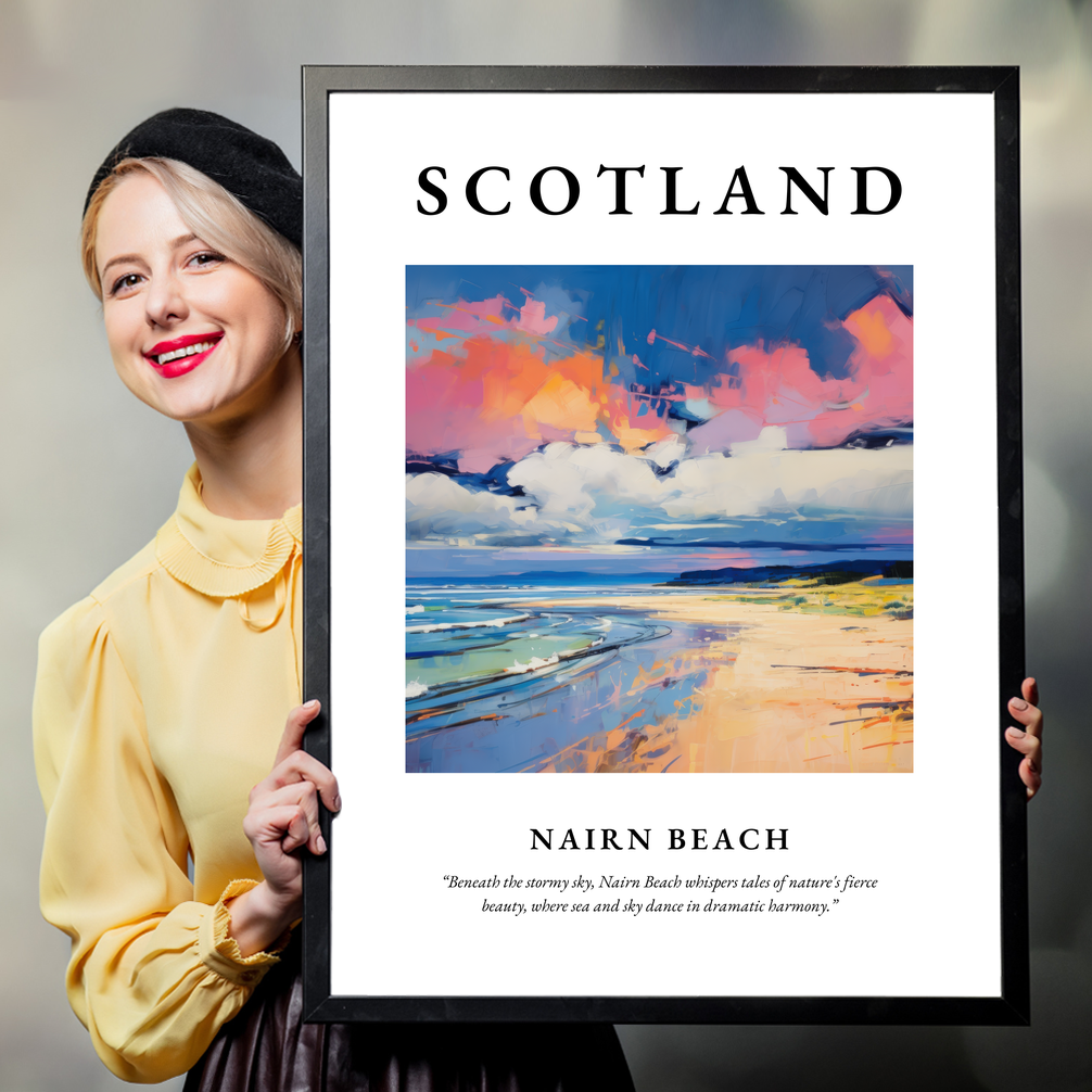 Whether you've strolled along its shores or simply dream of it, this poster is an invitation to relive the memories or enjoy the fantasy. Nairn Beach is a place where history, nature, and folklore intertwine, offering endless stories and inspiration. Let this vivid artwork transport you to Scotland’s captivating coasts and feel the whisper of the waves and wind wherever you choose to display it.