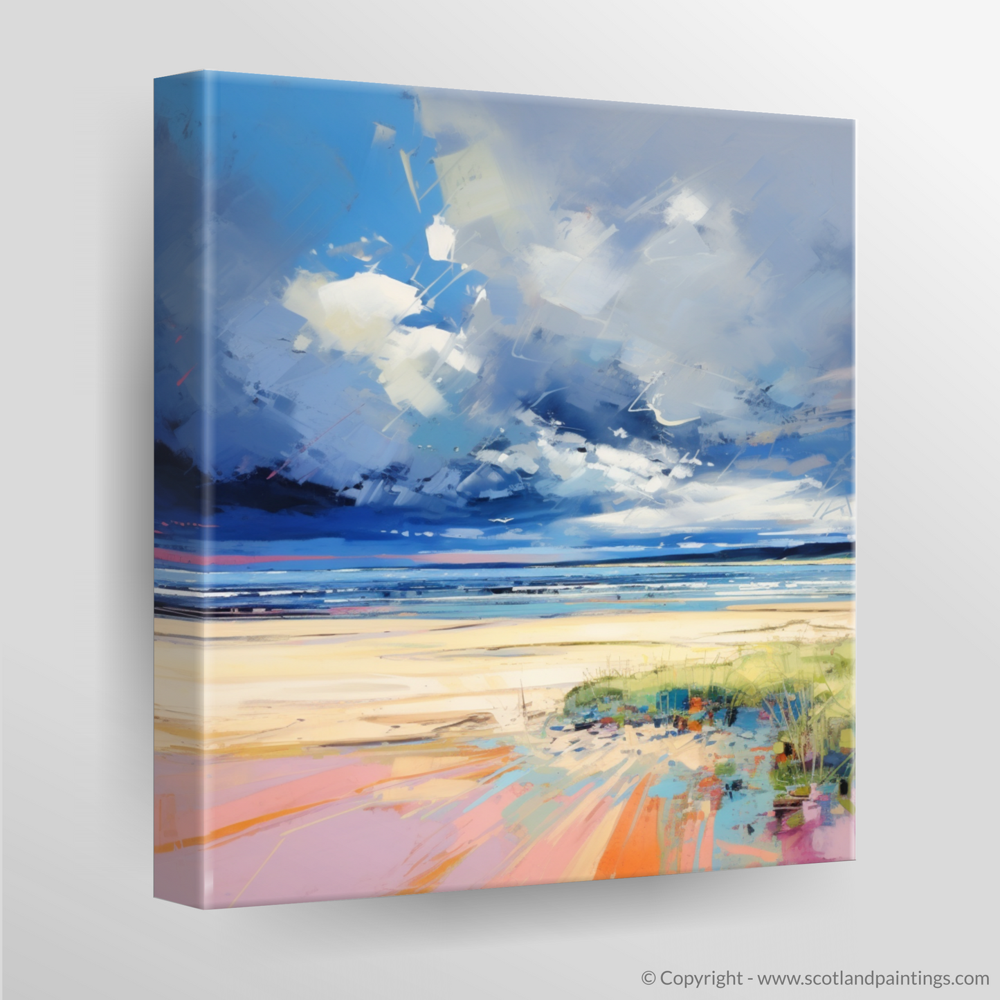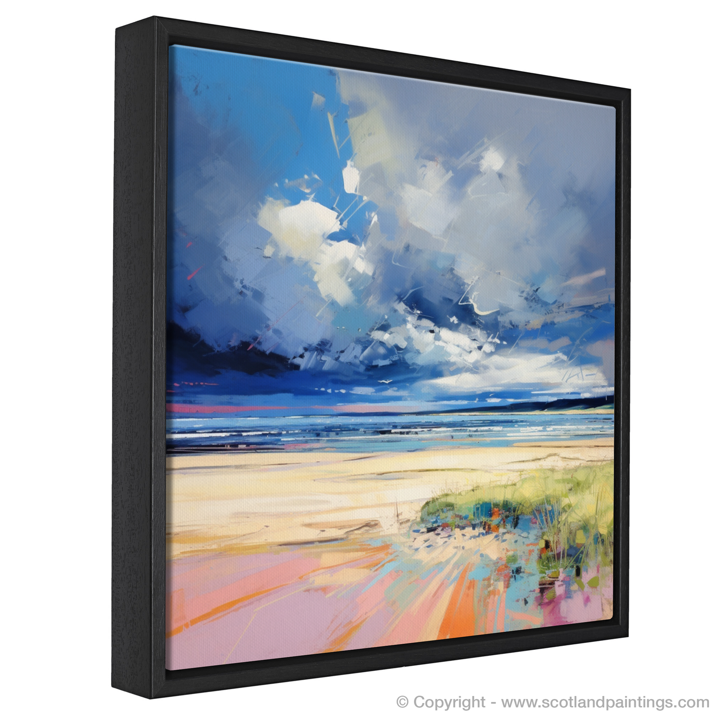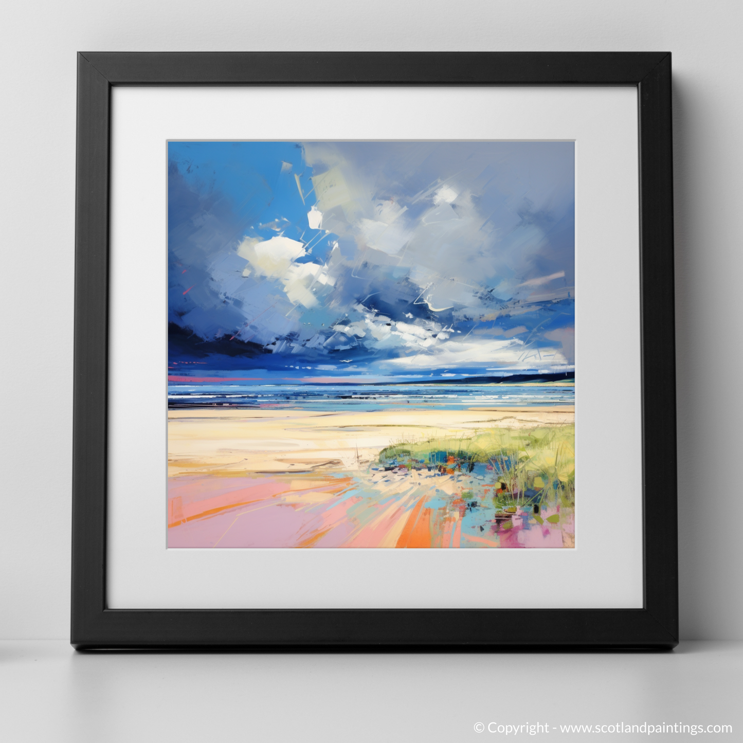 This piece, an homage to the Scottish seascape, effortlessly conveys the juxtaposition of calm and chaos unique to coastal storms. It serves as a spirited testament to the beauty found in nature's caprice, making it a captivating addition to any collection, particularly for aficionados of Scottish landscapes and lovers of the bold, expressive techniques characteristic of Pop Art. Bring the majesty of Nairn Beach into your home or office and allow its energy to transform your wall into a window of wild Scottish splendour.