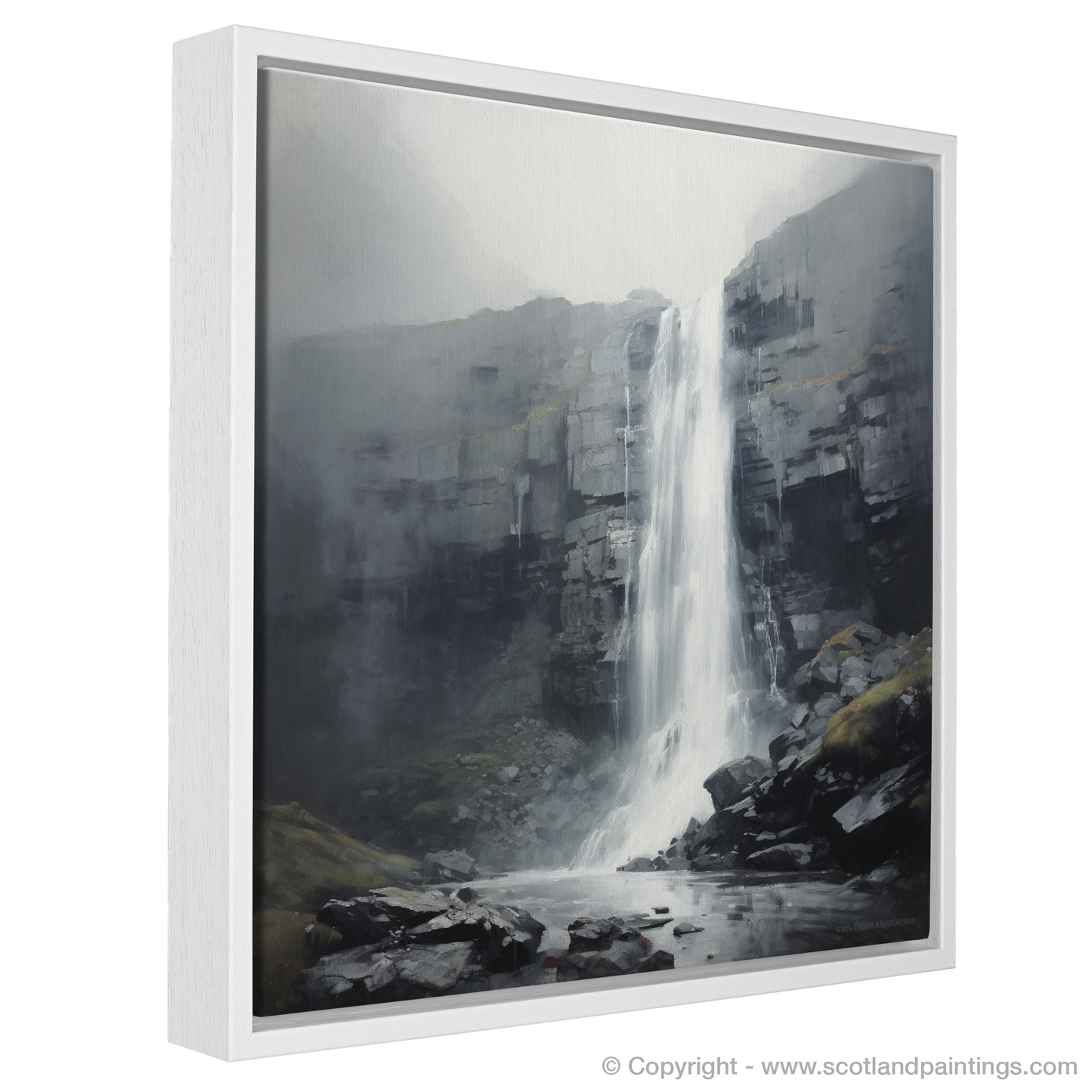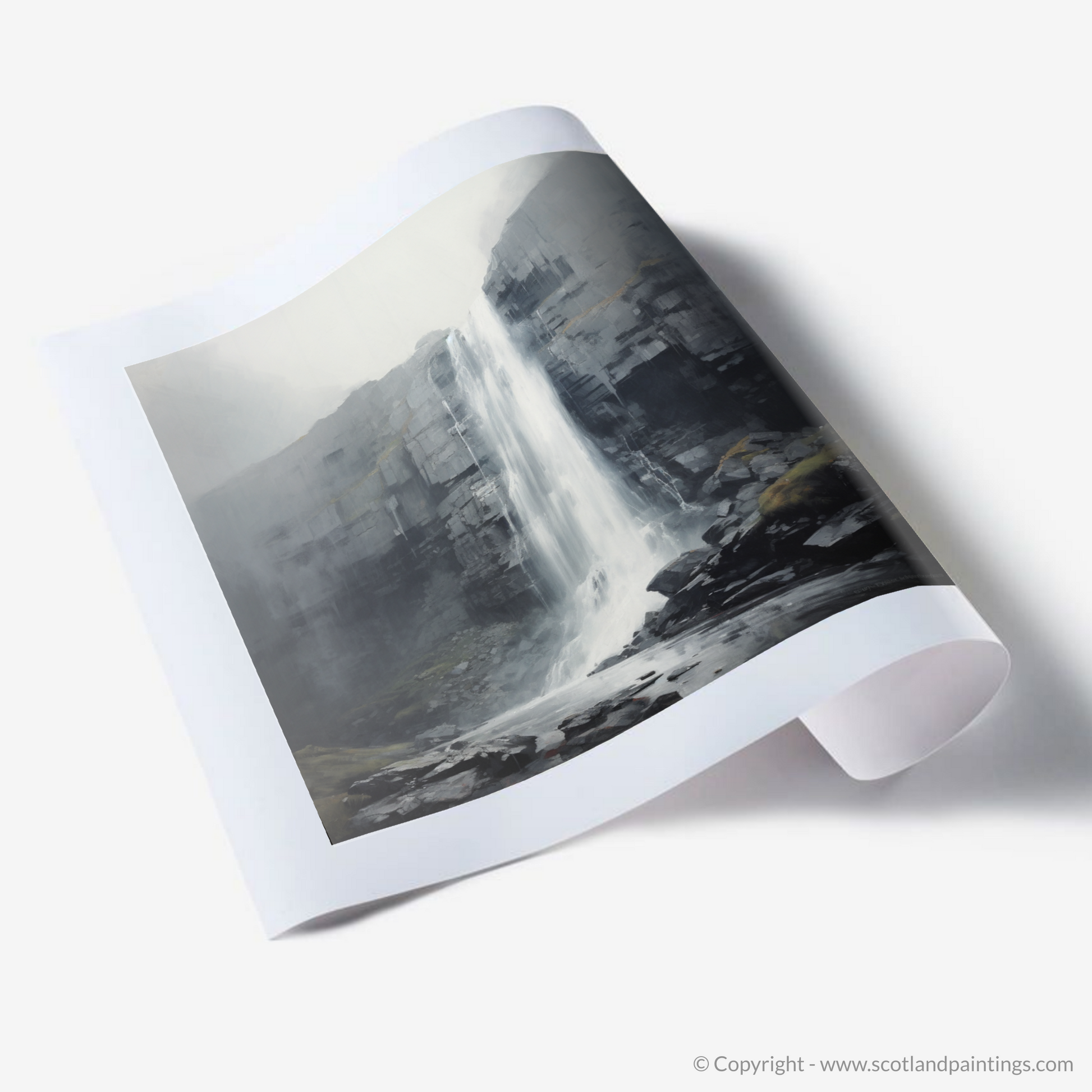 Embrace the serene beauty of the Scottish highlands with our minimalist tribute to the majestic Mealt Falls on the Isle of Skye. This striking print captures the raw essence of the cascade, stripped to its purest form through a monochromatic palette punctuated with shades of grey and subtle highlights that mimic the play of light through the mist.