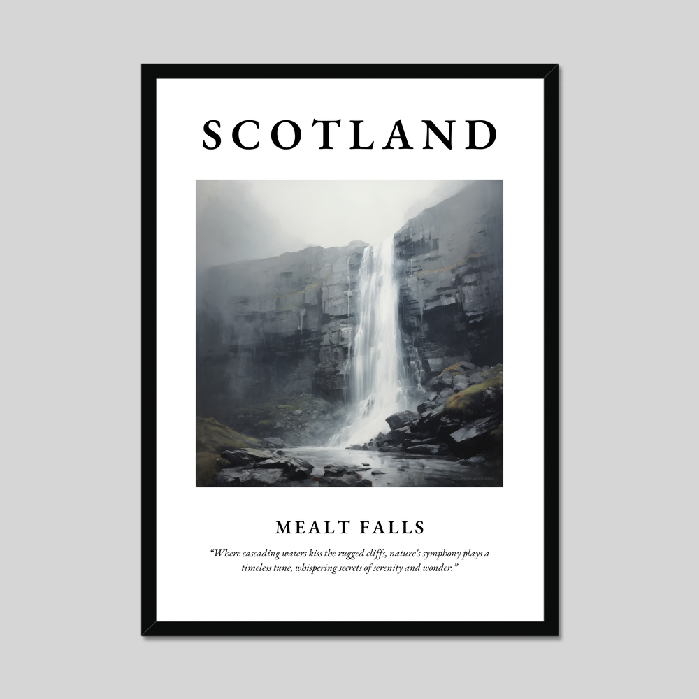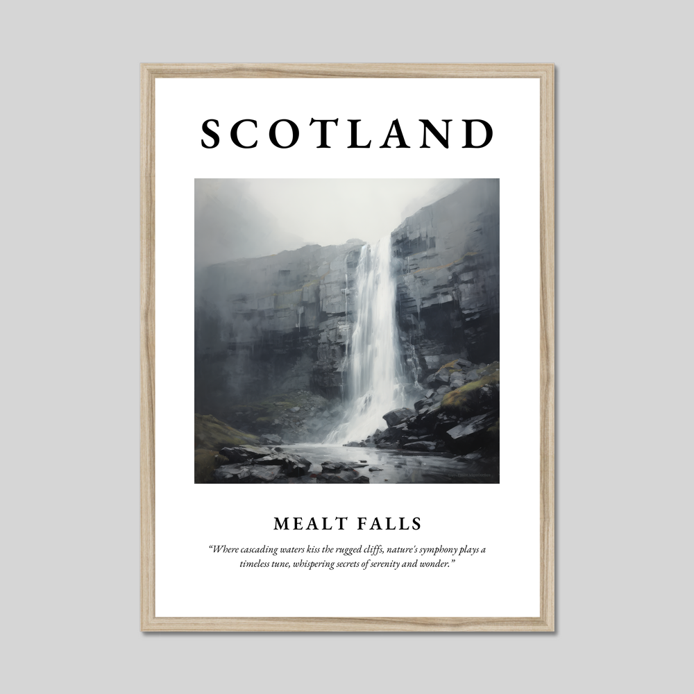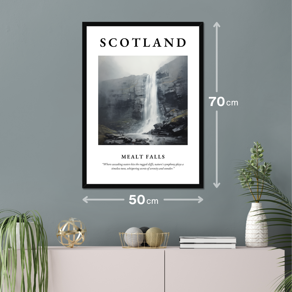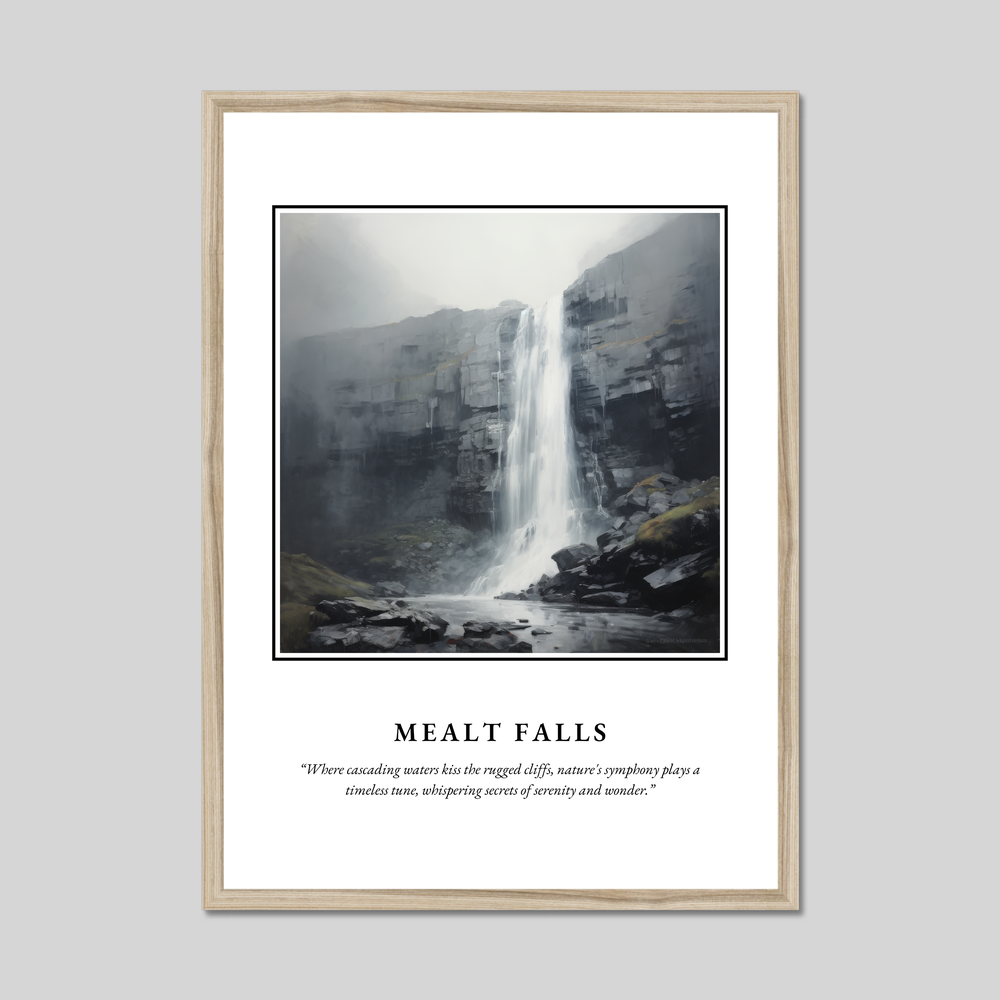Transform your space with our stunning Mealt Falls framed poster, a captivating piece from our "Scottish Waterfalls" collection. Measuring an impressive 50cm x 70cm, this artwork is designed to make a statement without breaking the bank. Available in sleek black, elegant white, or a charming natural wood-effect frame, it effortlessly complements a variety of interiors.