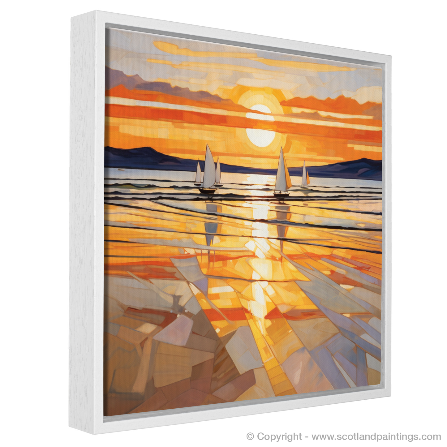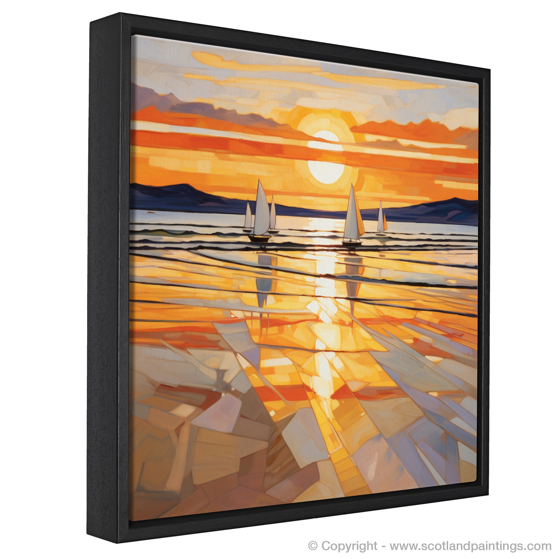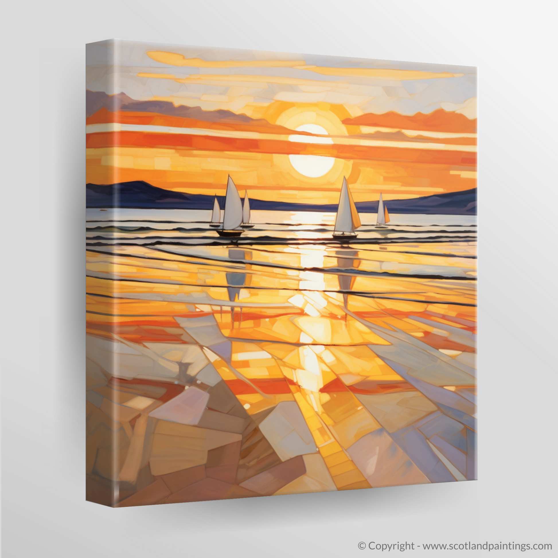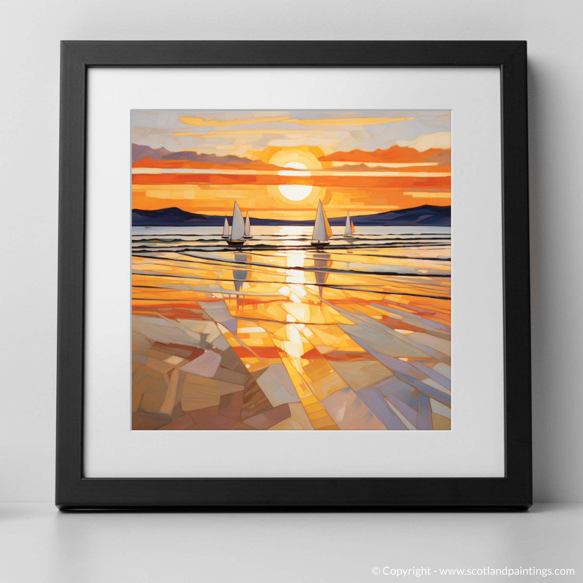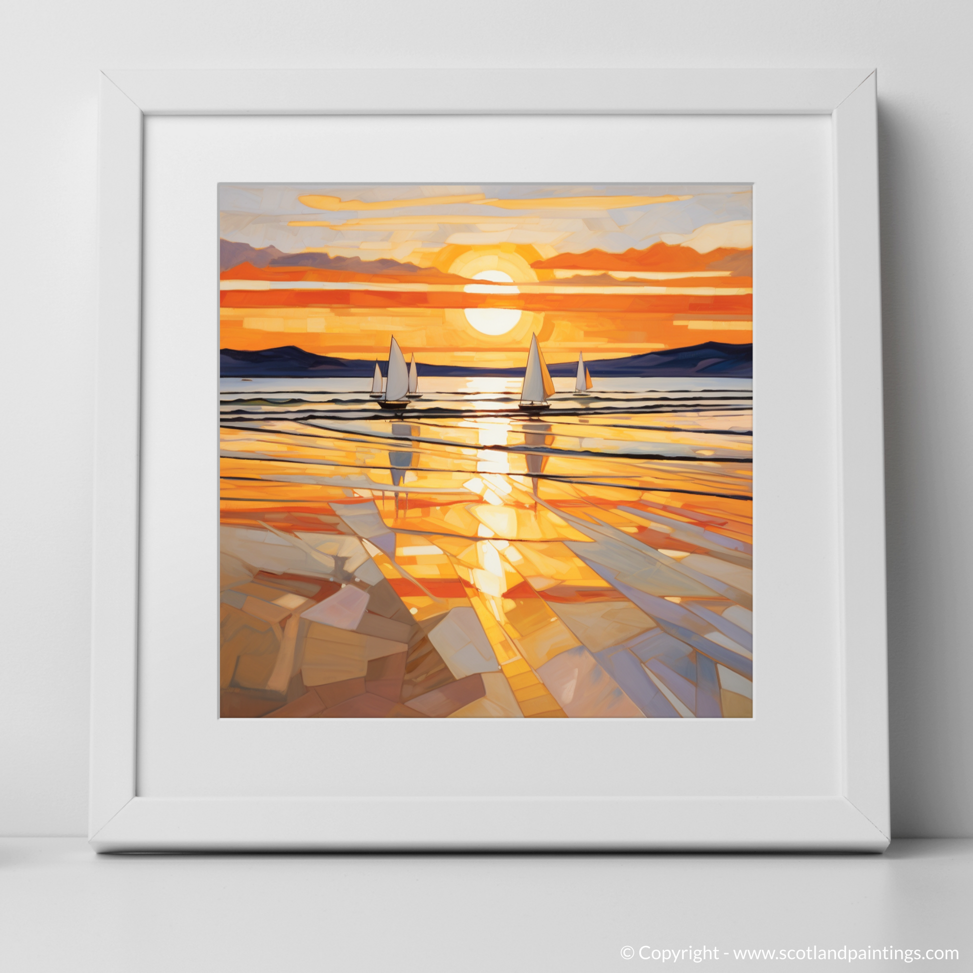 Captured in a symphony of geometric splendour, this evocative print immortalises the tranquil beauty of Nairn Beach as the day's final light bathes the world in a warm, golden haze. Angular shapes tessellate to create an abstract vista, where land, sea, and sky converge in a mosaic of burnished oranges, fiery reds, and cool blues. Gentle gradients within each segmented form suggest the ebb and flow of the tide, whilst the sun, a beacon of pure light, casts its reflection across the water's surface, fragmented yet mesmerising.