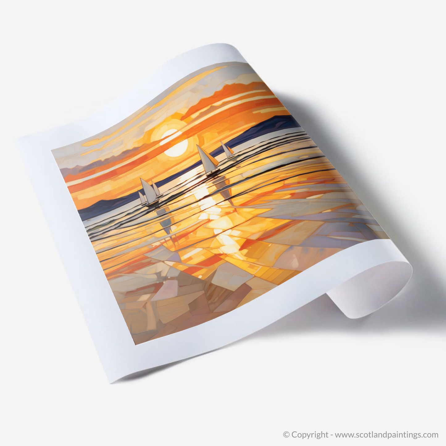 Basking in the glory of the sunset, this print evokes emotion through its geometric abstraction, inviting viewers to experience Scotland's coastal grandeur through a cubist lens. Whether hung in a space that seeks calm or amongst a gallery of modern artistry, this piece is sure to captivate and inspire discussion, as it showcases the unique confluence of nature's beauty and avant-garde artistic expression.
