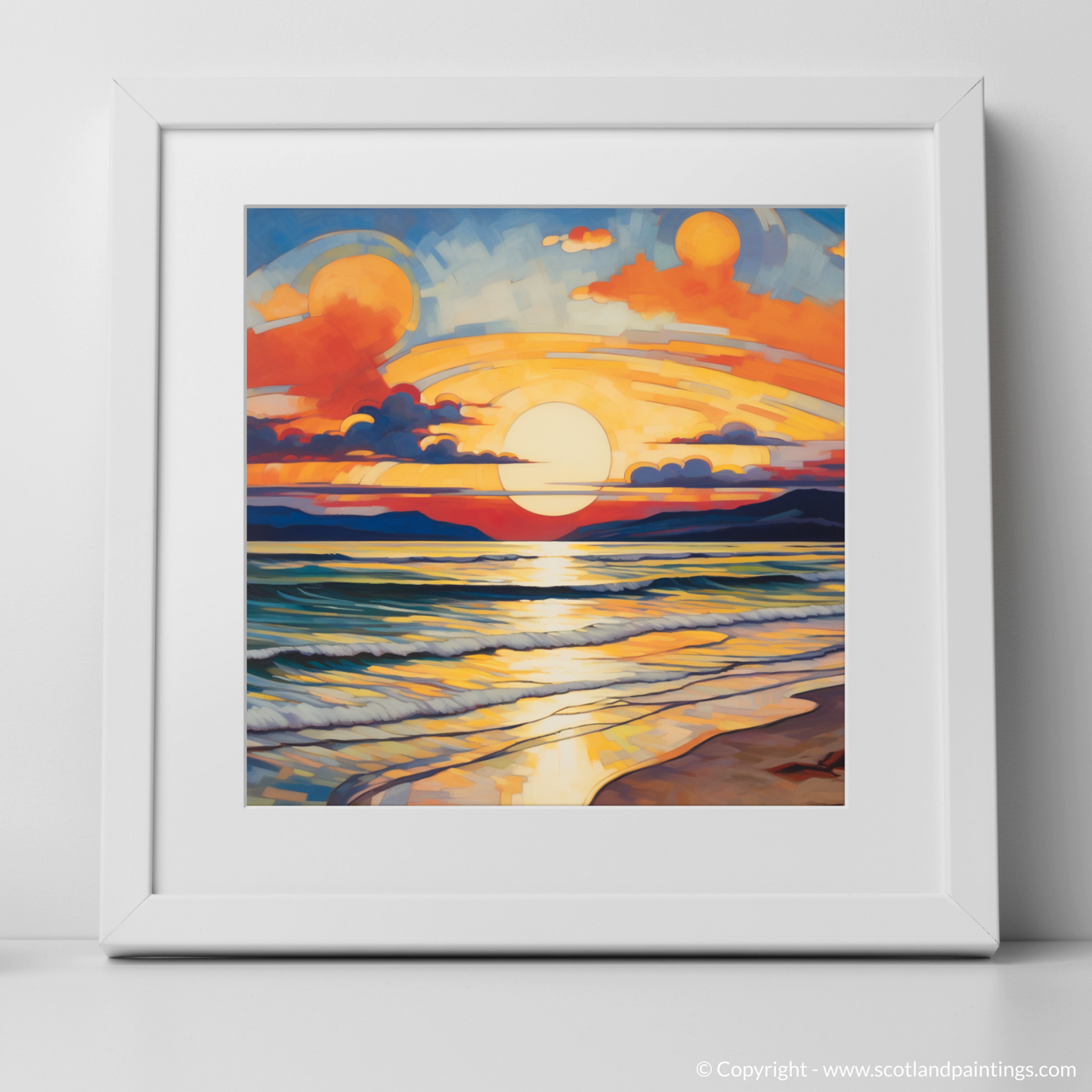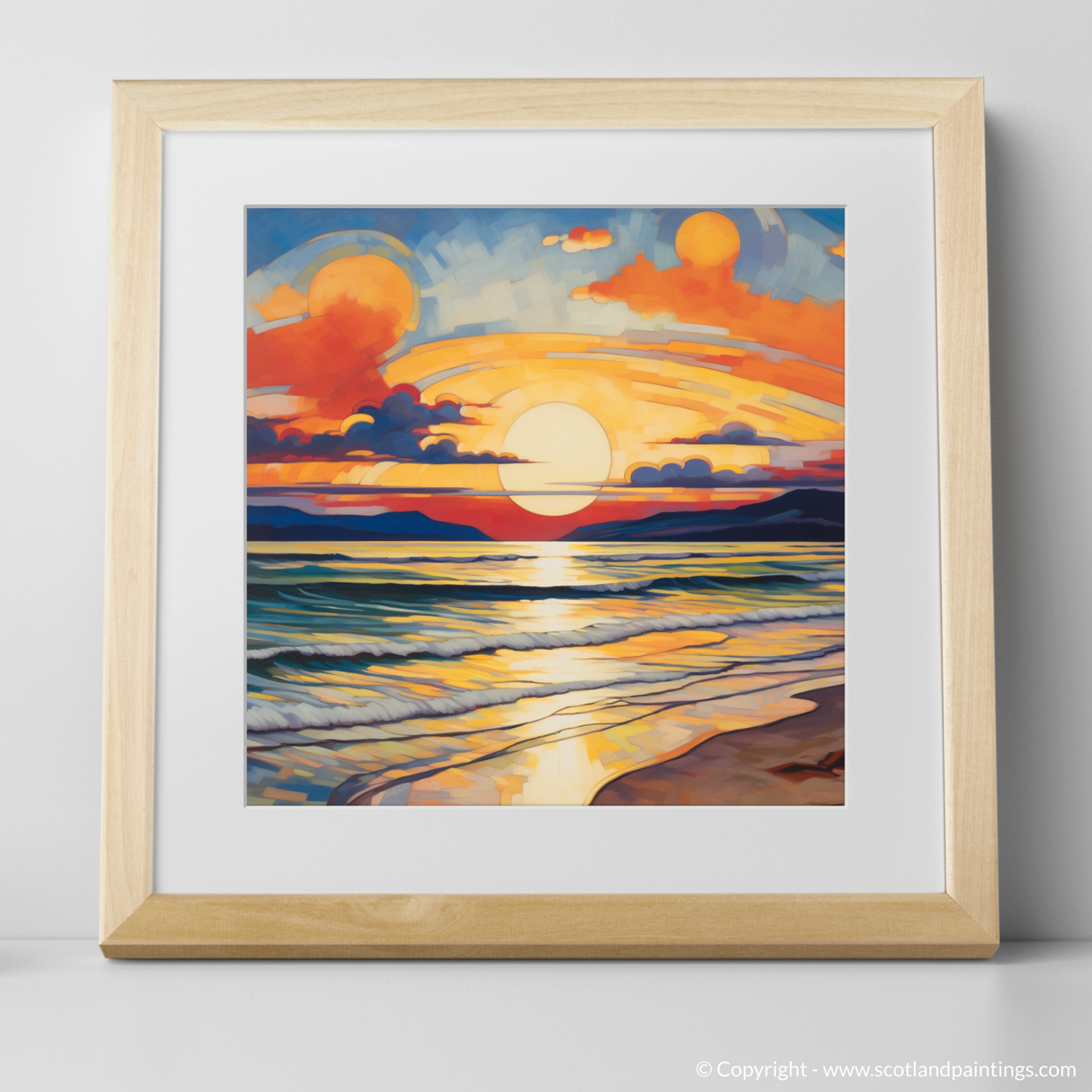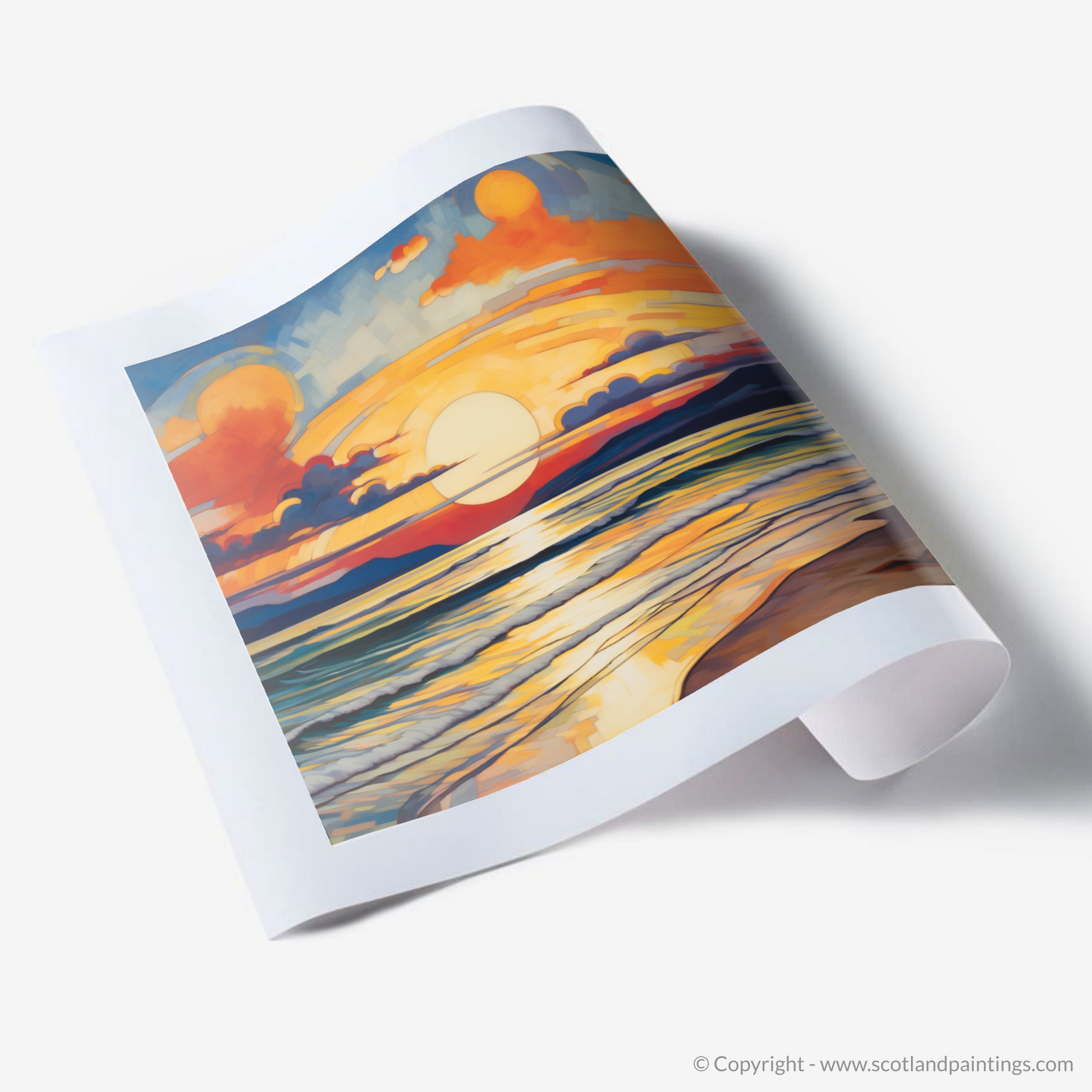 This print, from the 'Scottish Beaches' collection, offers an avant-garde representation that will not only captivate and intrigue but also infuse any space with the serene yet dynamic essence of Nairn Beach at one of its most visually stunning times of day. Ideal for those who appreciate the convergence of nature's beauty with the daring abstraction of Cubist art.
