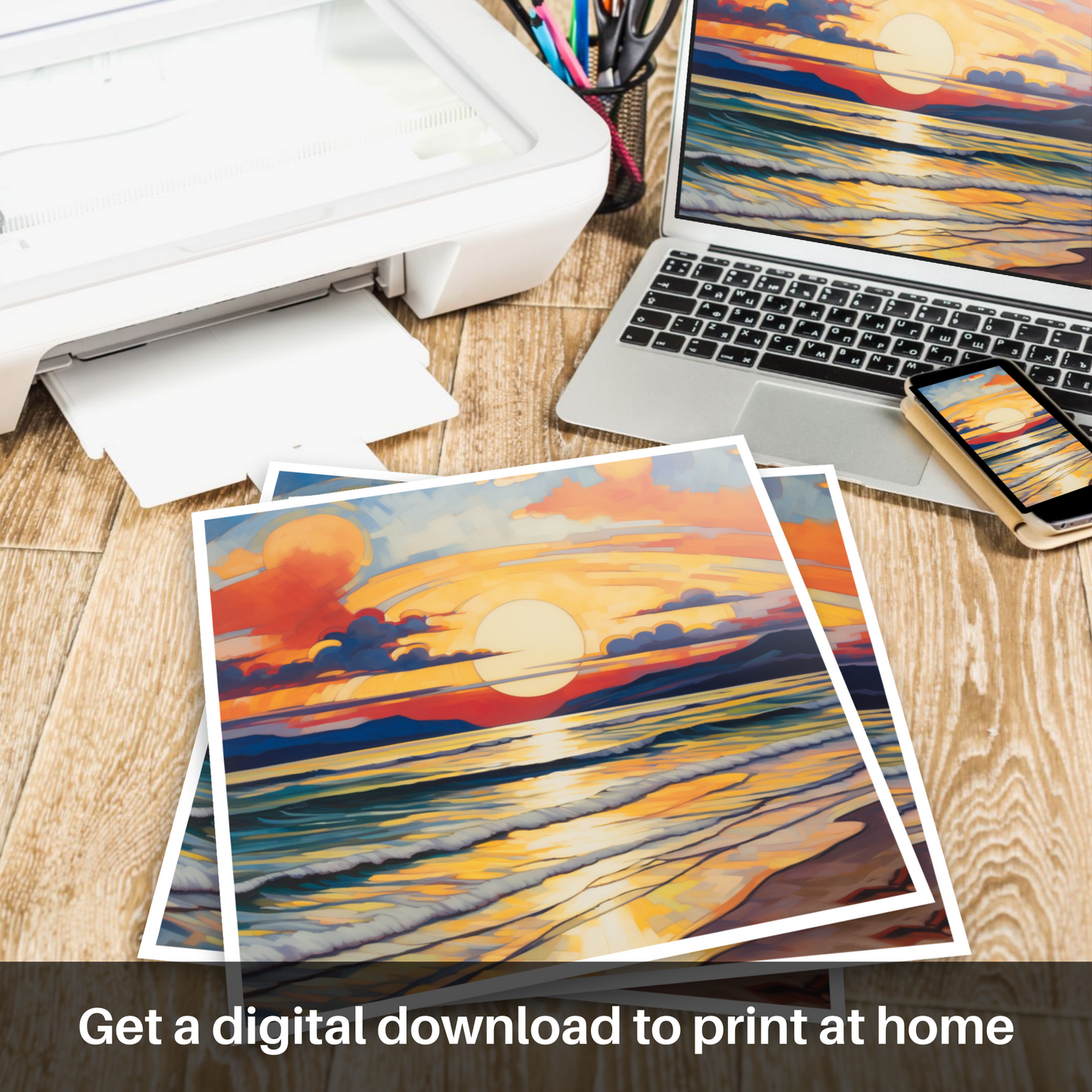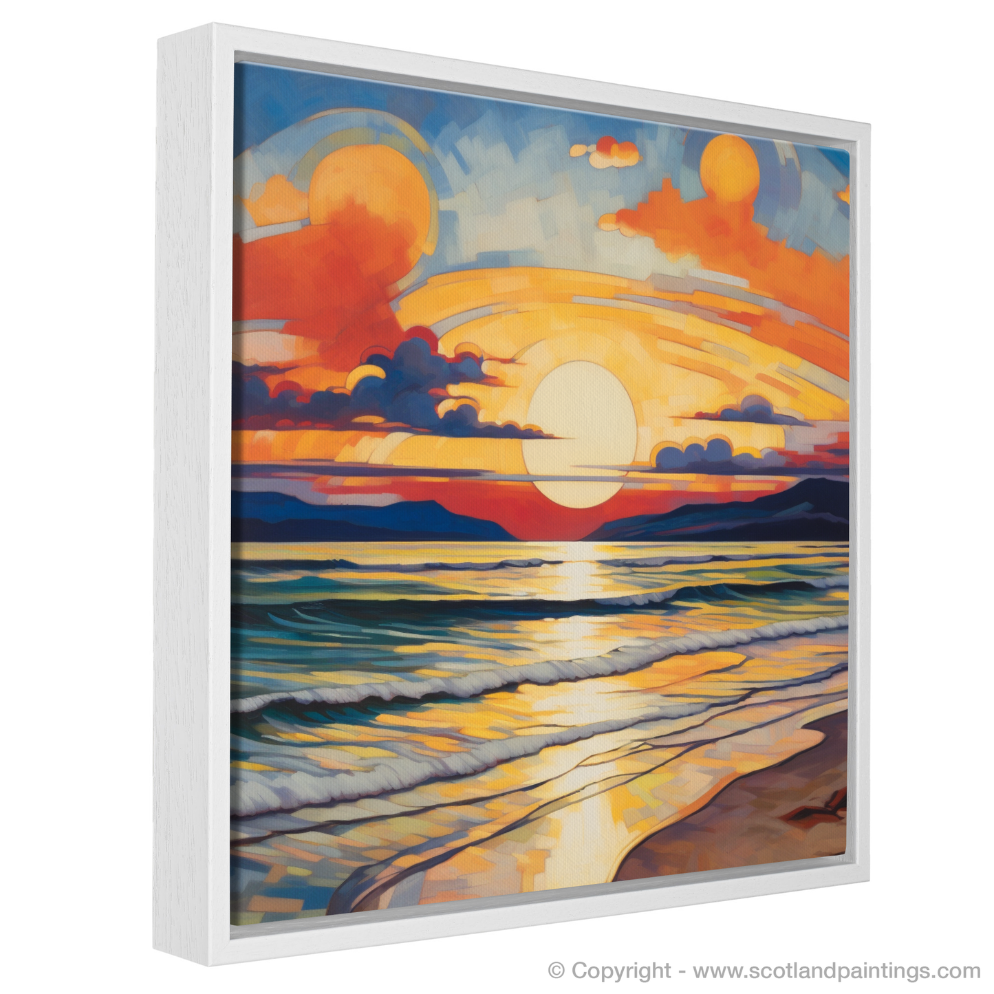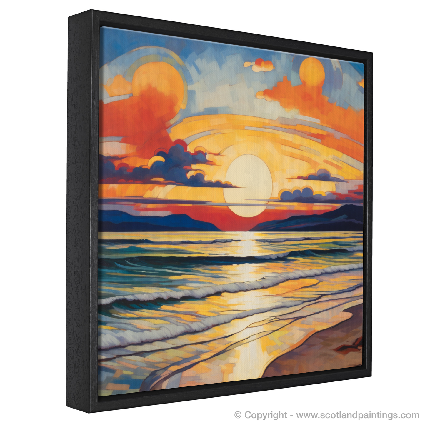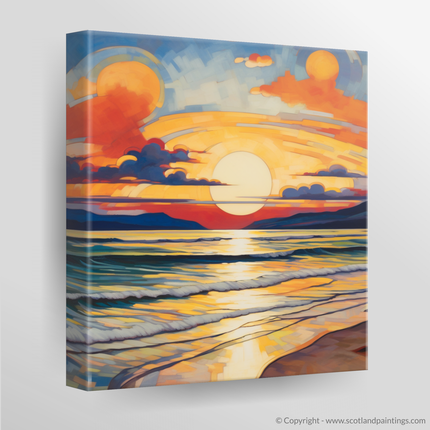 This print, from the 'Scottish Beaches' collection, offers an avant-garde representation that will not only captivate and intrigue but also infuse any space with the serene yet dynamic essence of Nairn Beach at one of its most visually stunning times of day. Ideal for those who appreciate the convergence of nature's beauty with the daring abstraction of Cubist art.