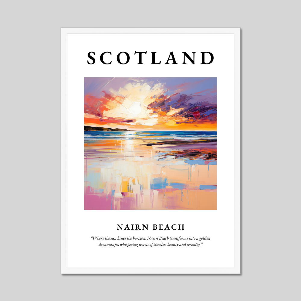 Whether you've walked its sands, revelled in its scenes, or simply dream of a Highland retreat, this poster brings a piece of Scottish magic into your home. Let it inspire daydreams of coastal adventures and serendipitous sunsets, reminding you of the serene allure that makes Nairn Beach a cherished part of Scotland's natural heritage.