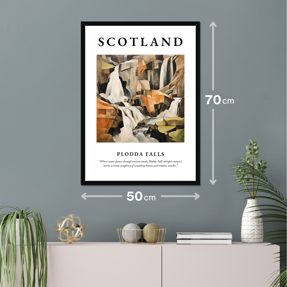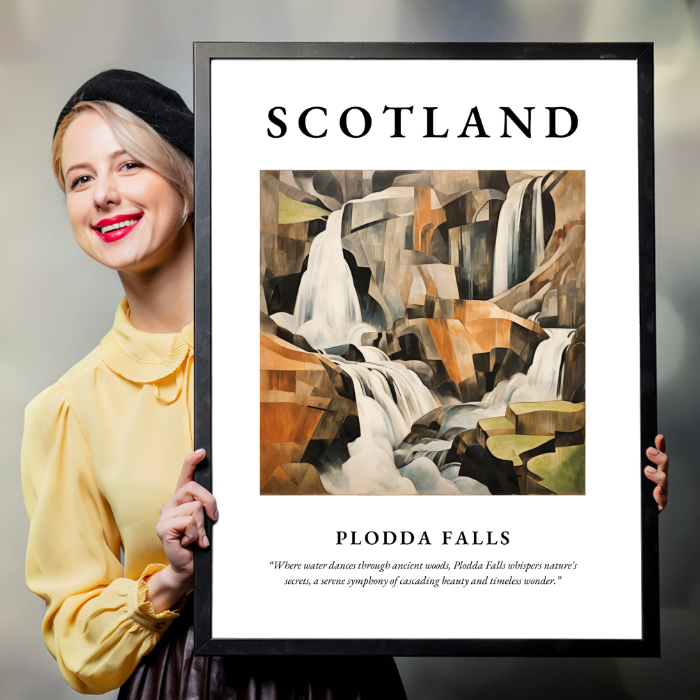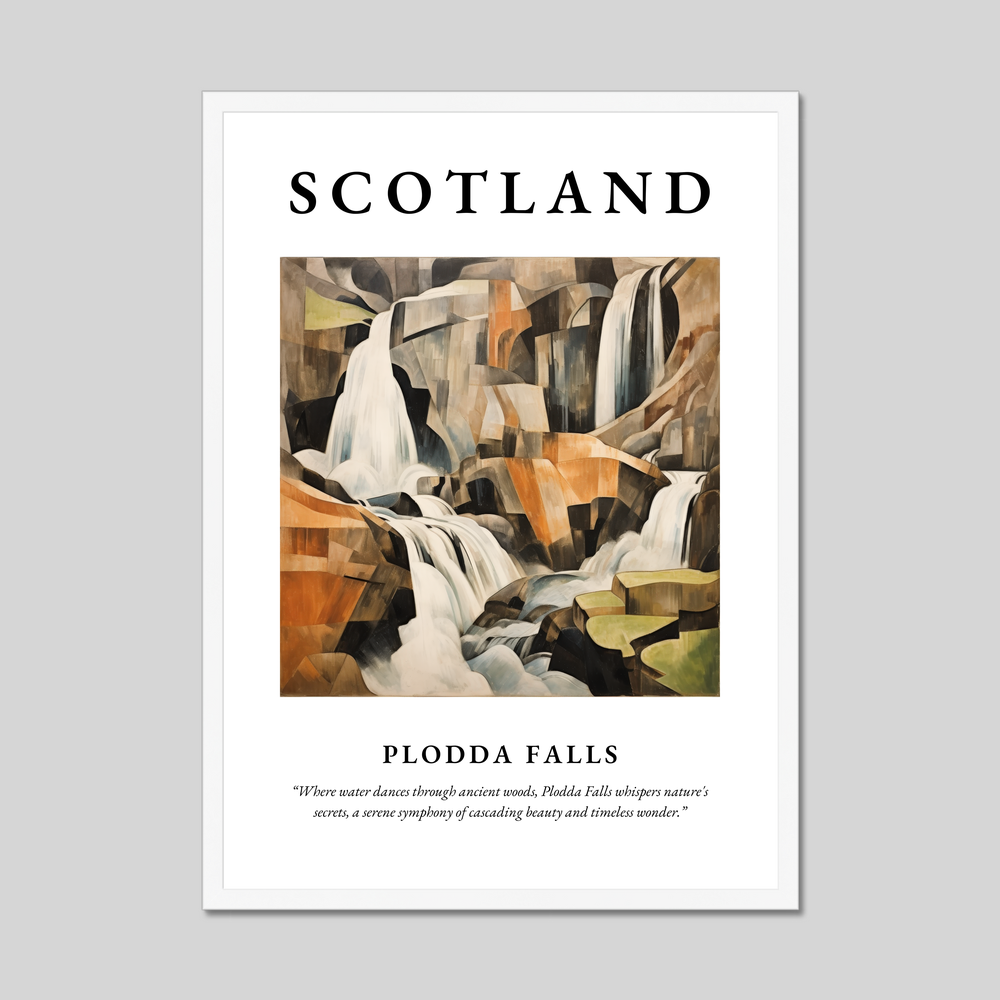 Available in a choice of sleek black, classic white, or sophisticated natural wood-effect frames, this poster makes an artistic statement that suits any decor. It’s perfect for those who cherish their memories of visiting Plodda Falls, dream of exploring the Scottish wilderness, or have an appreciation for Cubist art. Whether hung in a living room, study, or hallway, this large-format artwork offers an expansive view without overwhelming your budget.